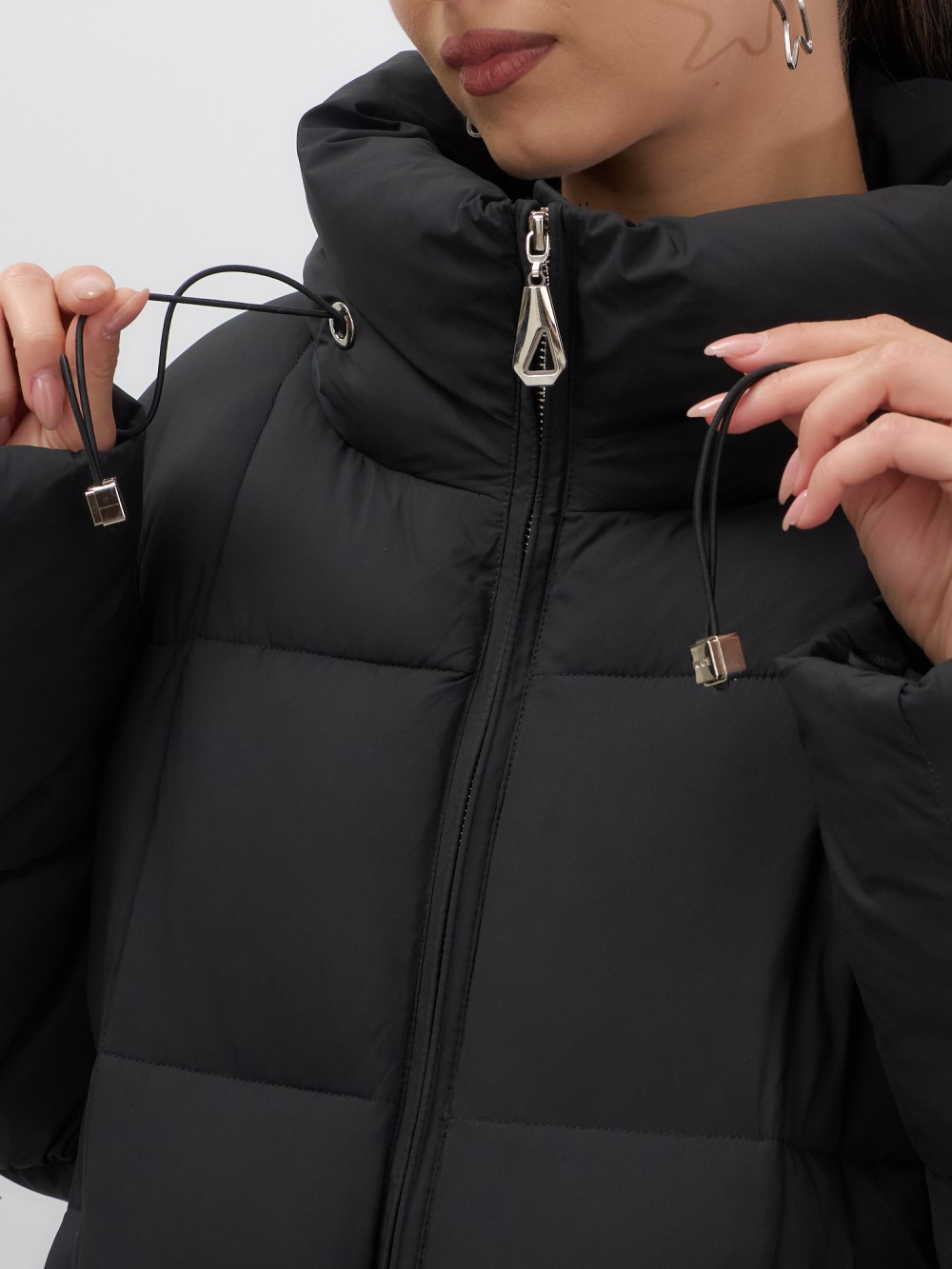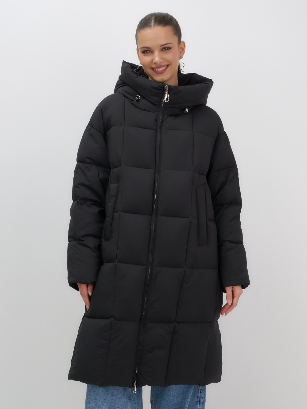 Пальто зимнее утепленное с капюшоном женское черного цвета 7741Ch