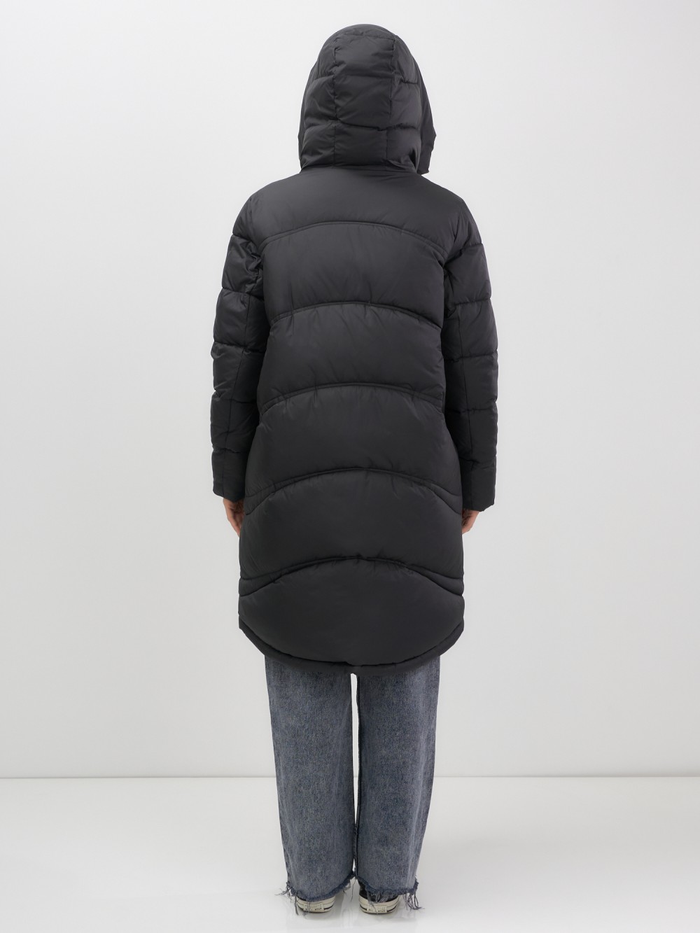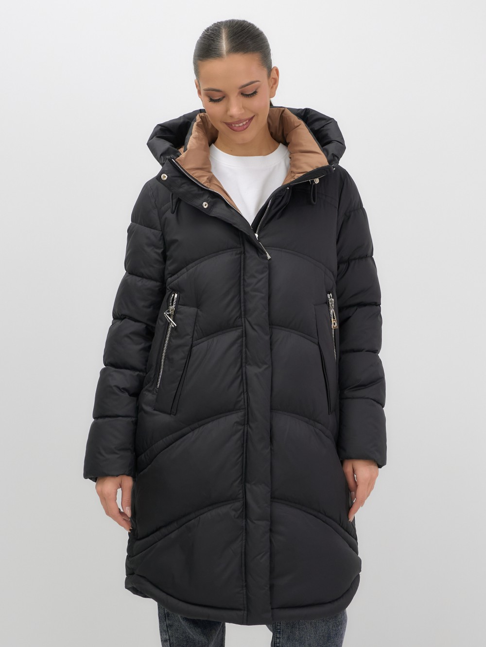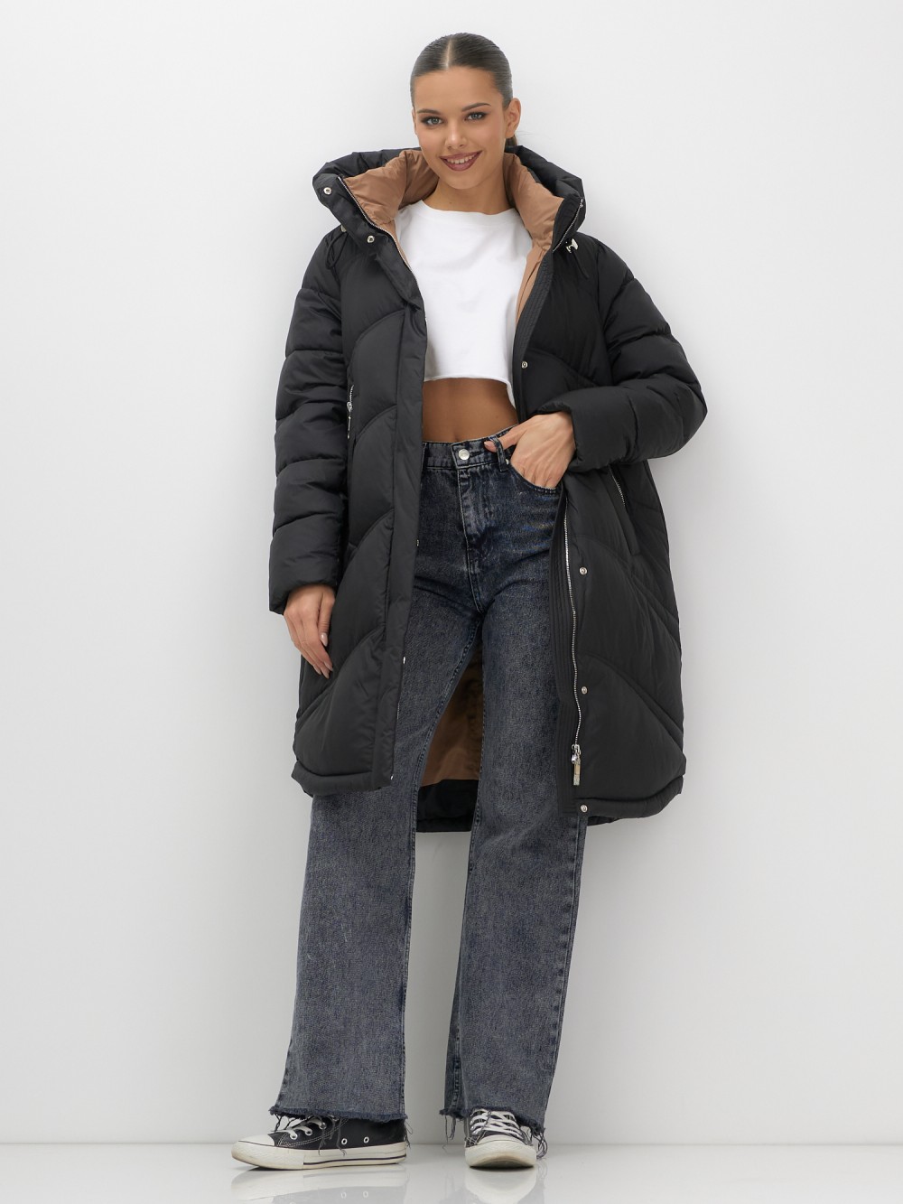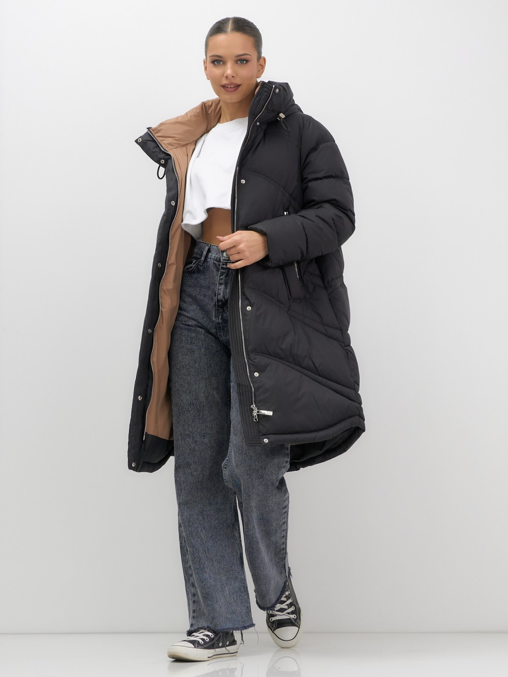 Пальто зимнее утепленное с капюшоном женское черного цвета 7747Ch — Visdeer