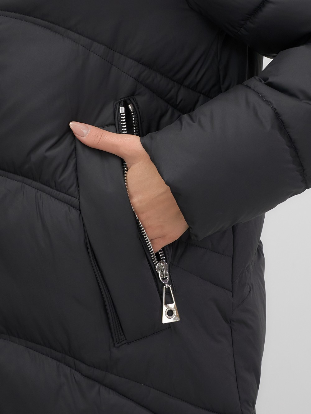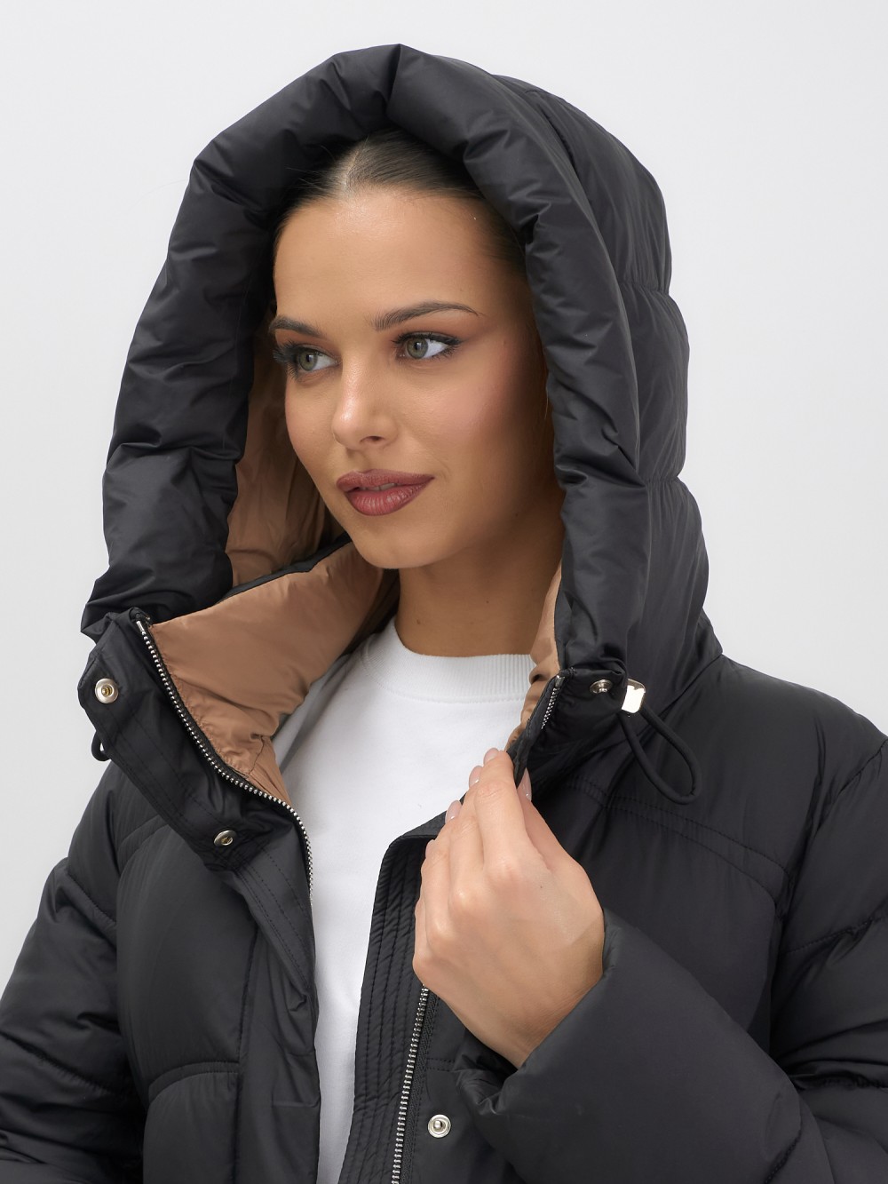 Пальто зимнее утепленное с капюшоном женское черного цвета 7747Ch