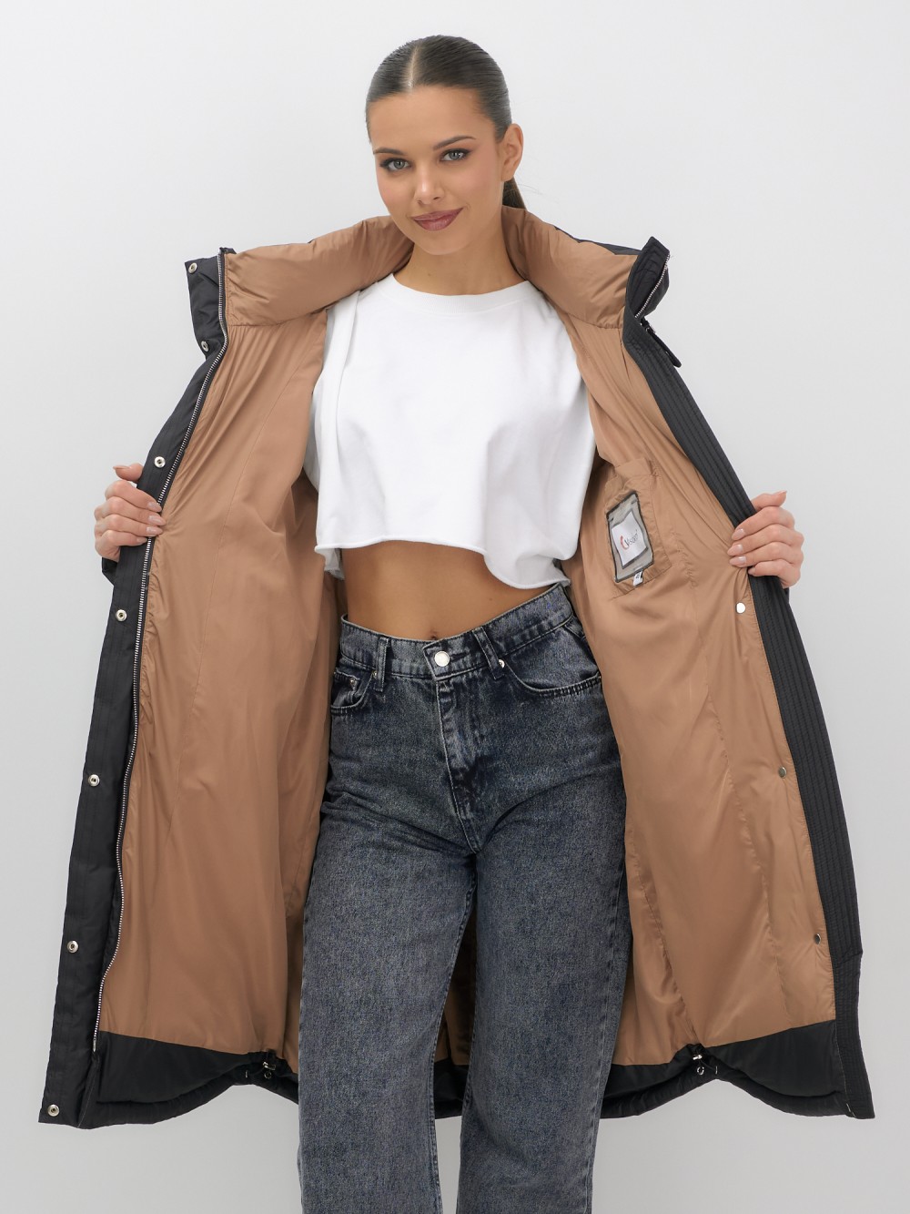 Выберите из четырех классических цветов: коричневый, черный, бежевый и хаки, и добавьте этот модный и функциональный элемент в свой гардероб! Пальто-куртка из коллекции осень-зима 2025 станет незаменимым спутником в холодное время года. Не упустите возможность приобрести стильное и практичное пальто, которое подчеркнет вашу индивидуальность и обеспечит комфорт в любую погоду!