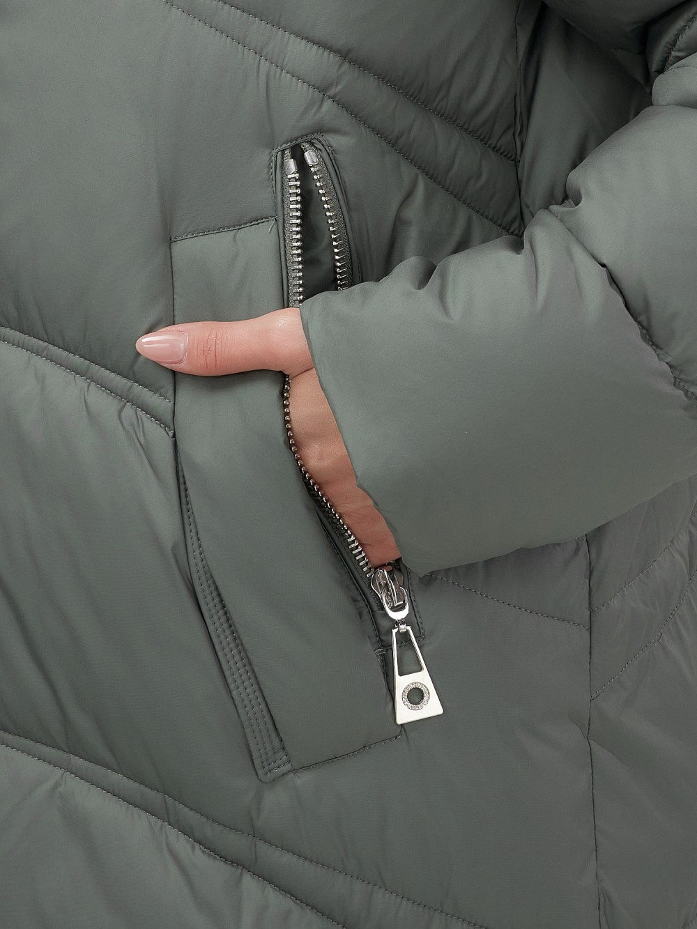 - Тип кармана: Прорезной (на кнопке и на молнии)