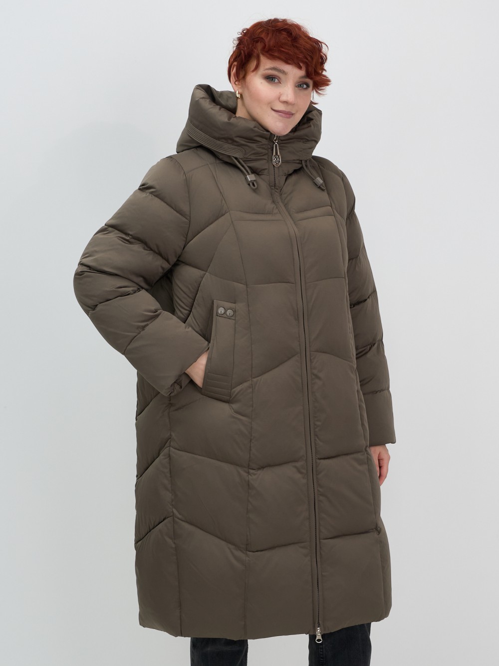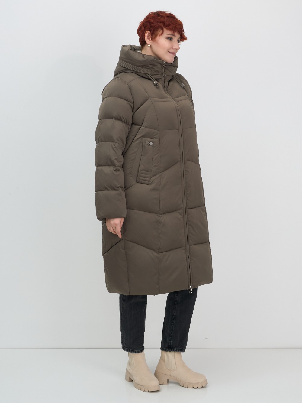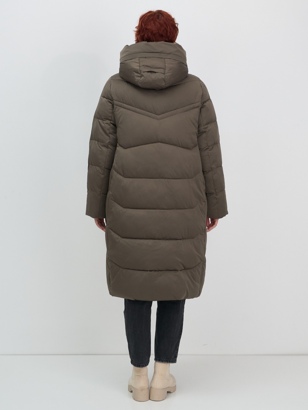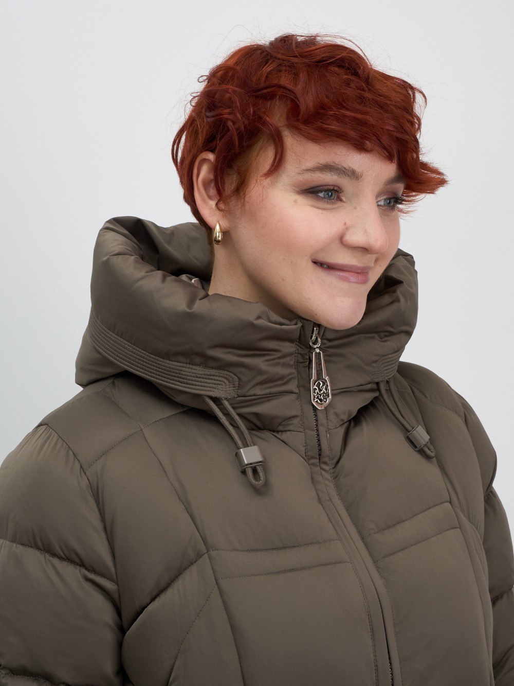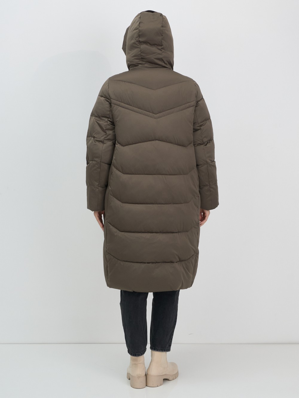 Пальто зимнее утепленное с капюшоном женское коричневого цвета 7702K — Visdeer