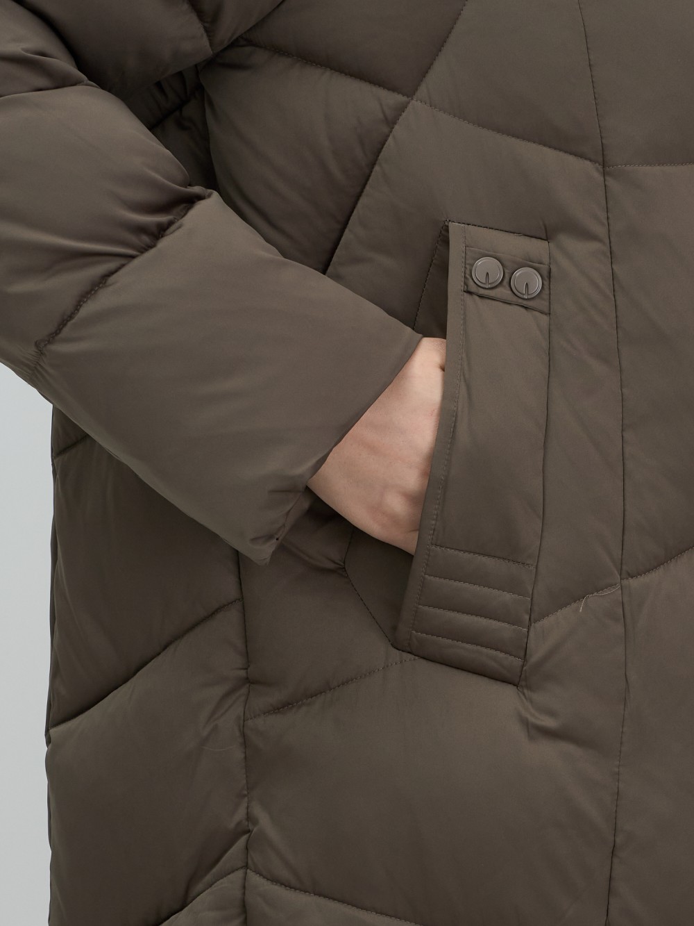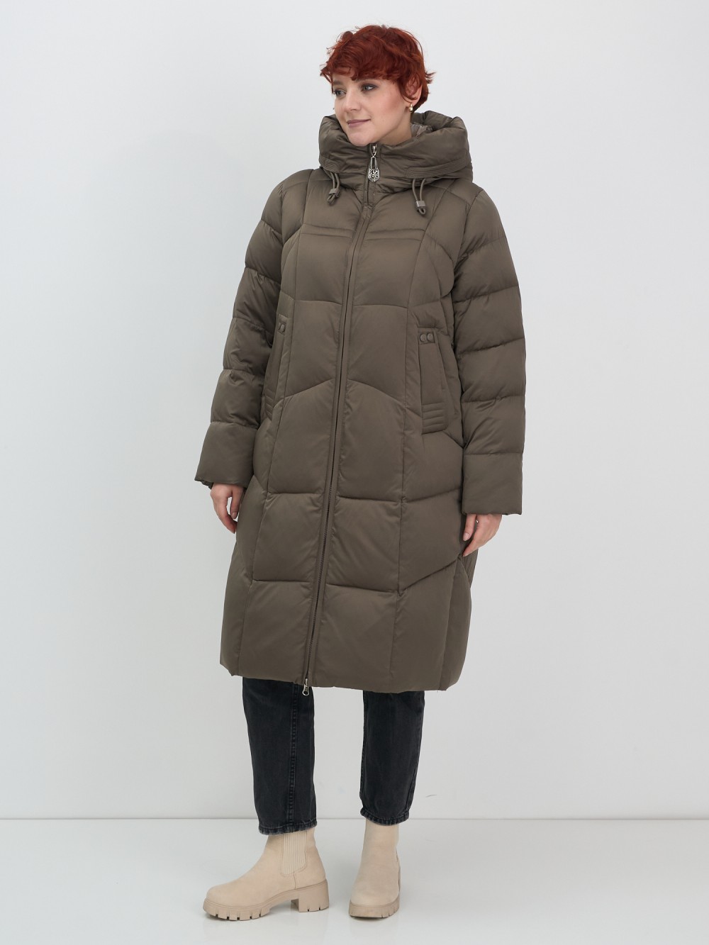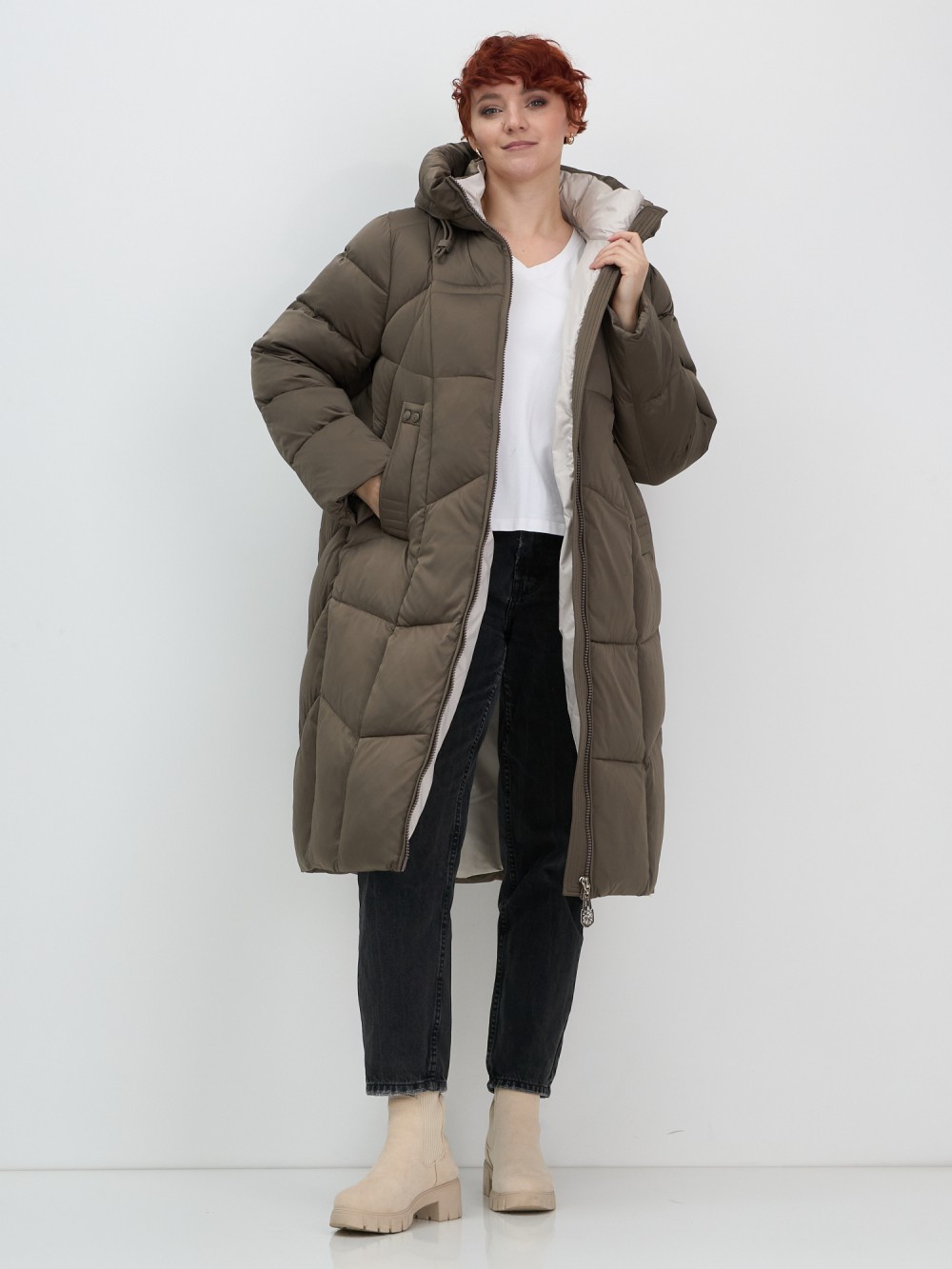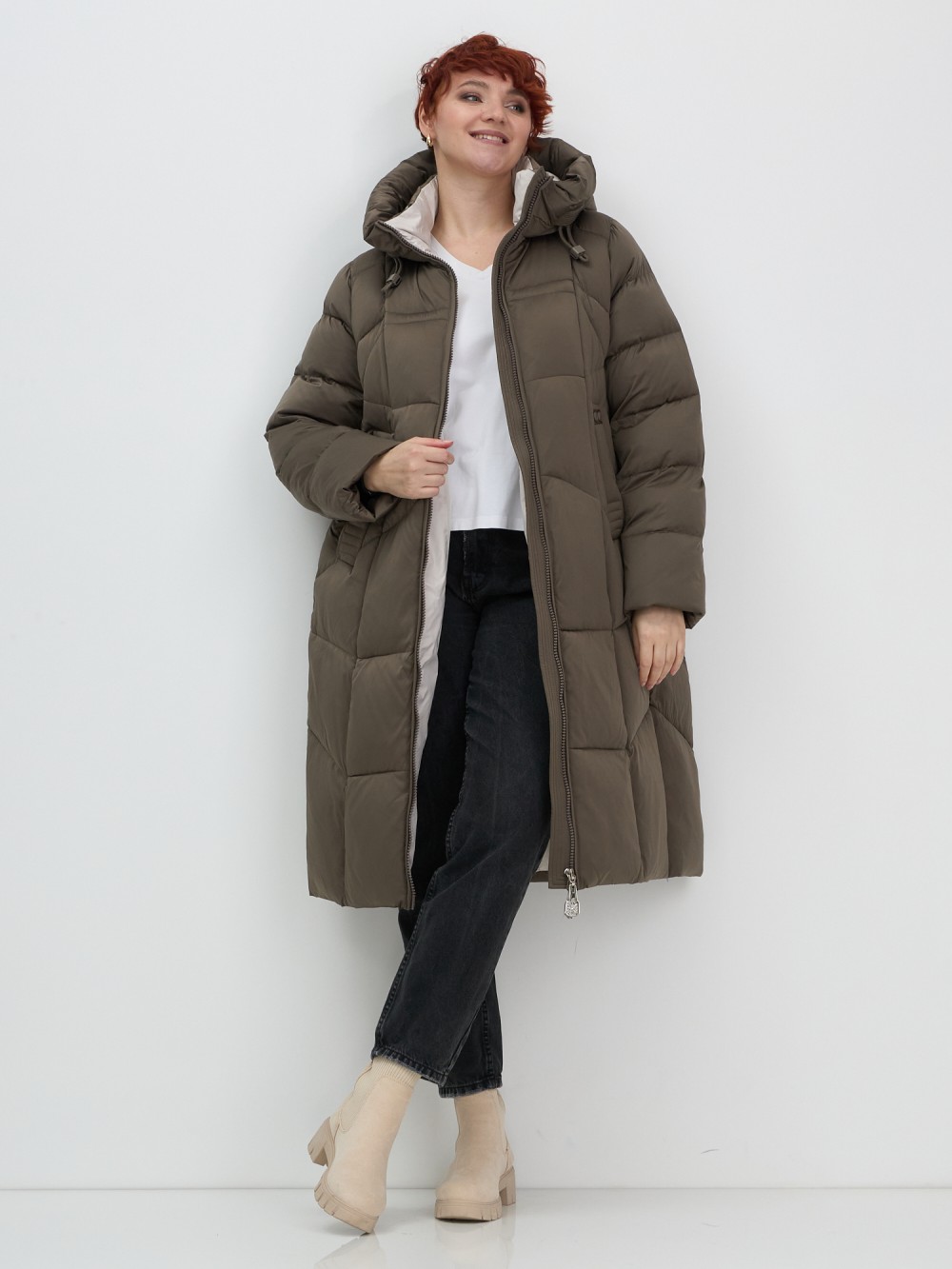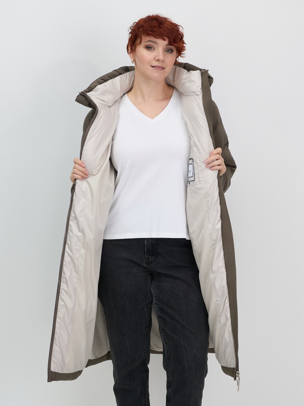 Удлиненный крой ниже колена и свободный фасон делают это женское утепленное пальто универсальным для любого стиля — от офисного до повседневного. Стойка воротника и капюшон с фиксатором добавляют элегантности и защиты от холода. Внутренние карманы и потайные застежки обеспечивают практичность и удобство в использовании.