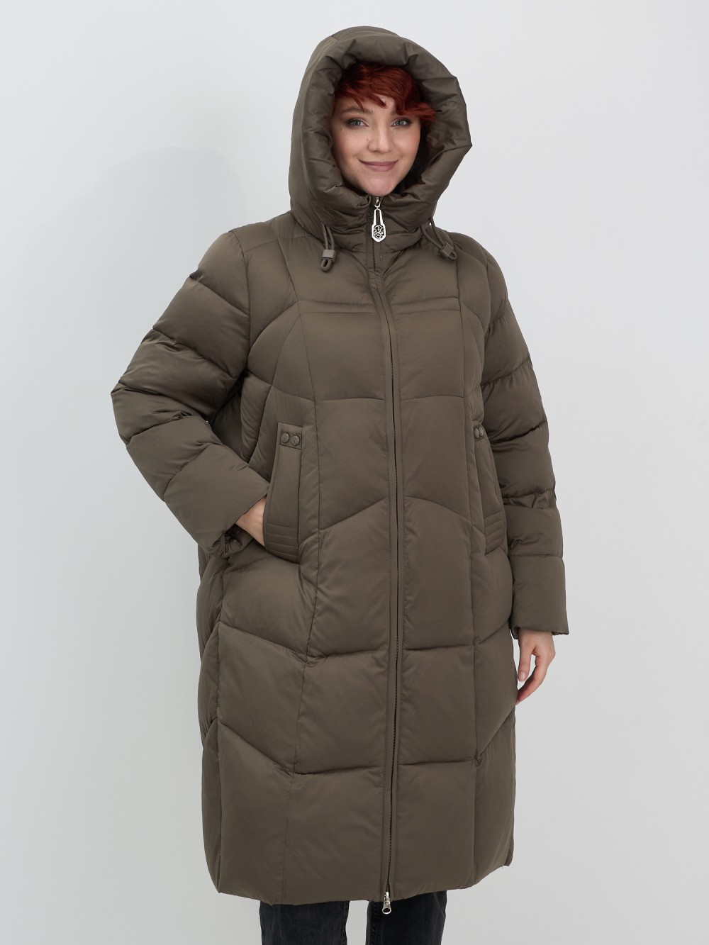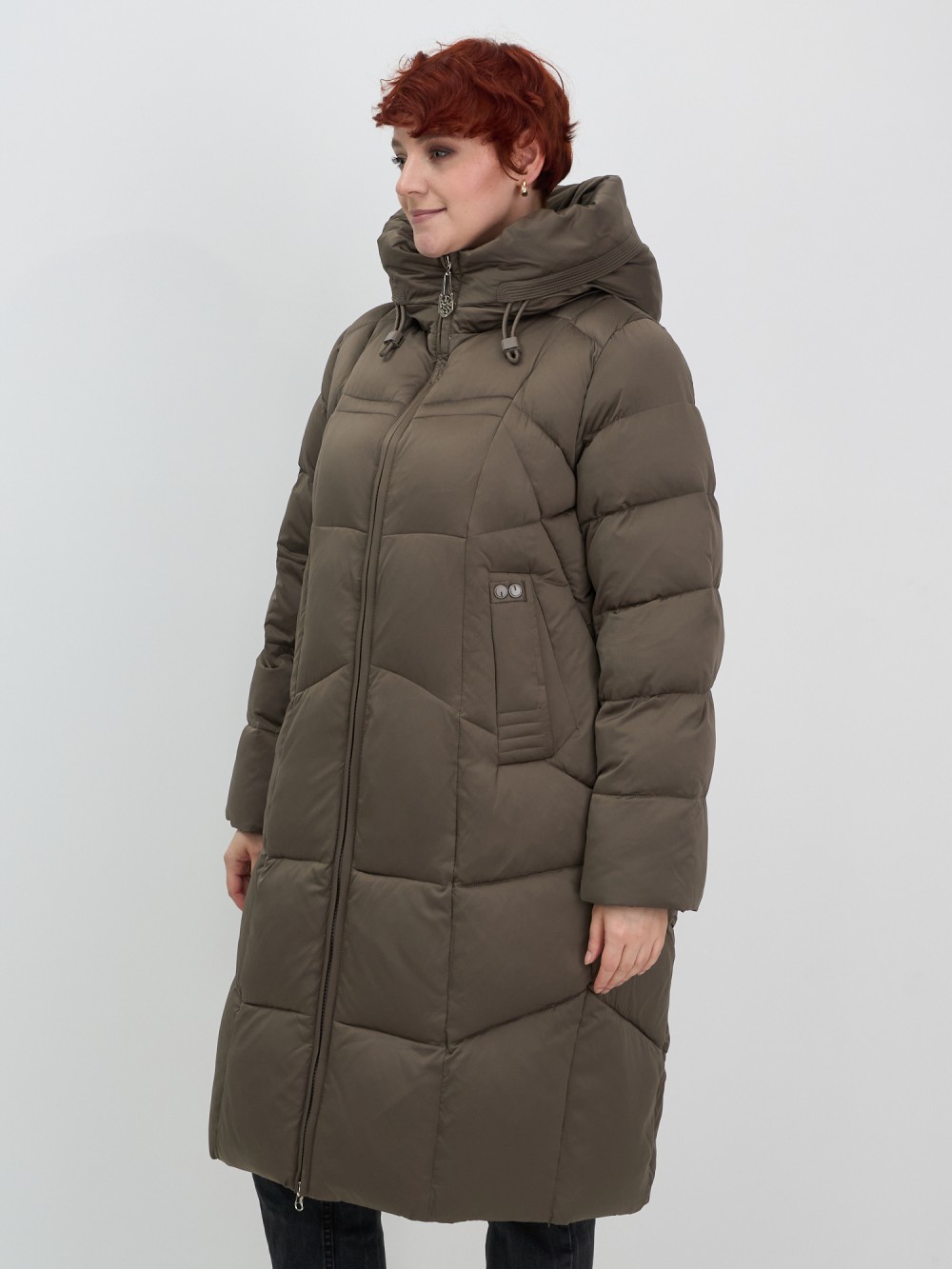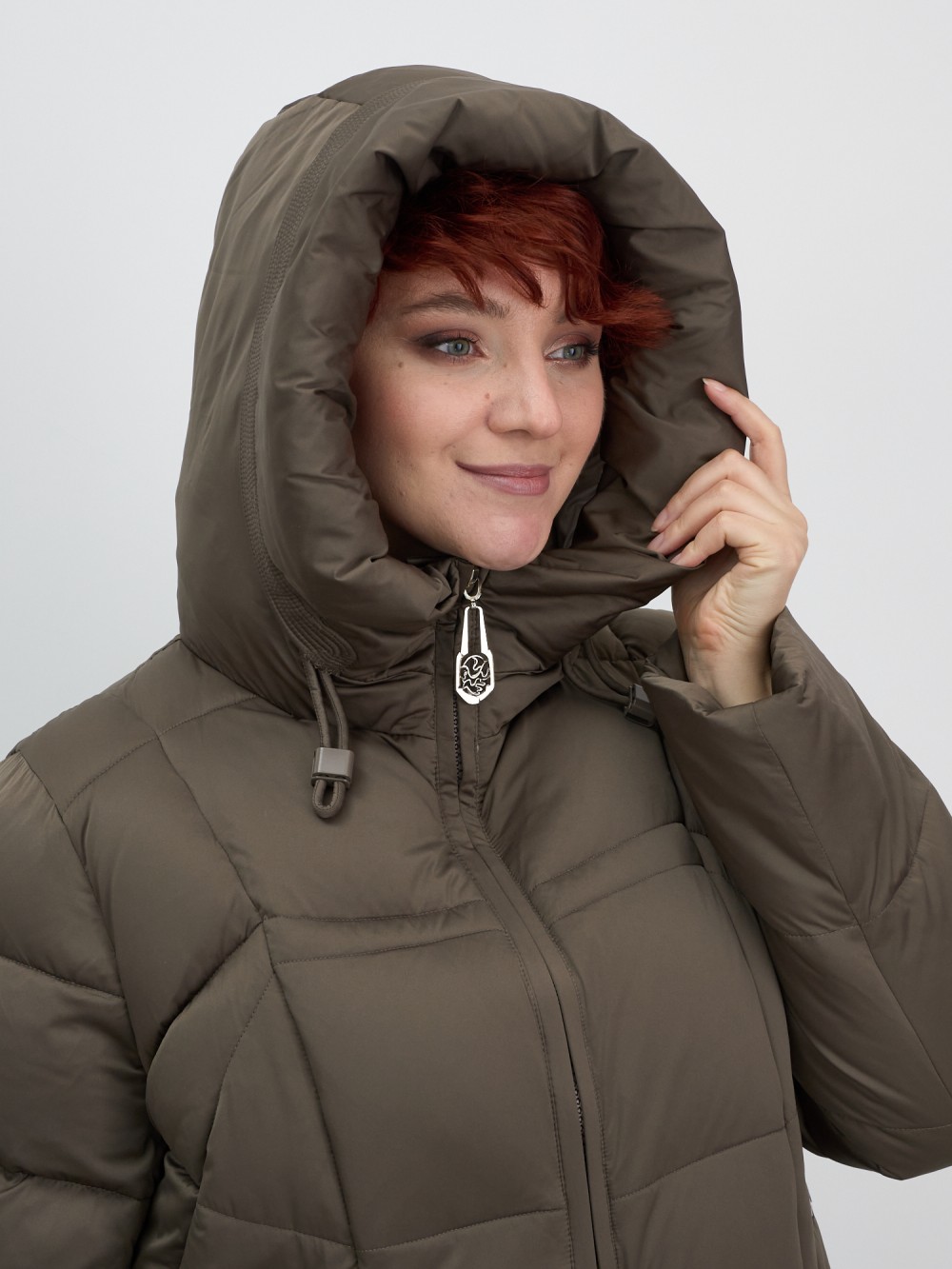 Пальто зимнее утепленное с капюшоном женское коричневого цвета 7702K
