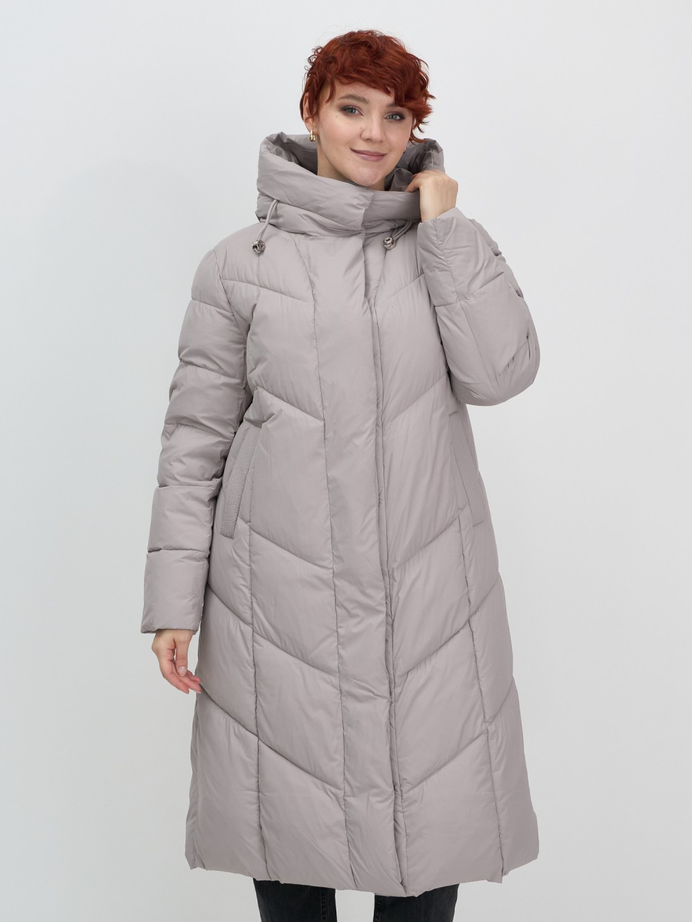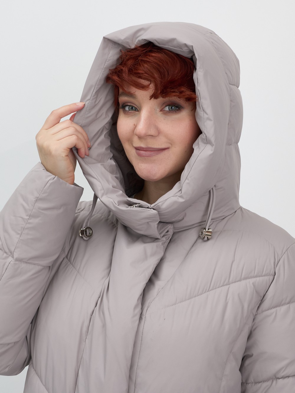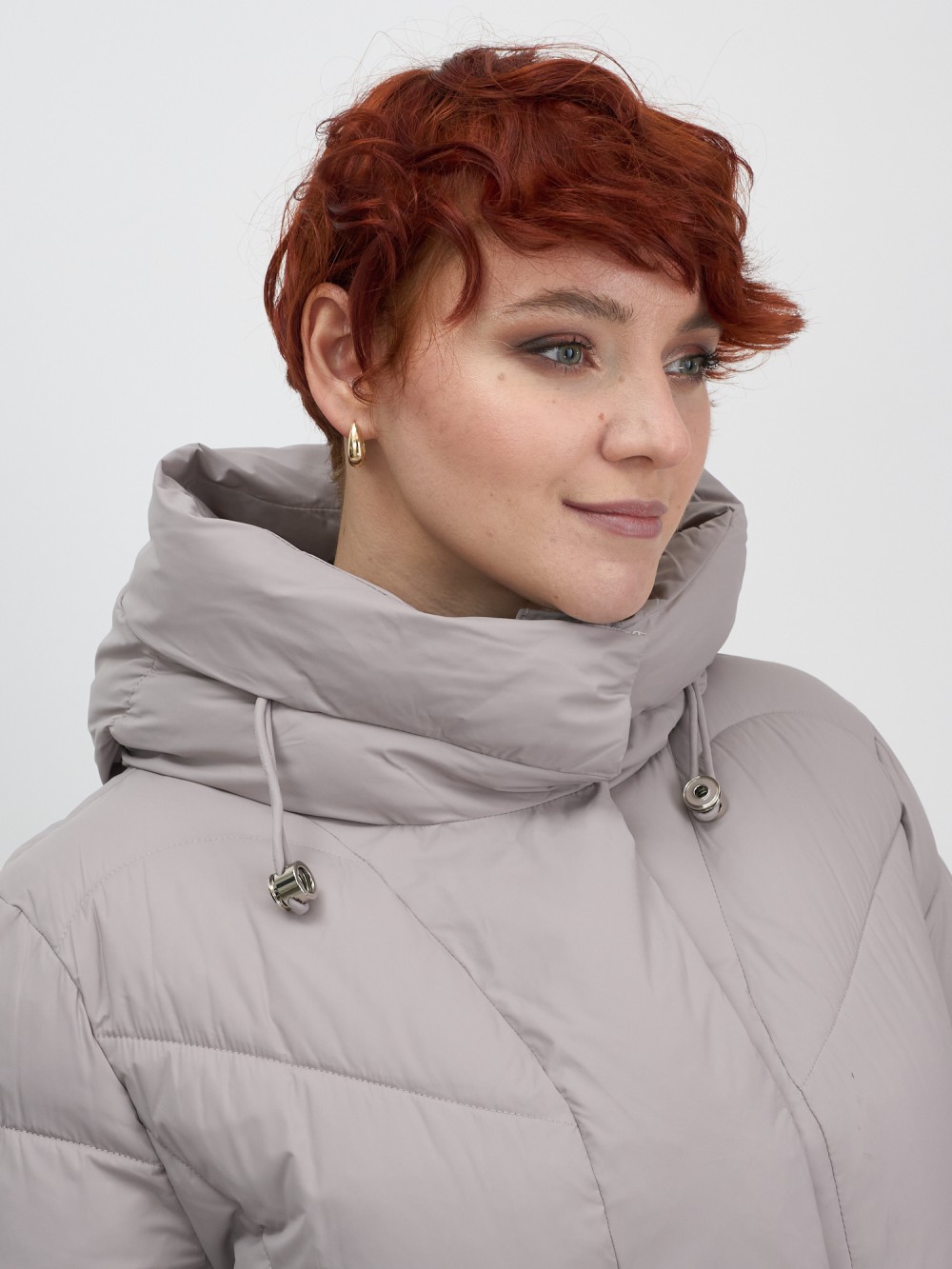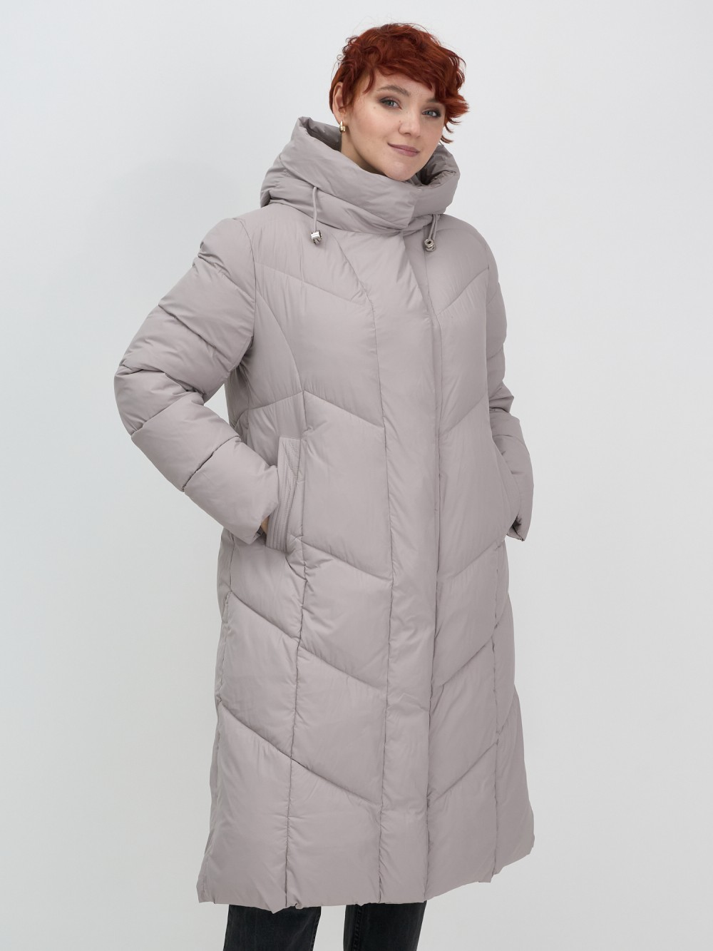 Пальто зимнее утепленное с капюшоном женское серого цвета 7628Sr — APNEEY