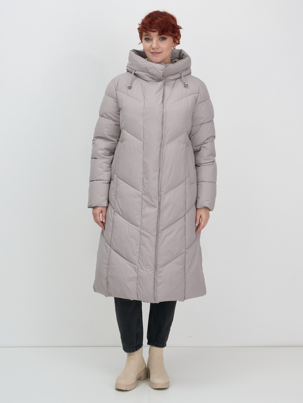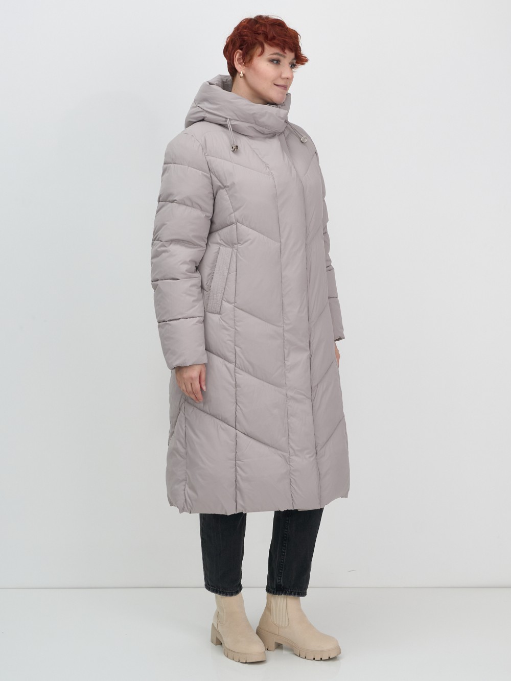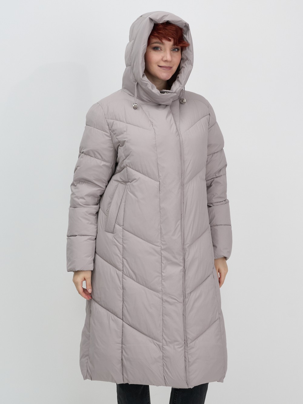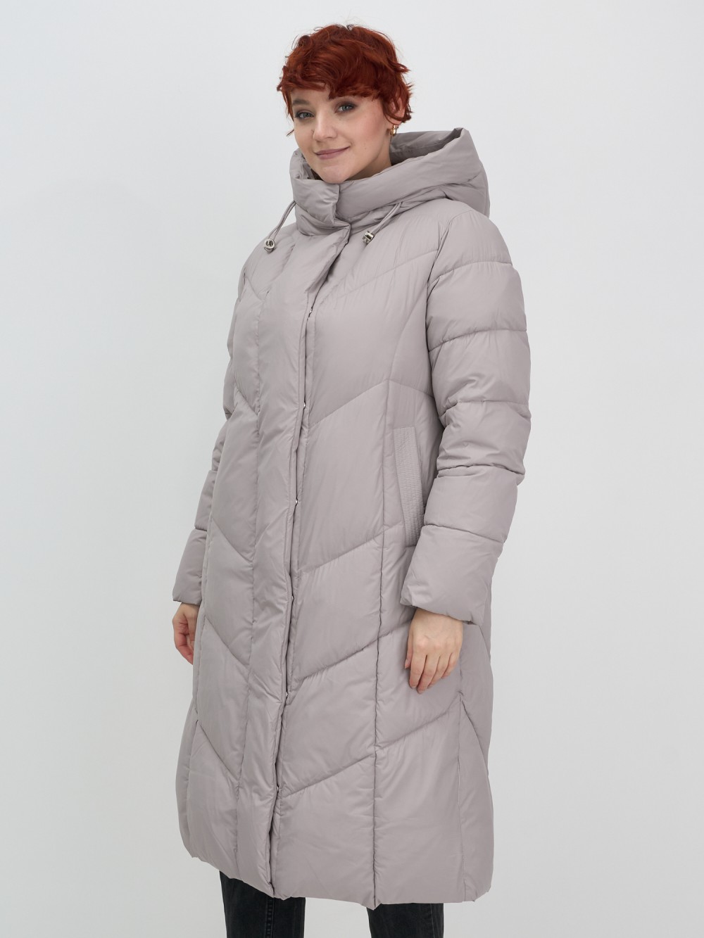 Пальто зимнее утепленное с капюшоном женское серого цвета 7628Sr — APNEEY