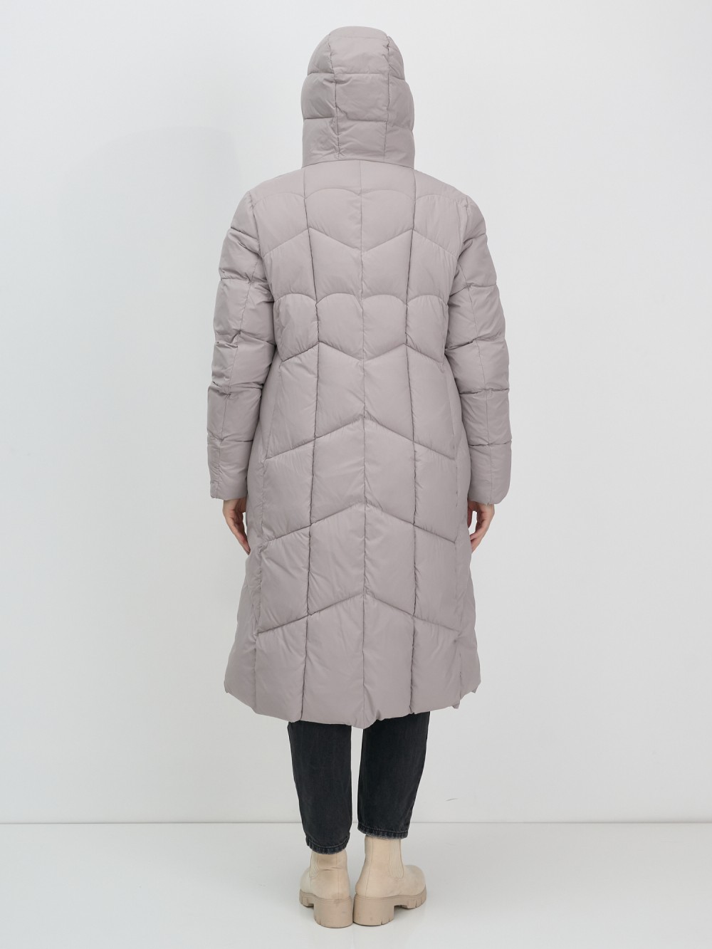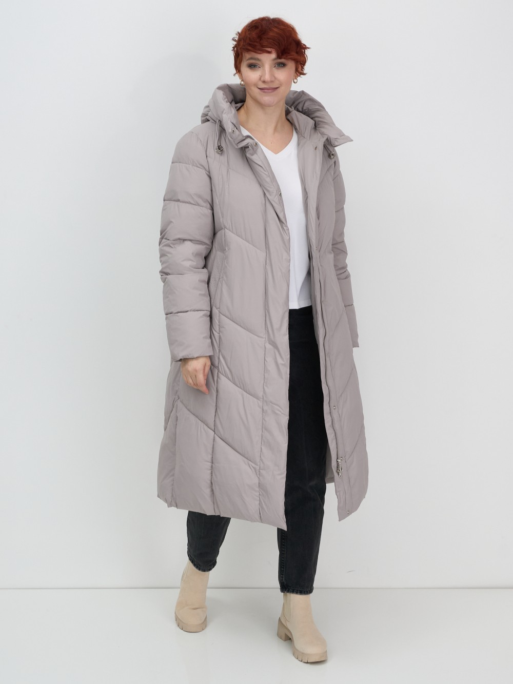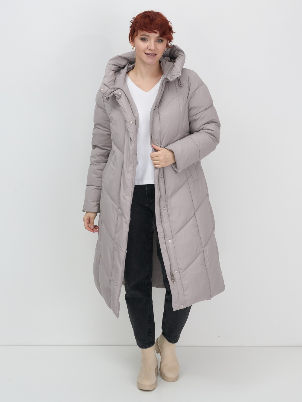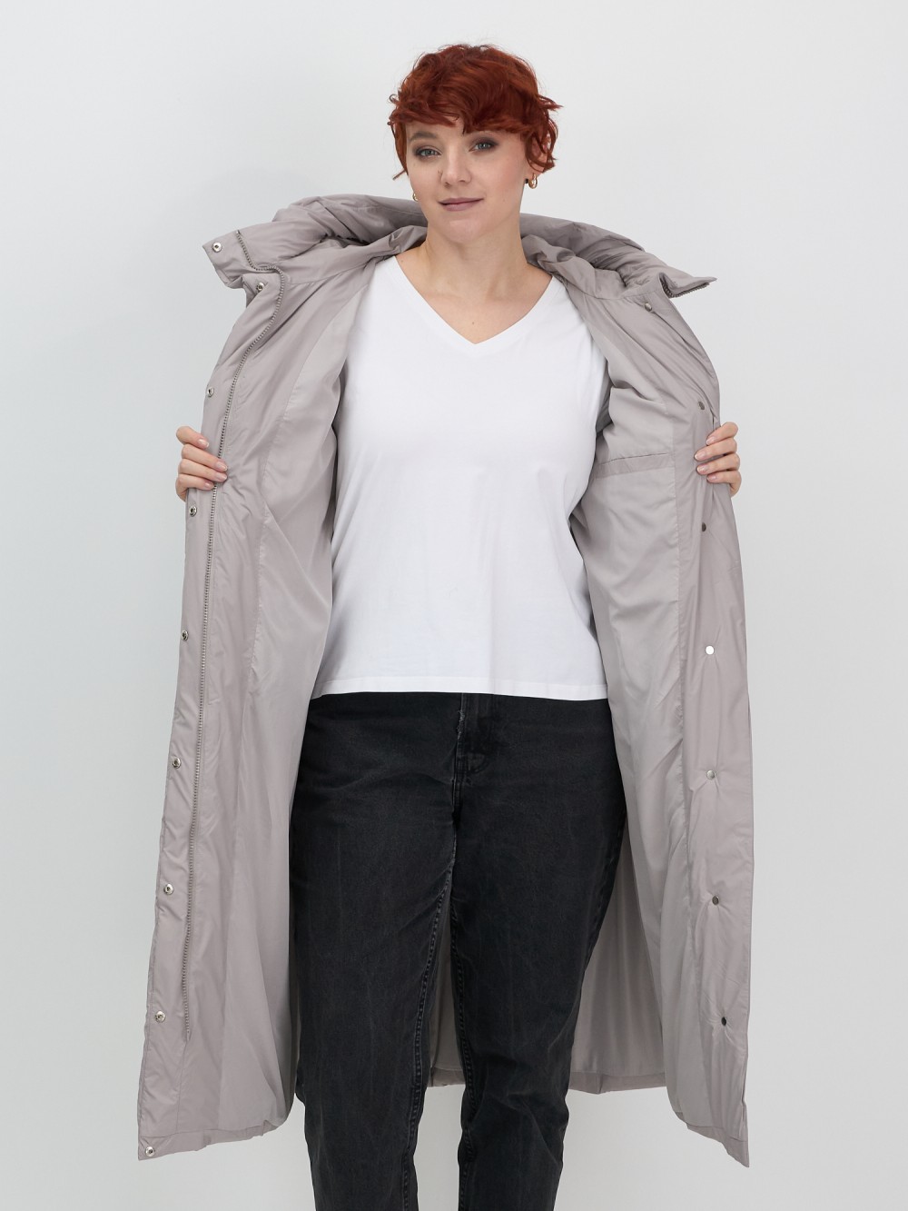 Пальто зимнее утепленное с капюшоном женское серого цвета 7628Sr — APNEEY