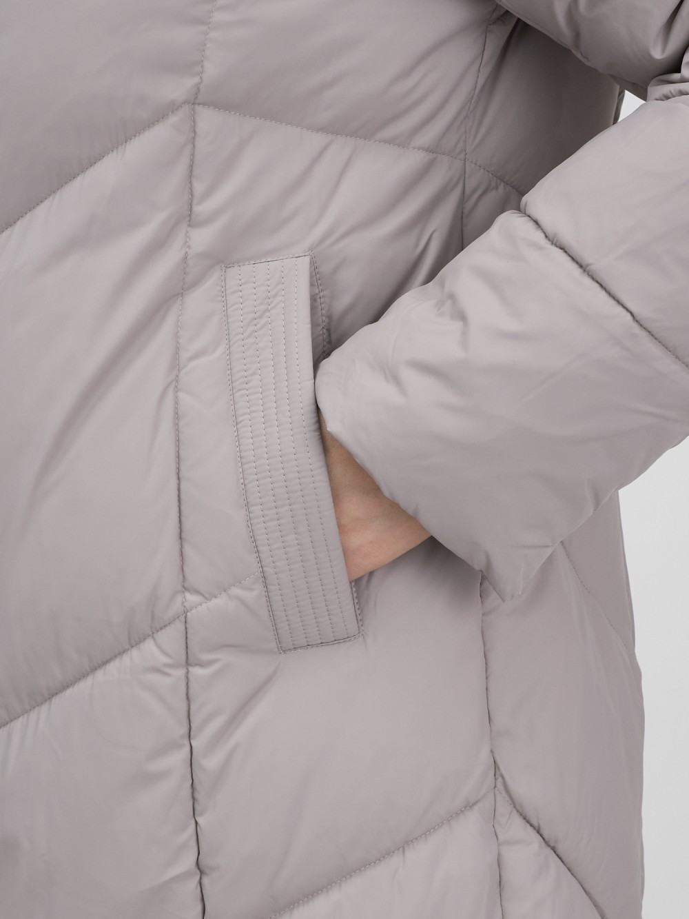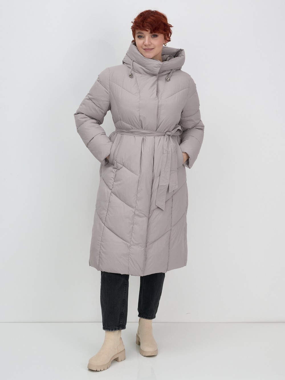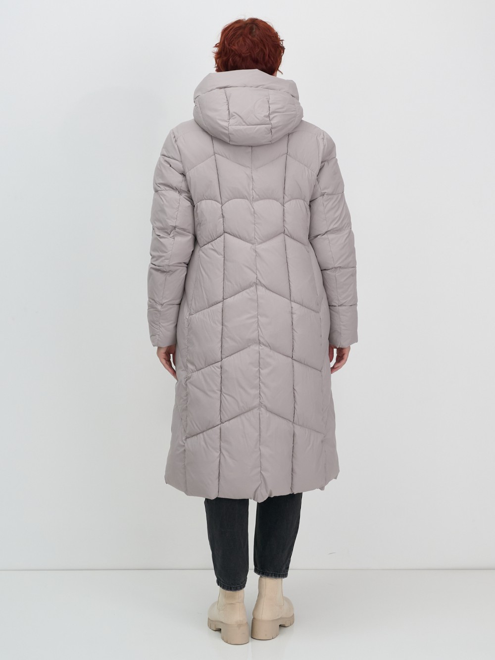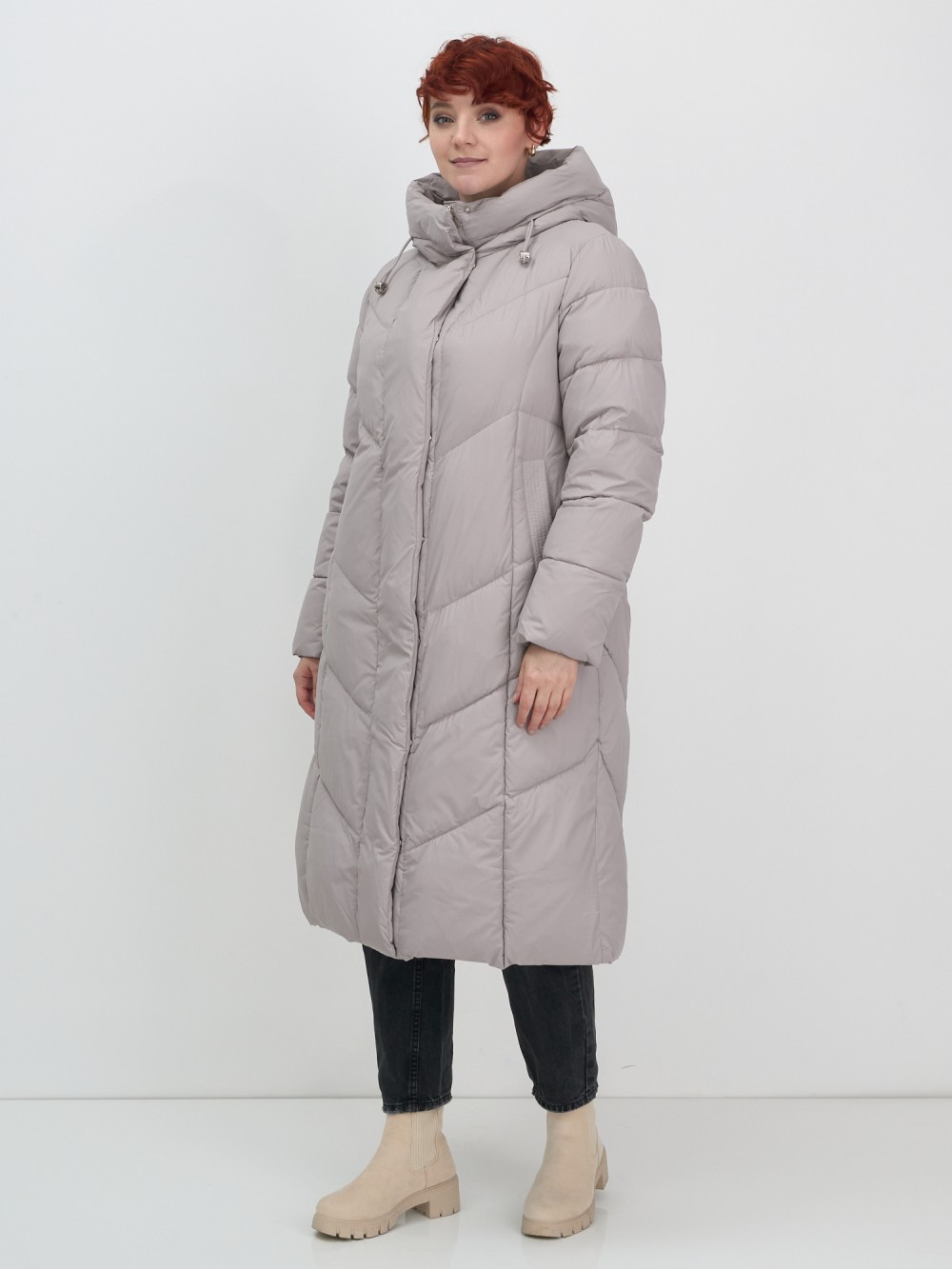 Пальто зимнее утепленное с капюшоном женское серого цвета 7628Sr — APNEEY