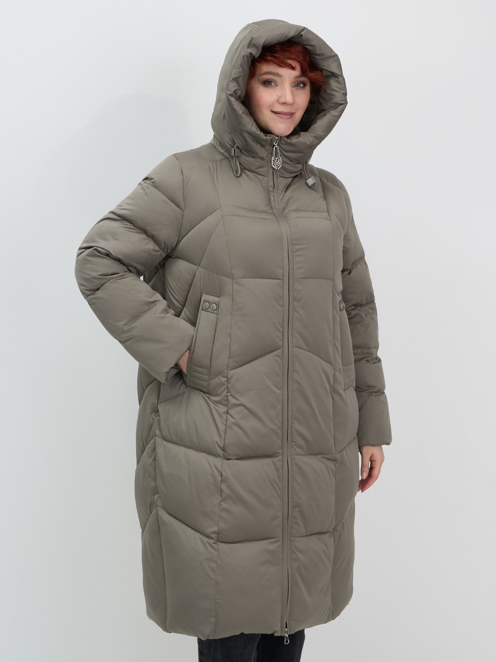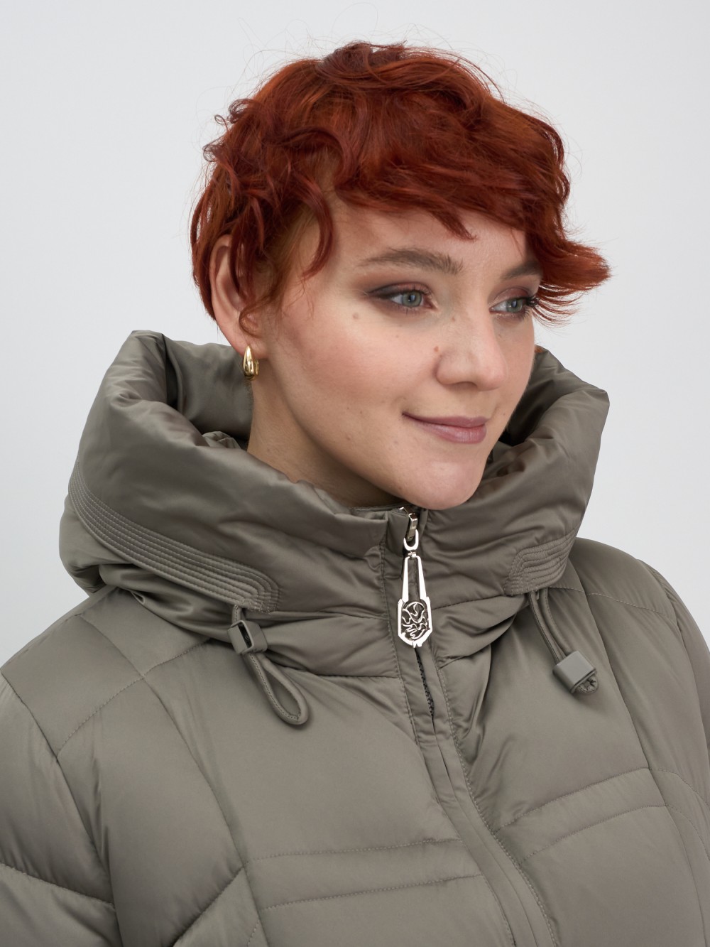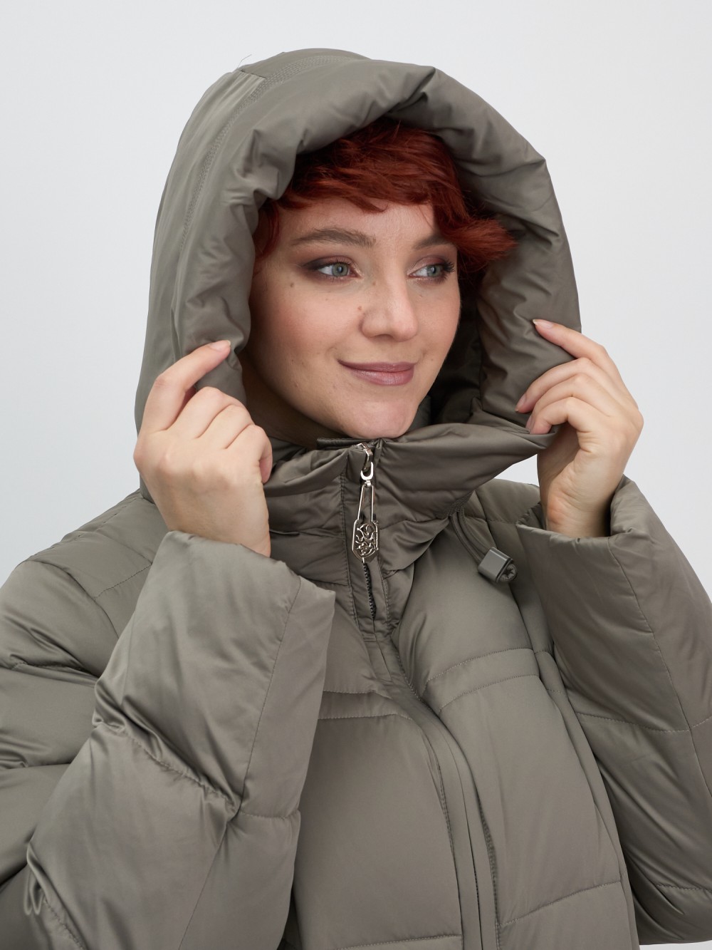 Пальто зимнее утепленное с капюшоном женское светло-коричневого цвета 7702SK