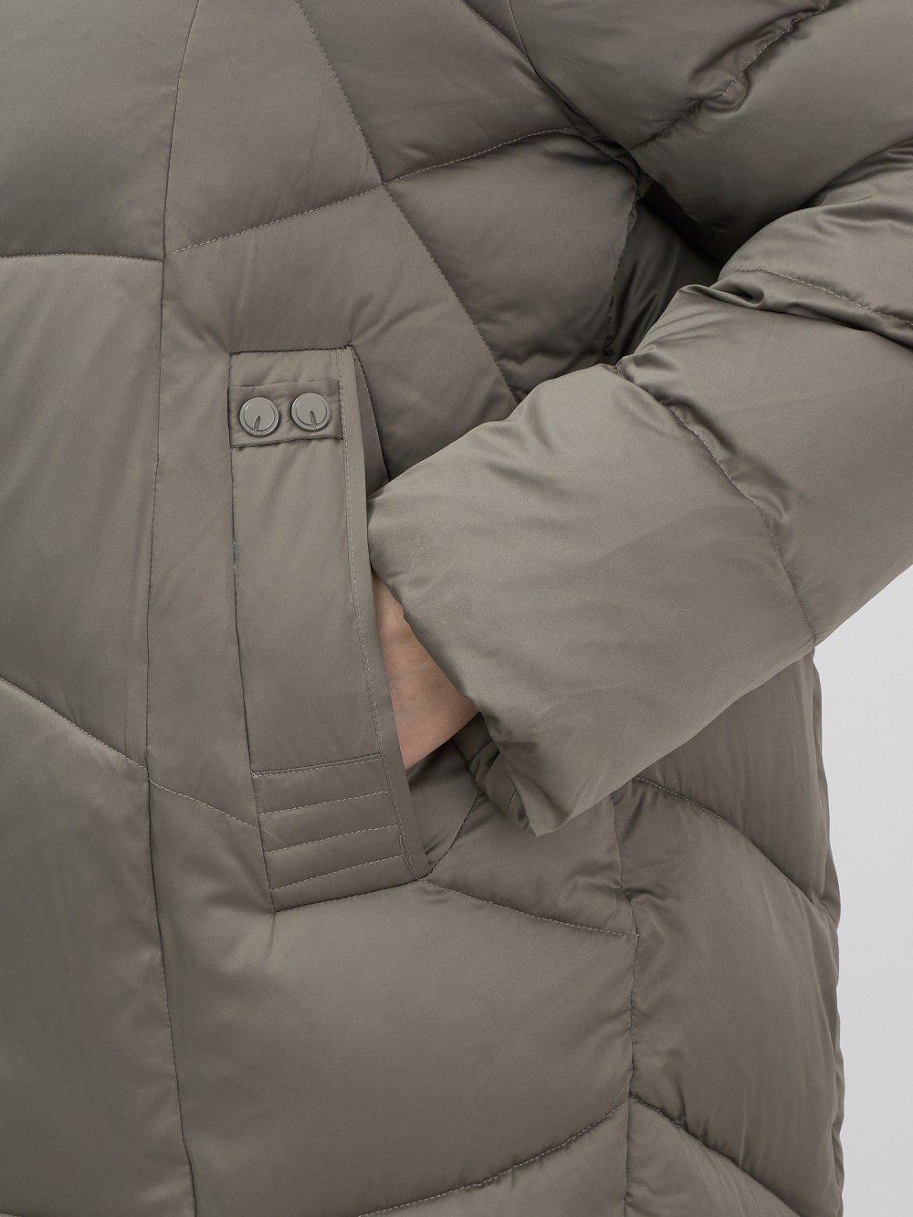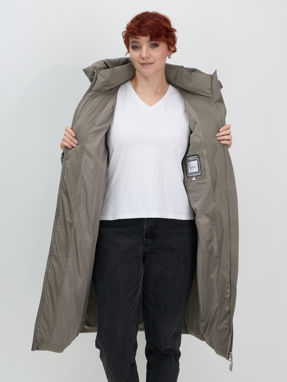 Удлиненный крой ниже колена и свободный фасон делают это женское утепленное пальто универсальным для любого стиля — от офисного до повседневного. Стойка воротника и капюшон с фиксатором добавляют элегантности и защиты от холода. Внутренние карманы и потайные застежки обеспечивают практичность и удобство в использовании.