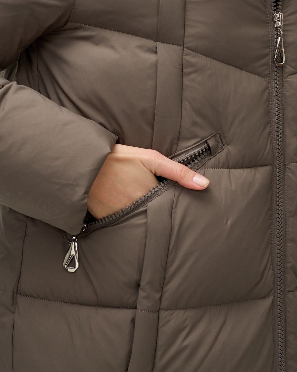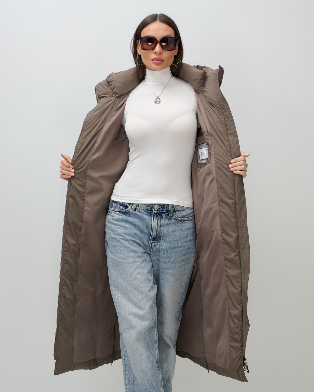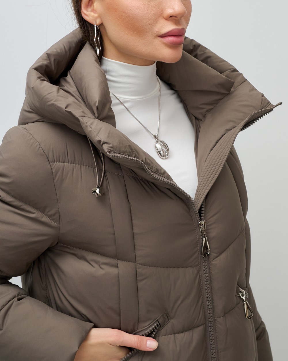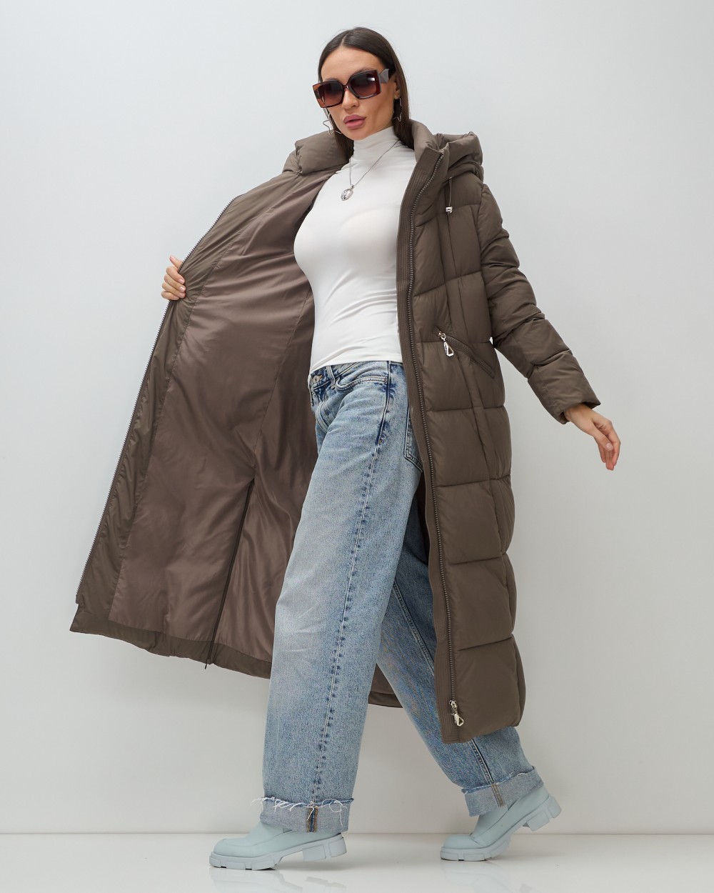 Ищете идеальное зимнее пальто, которое сочетает в себе стиль, комфорт и защиту от холода? Обратите внимание на наше зимнее утепленное пальто с капюшоном для женщин! Доступное в размерах от 44 до 52, это пальто станет вашим верным спутником в холодное время года.