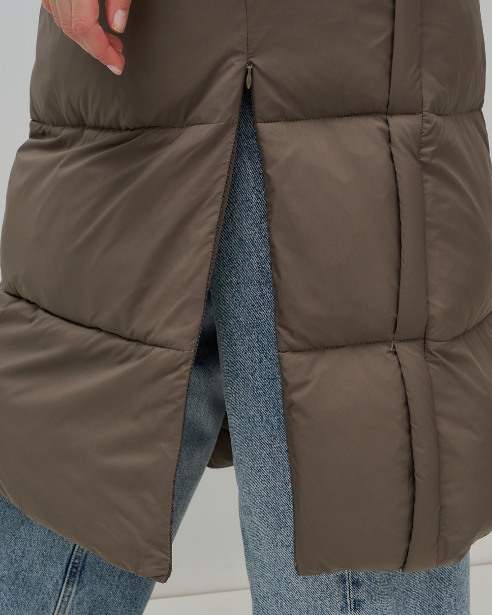 Среди особенностей модели — быстросохнущий, водоотталкивающий и гипоаллергенный материал, а также дышащая фактура, что гарантирует максимальный комфорт в носке. Декоративные элементы, такие как стеганая фактура, манжеты и разрезы, придают изделию стильный вид.