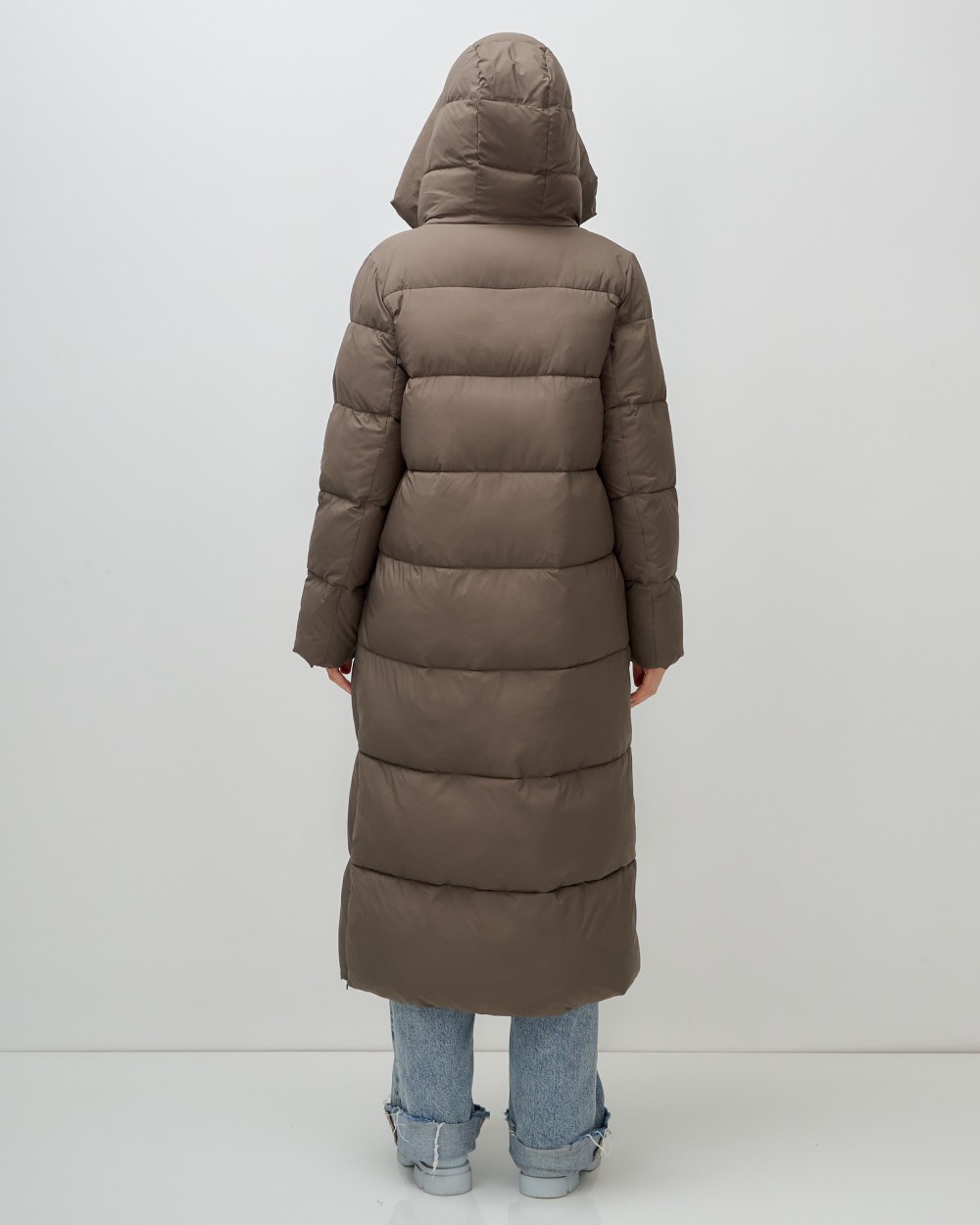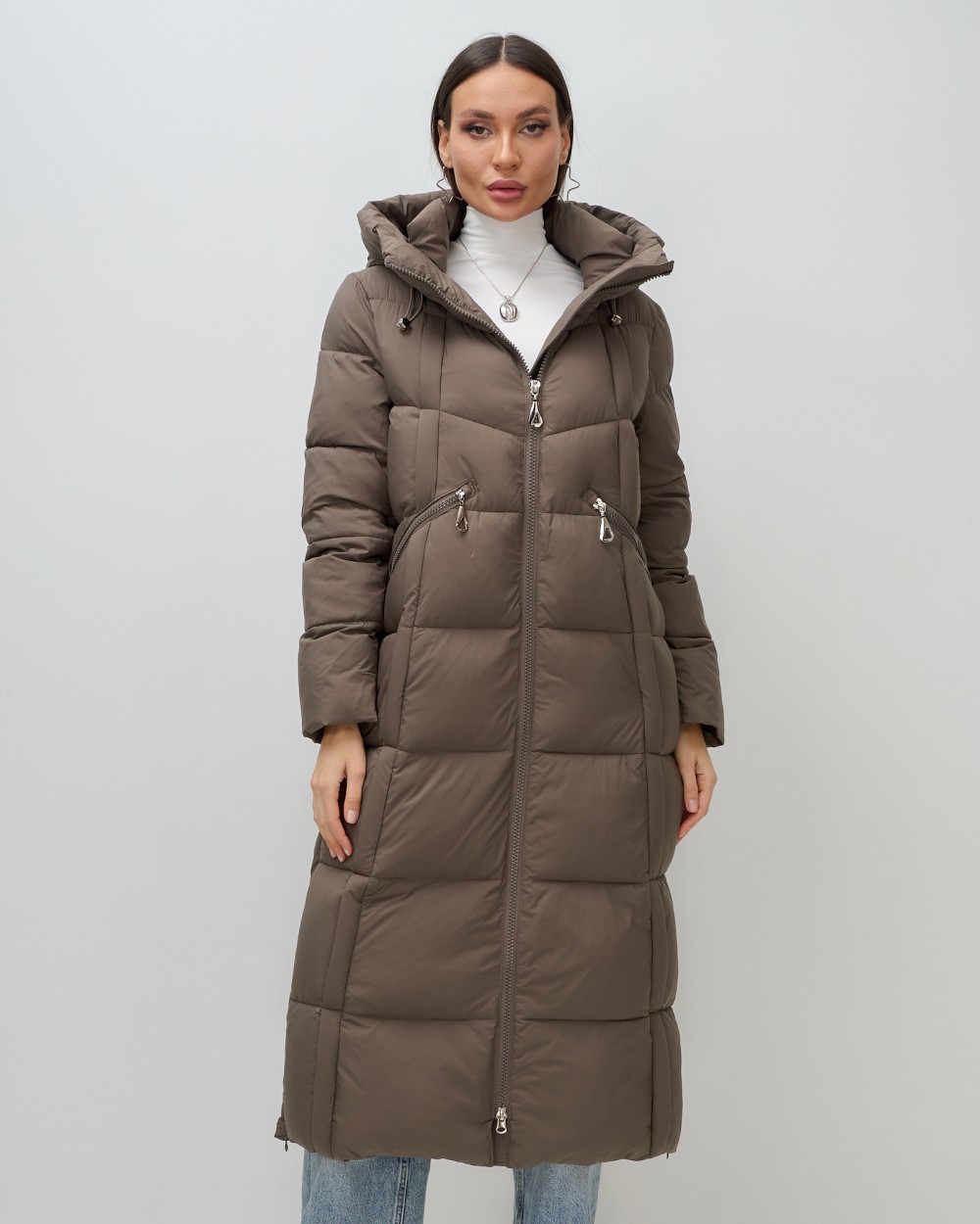 Пальто зимнее утепленное с капюшоном женское светло-коричневого цвета 7729SK — Visdeer