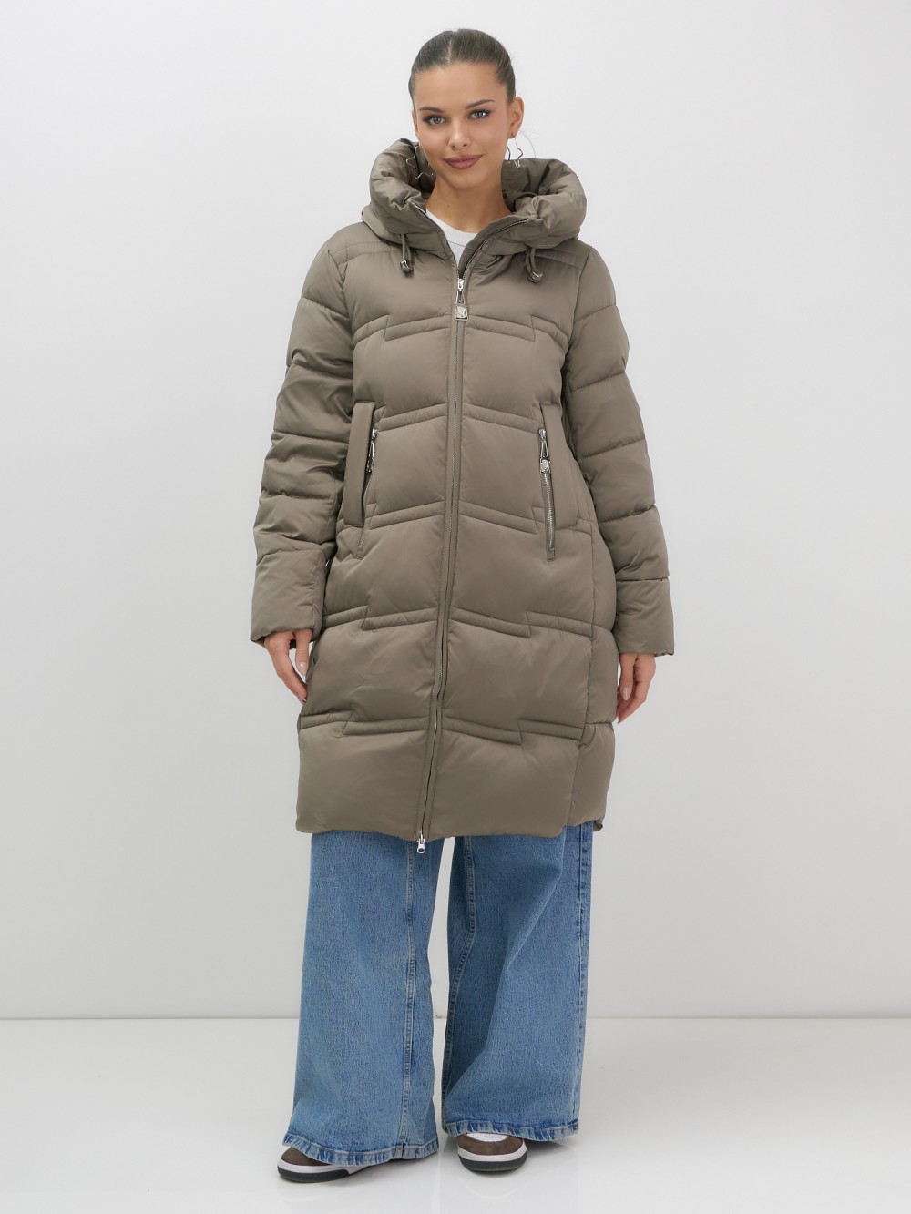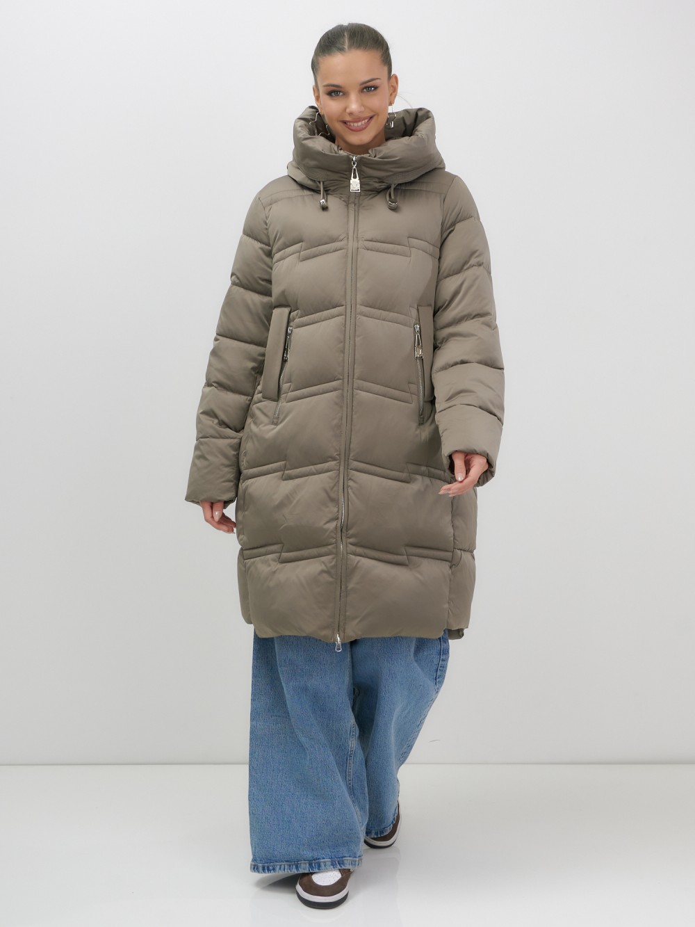 Пальто зимнее утепленное с капюшоном женское светло-коричневого цвета 7779SK — Visdeer