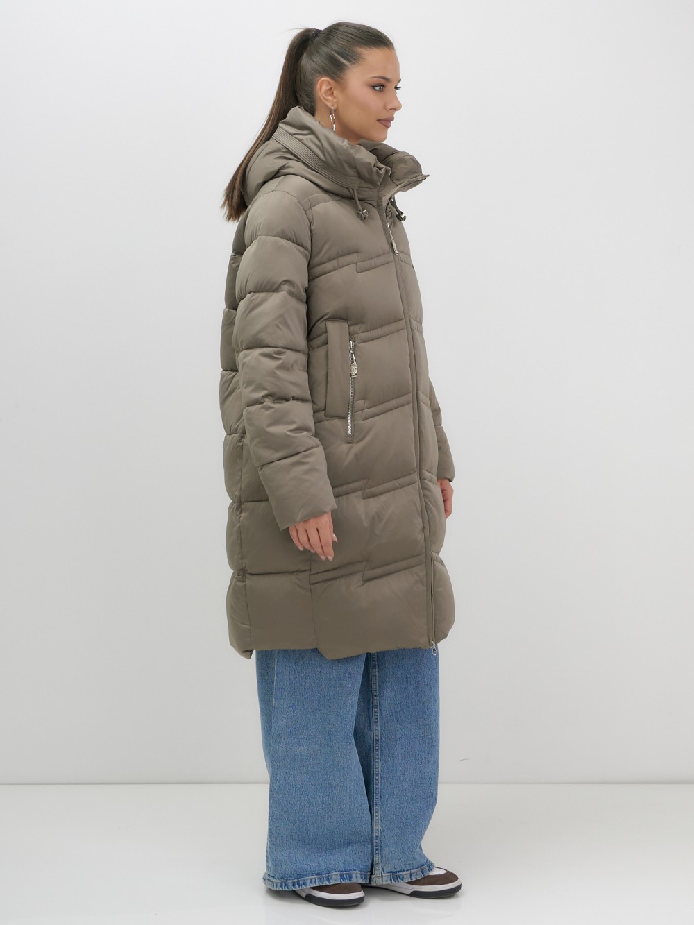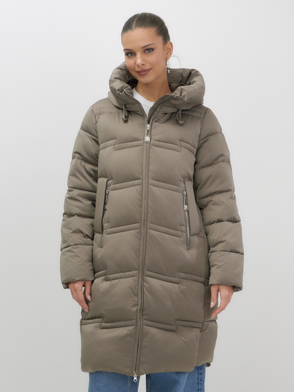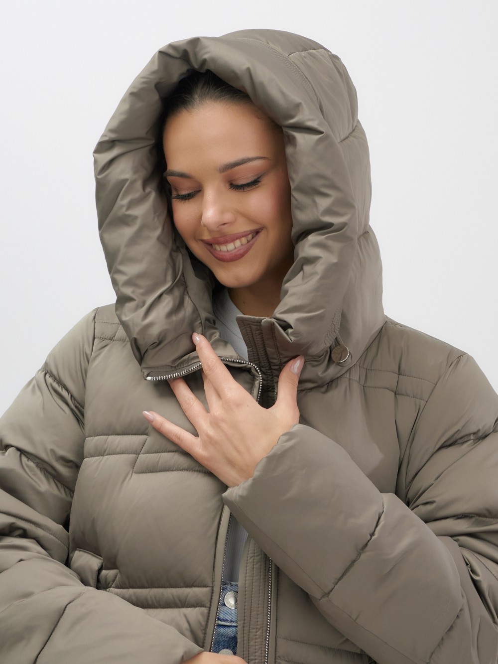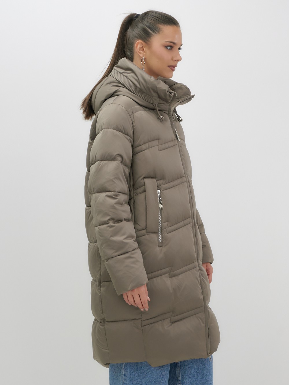 Пальто зимнее утепленное с капюшоном женское светло-коричневого цвета 7779SK