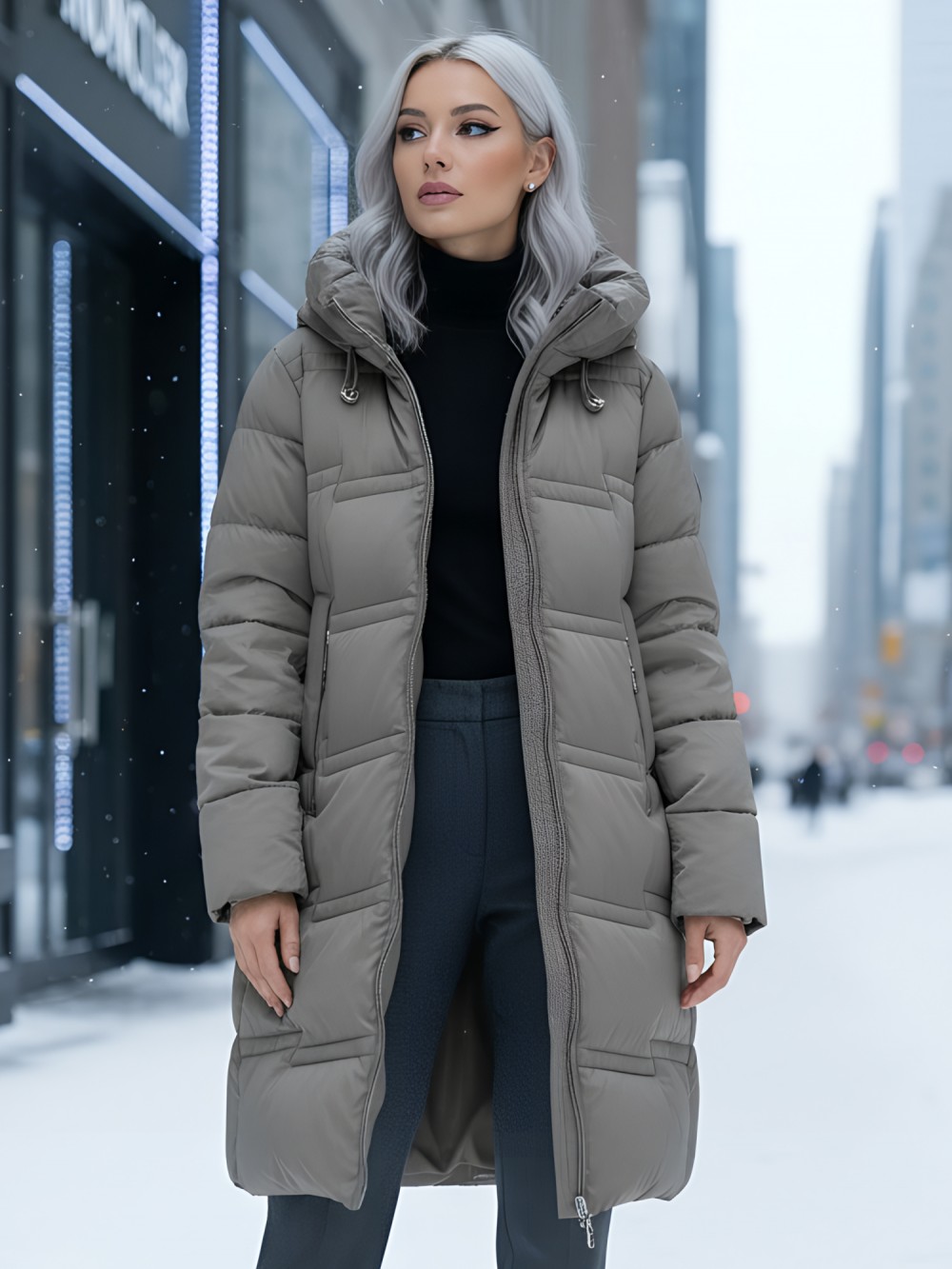 Зимнее утепленное пальто с капюшоном для женщин: Ваш идеальный спутник в холодные дни! Погрузитесь в мир стиля и комфорта с нашим зимним утепленным пальто, созданным для женщин, которые ценят элегантность и функциональность. Это пальто станет вашим незаменимым помощником в борьбе с холодом, придавая вам уверенность и тепло в самые суровые зимние дни. Главные преимущества: Уникальный теплоизоляционный материал: Синтепон плотностью 220 г/кв.м обеспечивает отличную теплоизоляцию при температуре от 0° до -25°C, позволяя вам наслаждаться зимними прогулками без страха замерзнуть. Водонепроницаемость: Мембранные материалы с водонепроницаемостью 7000 мм защитят вас от дождя и снега, гарантируя, что даже в непогоду вы будете выглядеть безупречно. Элегантный дизайн: Удлиненный покрой до колена и прямой/свободный силуэт подчеркивают вашу фигуру, придавая вам стильный и современный вид. Доступные размеры от 48 до 56 и рост от 165 до 195 см позволяют выбрать идеальную посадку для любой фигуры. Практичные детали: Не съемный капюшон, внутренние карманы для хранения необходимых мелочей, а также удобная двойная молния делают это пальто не только стильным, но и функциональным. Комфорт на высшем уровне: Быстросохнущий, ветрозащитный и водоотталкивающий материал обеспечивает максимальный комфорт в любых условиях. Гипоаллергенные и дышащие ткани гарантируют, что вы будете чувствовать себя комфортно в течение всего дня. Стиль и универсальность: Это пальто идеально подходит как для офисных будней, так и для повседневных прогулок. Его можно сочетать с различными нарядами, будь то классический или спортивный стиль. Доступные цвета: коричневый, черный, светло-коричневый и темно-серый — вы точно найдете свой идеальный вариант. Не упустите шанс стать обладательницей этого великолепного пальто! Покупая его, вы инвестируете в качество, стиль и комфорт. Закажите сегодня и наслаждайтесь каждым моментом зимы, оставаясь стильной и защищенной от холода!