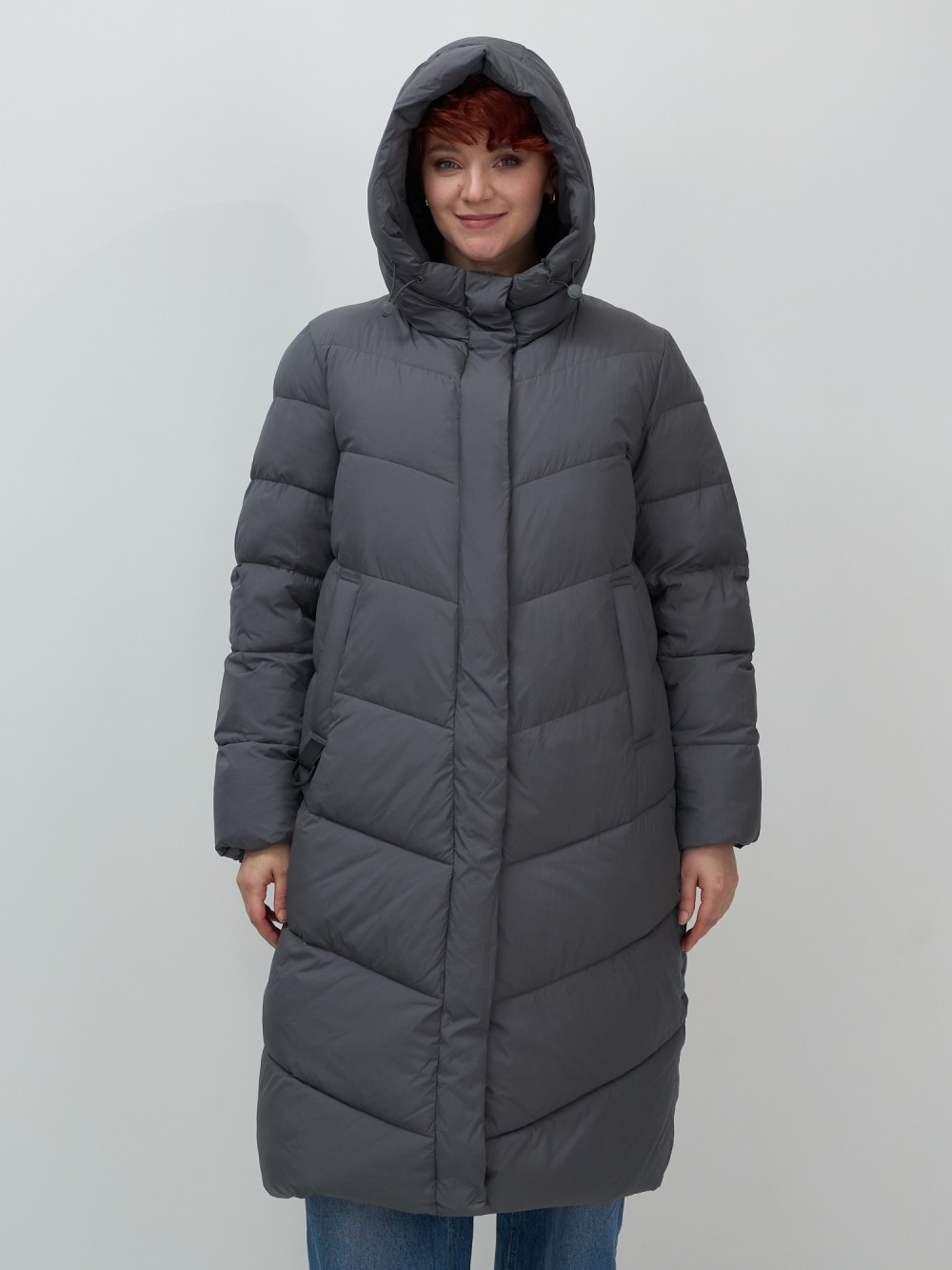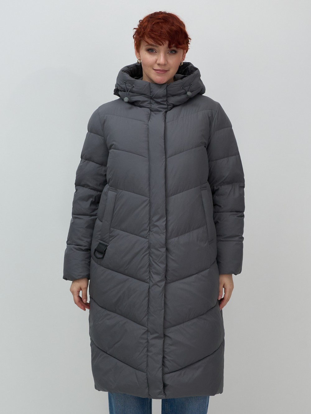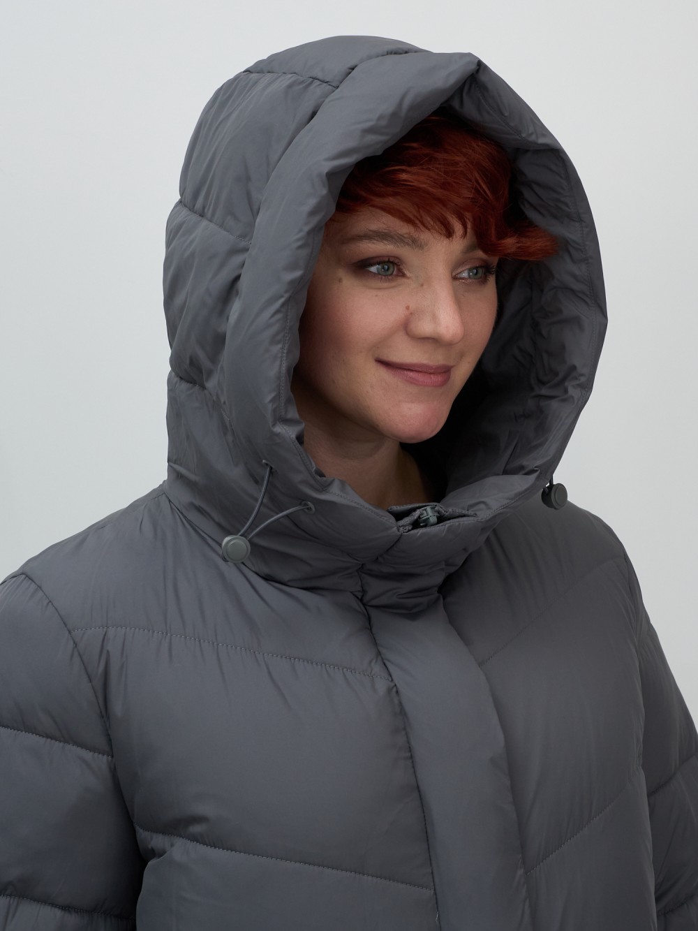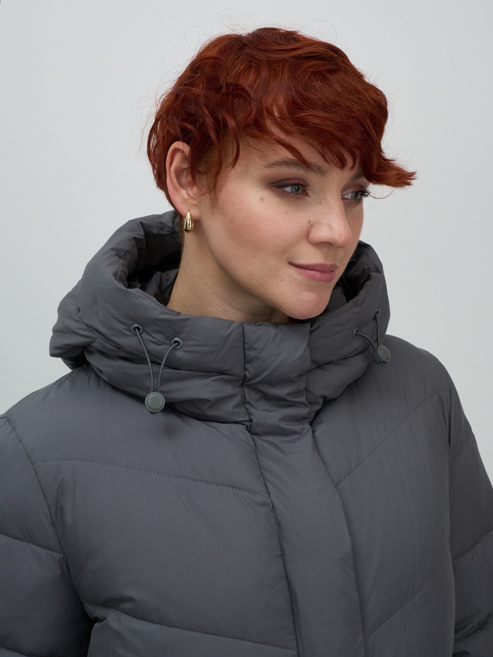Пальто зимнее утепленное с капюшоном женское темно-серого цвета 7623TC — Visdeer