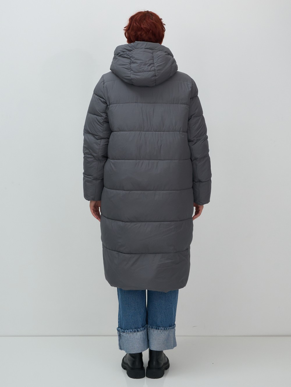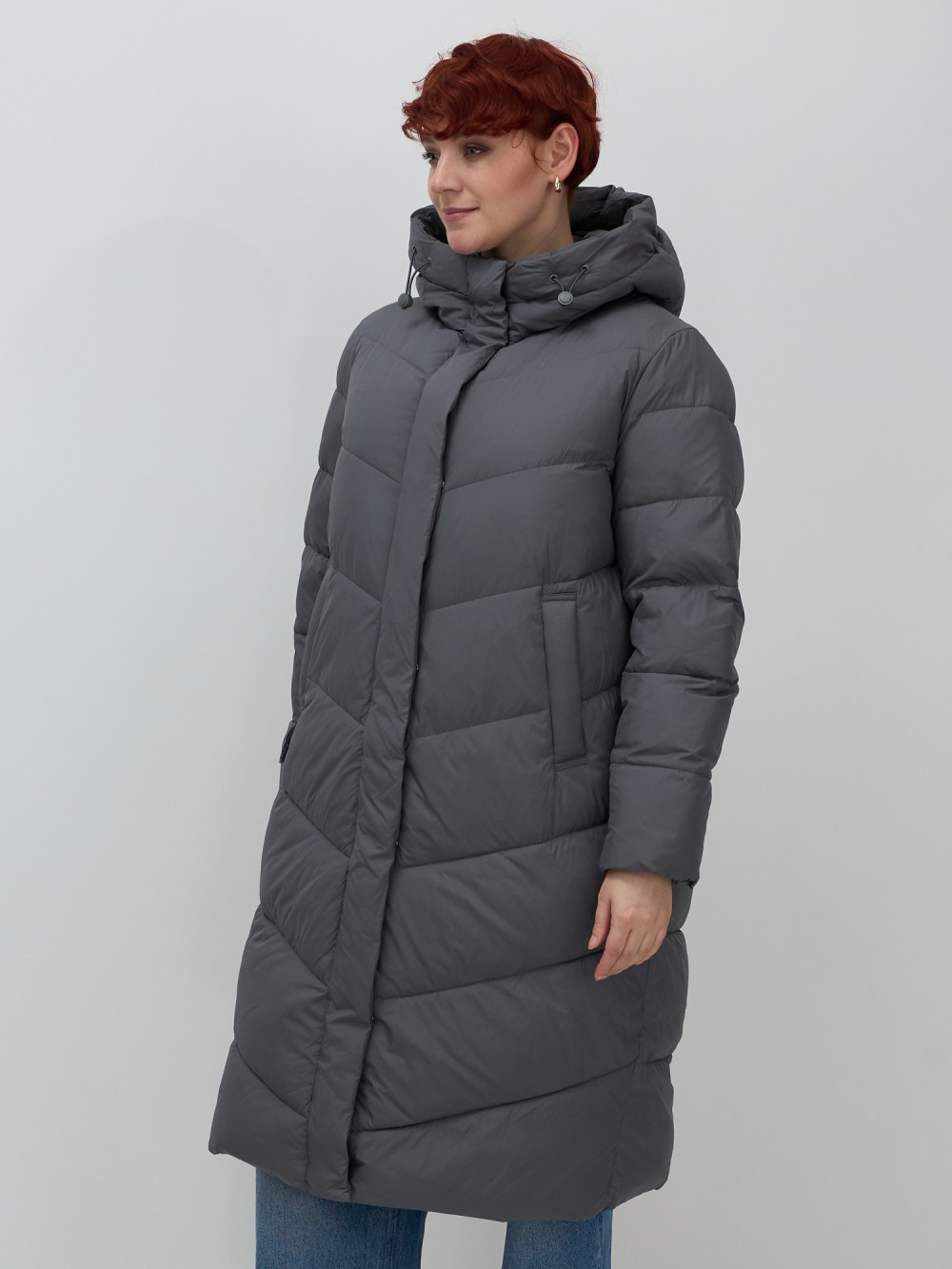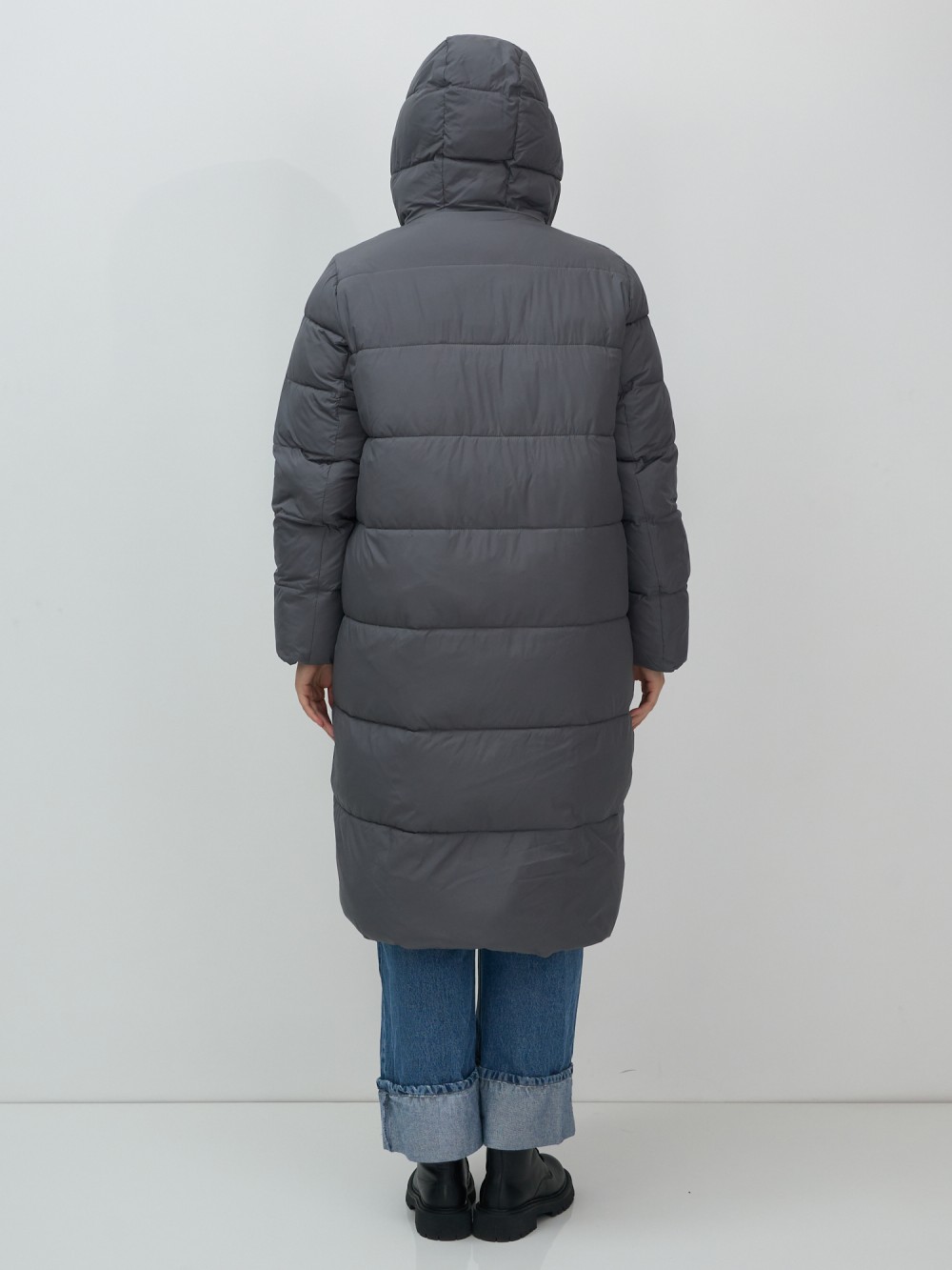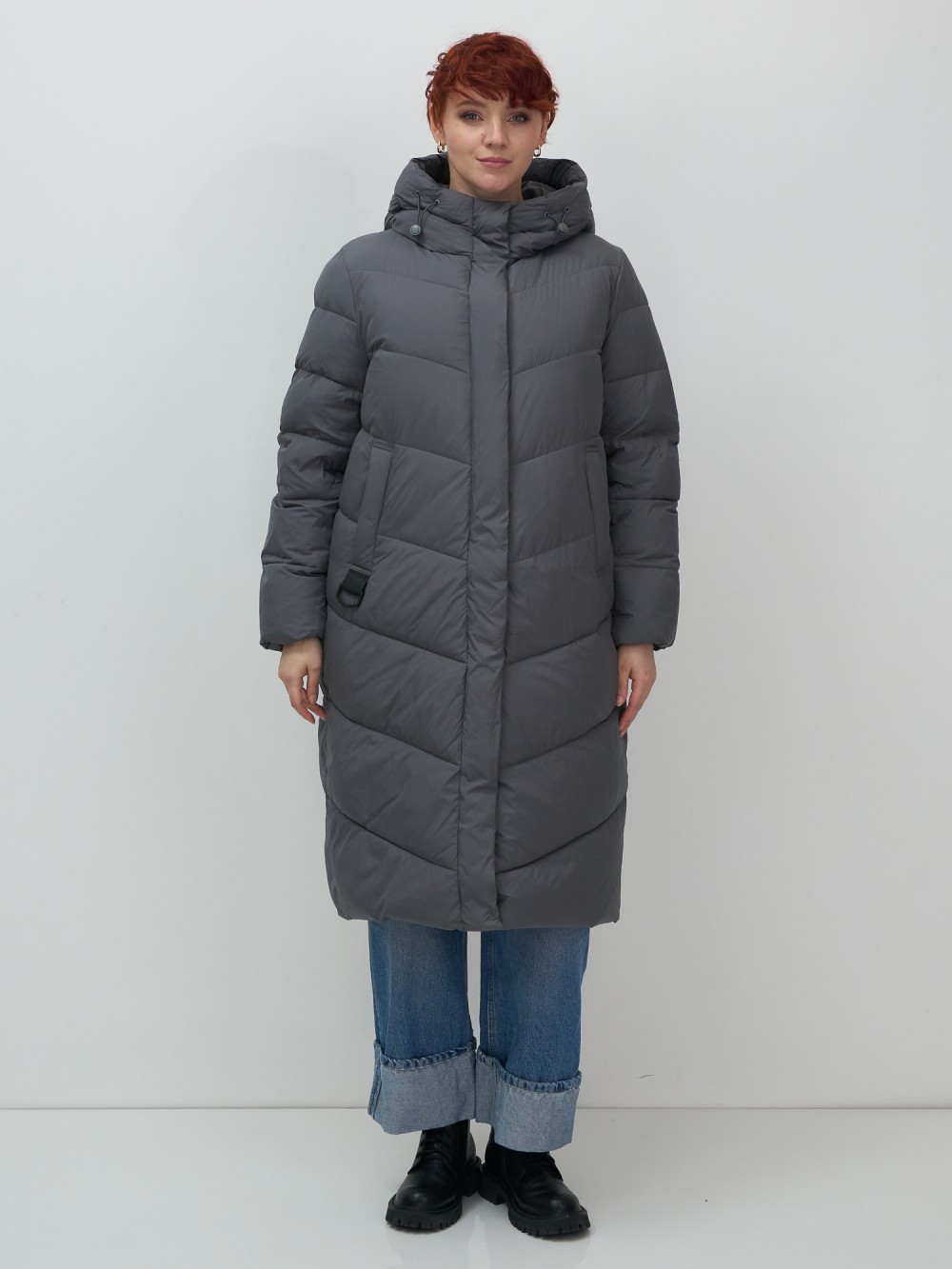 Пальто зимнее утепленное с капюшоном женское темно-серого цвета 7623TC — Visdeer