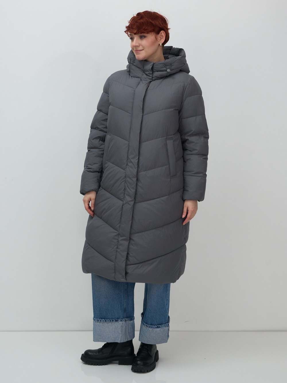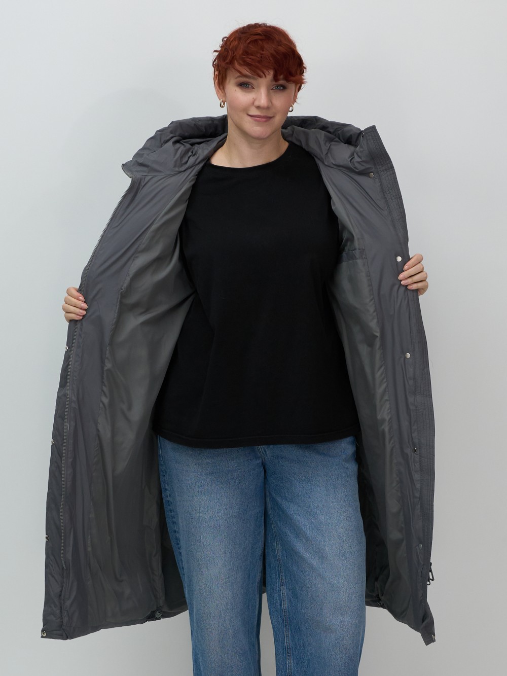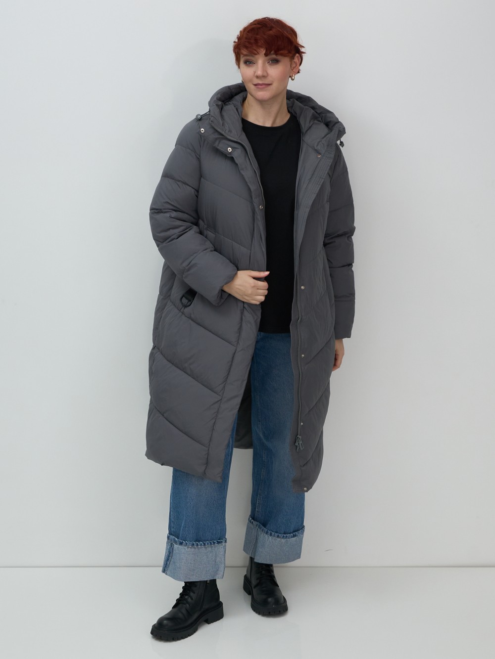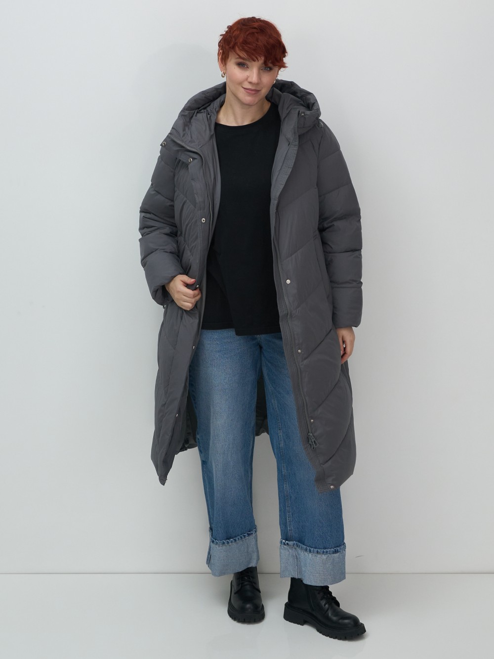 Пальто зимнее утепленное с капюшоном женское темно-серого цвета 7623TC — Visdeer