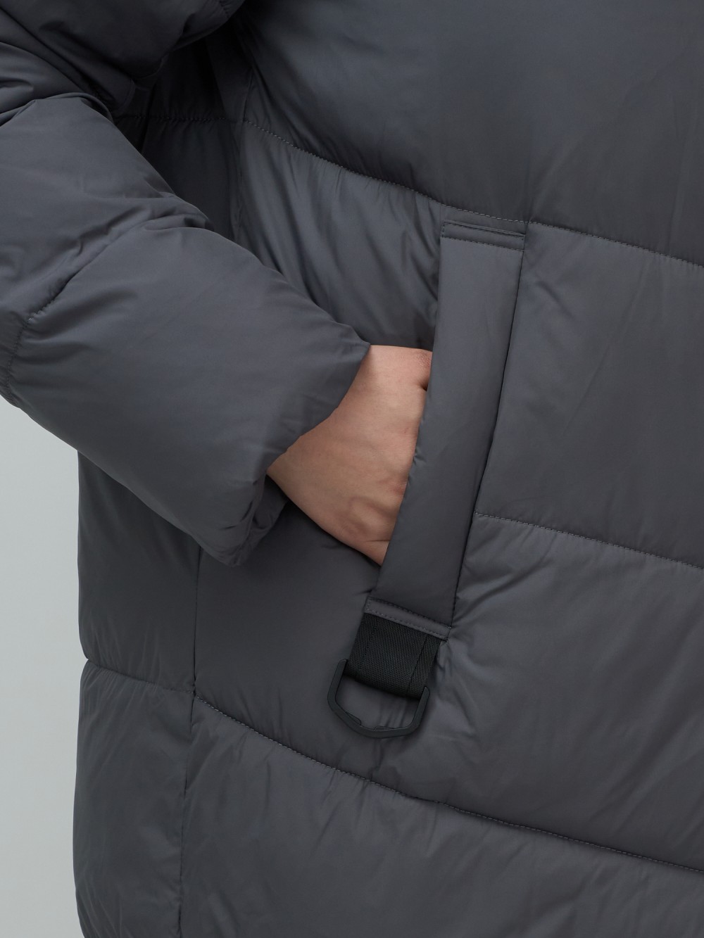 Пальто зимнее утепленное с капюшоном женское темно-серого цвета 7623TC