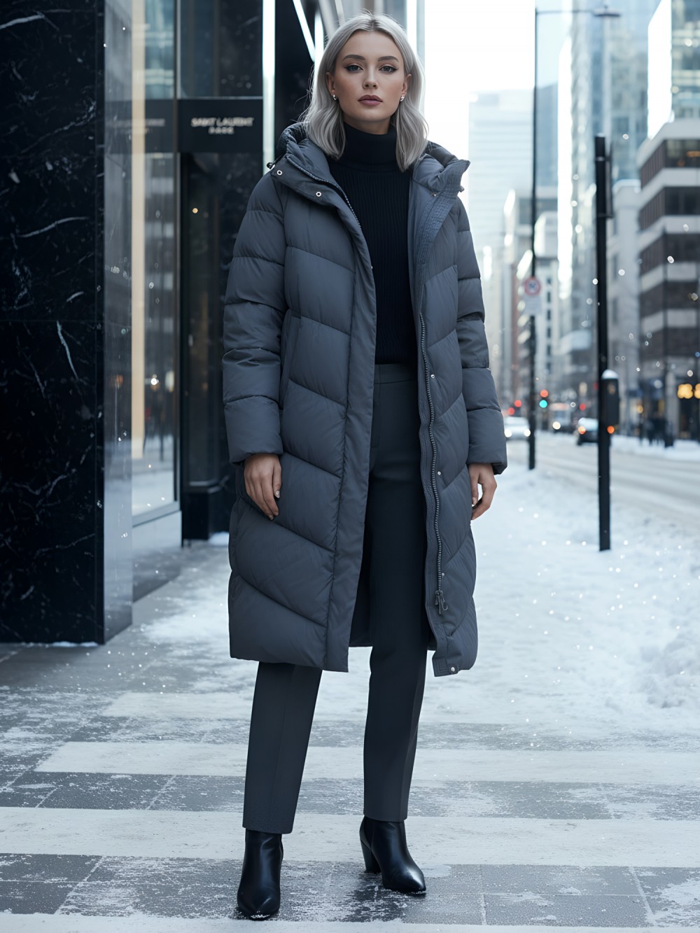 Не упустите возможность приобрести это зимнее утепленное пальто с капюшоном и оставайтесь в тренде этой осенью и зимой! Это пальто станет вашим незаменимым спутником в холодную погоду, обеспечивая тепло, комфорт и стиль. Закажите сейчас и насладитесь качеством и изысканностью!