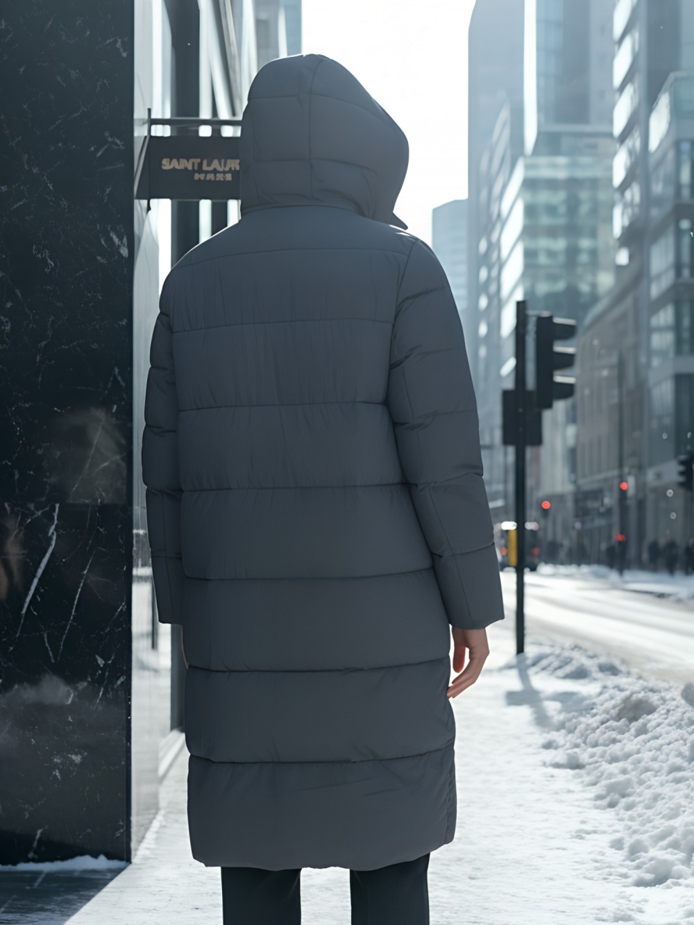 Удлиненный крой ниже колена и прямой, свободный покрой делают это пальто универсальным для любого стиля: от офисного до повседневного. Капюшон с фиксатором и стильные карманы добавляют функциональности и эстетики. Внутренние карманы с полиэстером обеспечивают дополнительный комфорт и удобство.