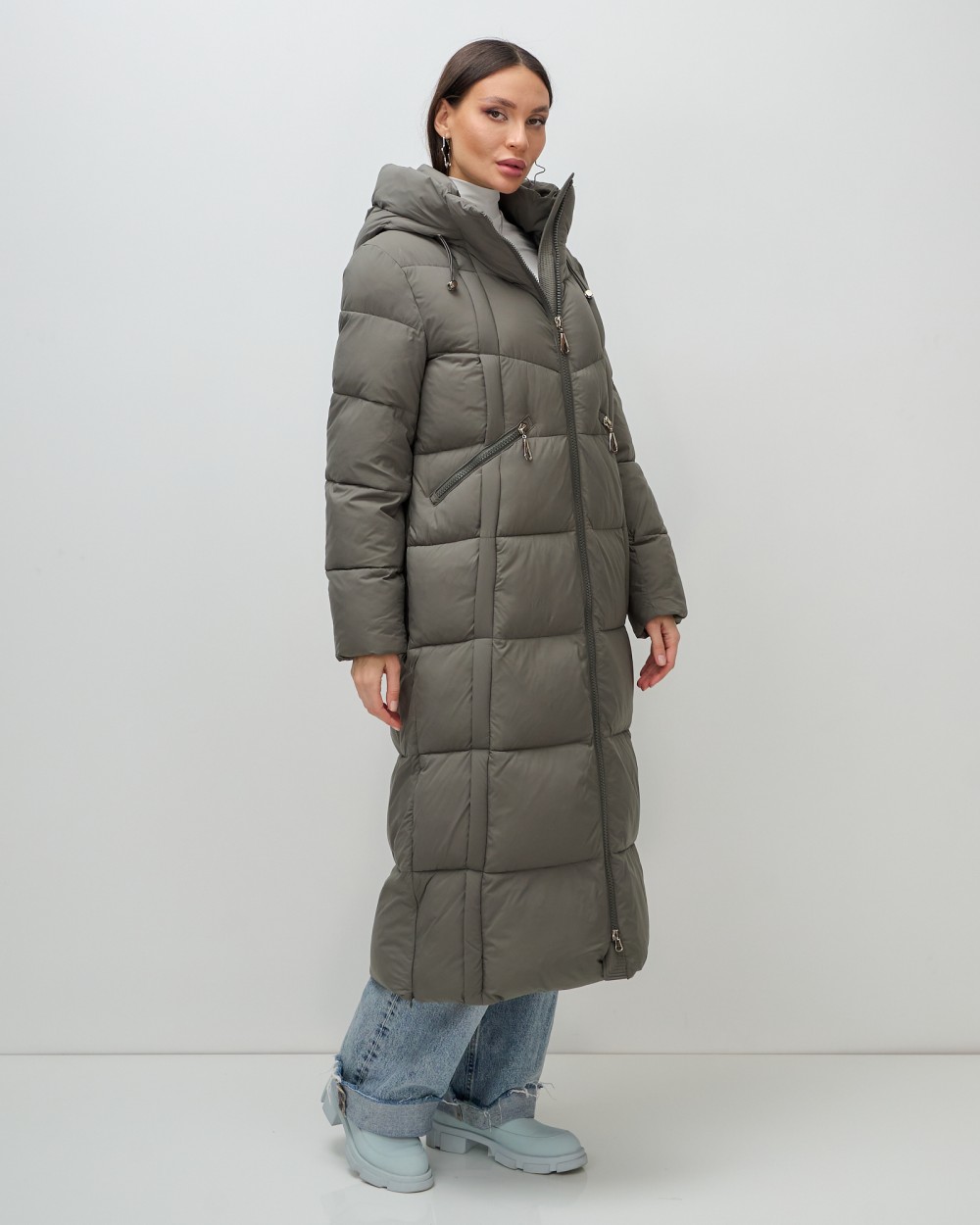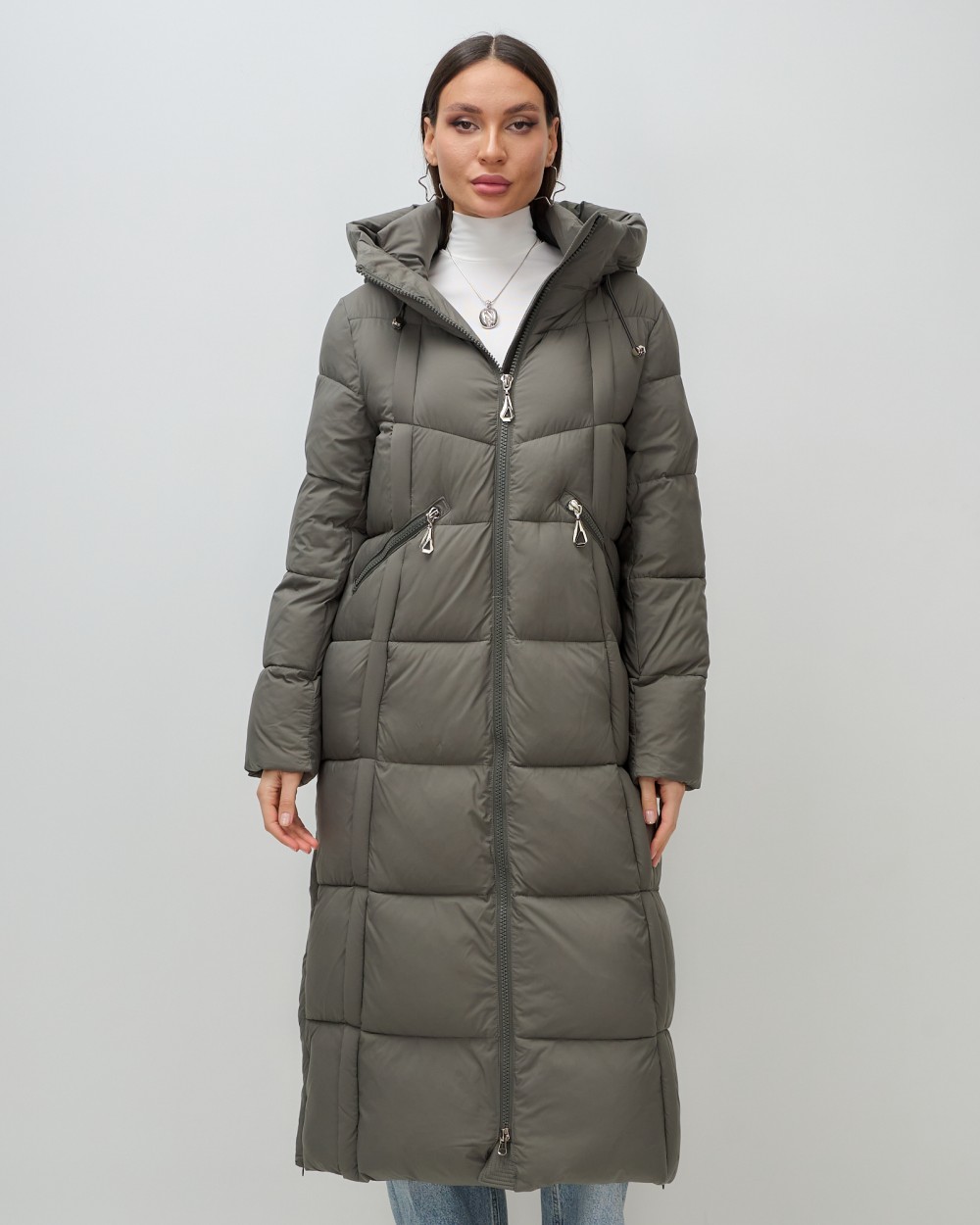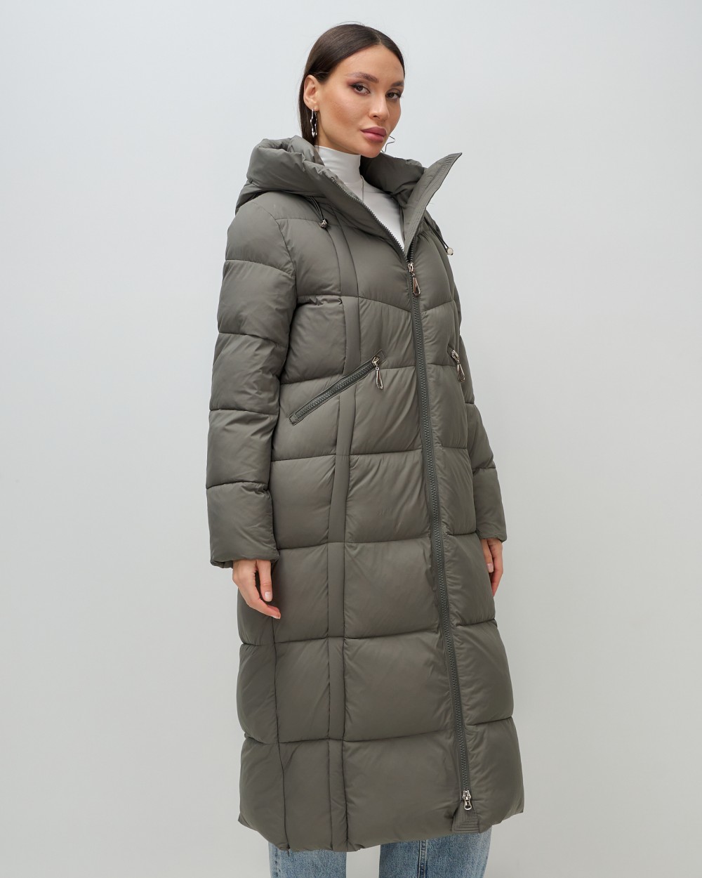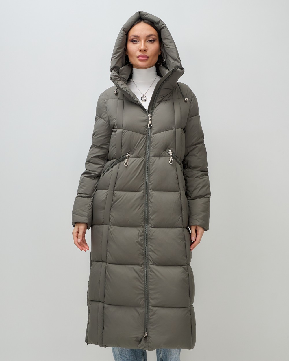 Пальто зимнее утепленное с капюшоном женское темно-серого цвета 7729TC — Visdeer