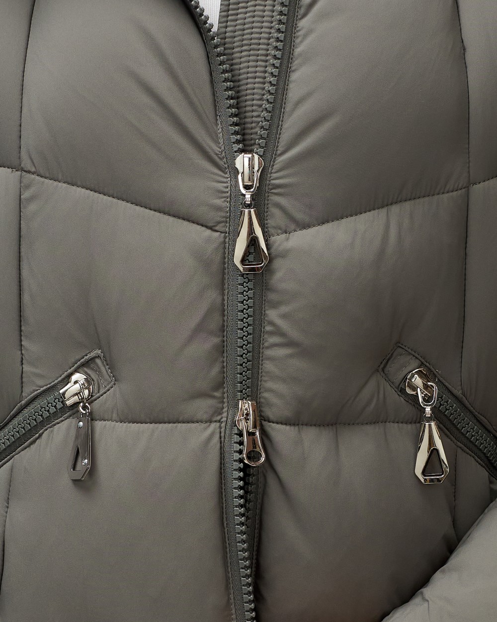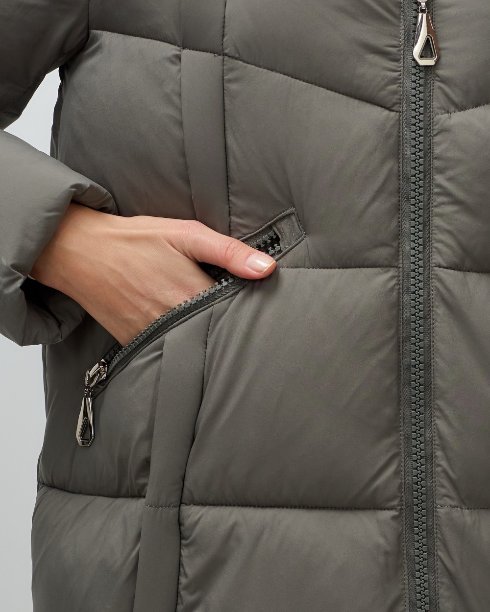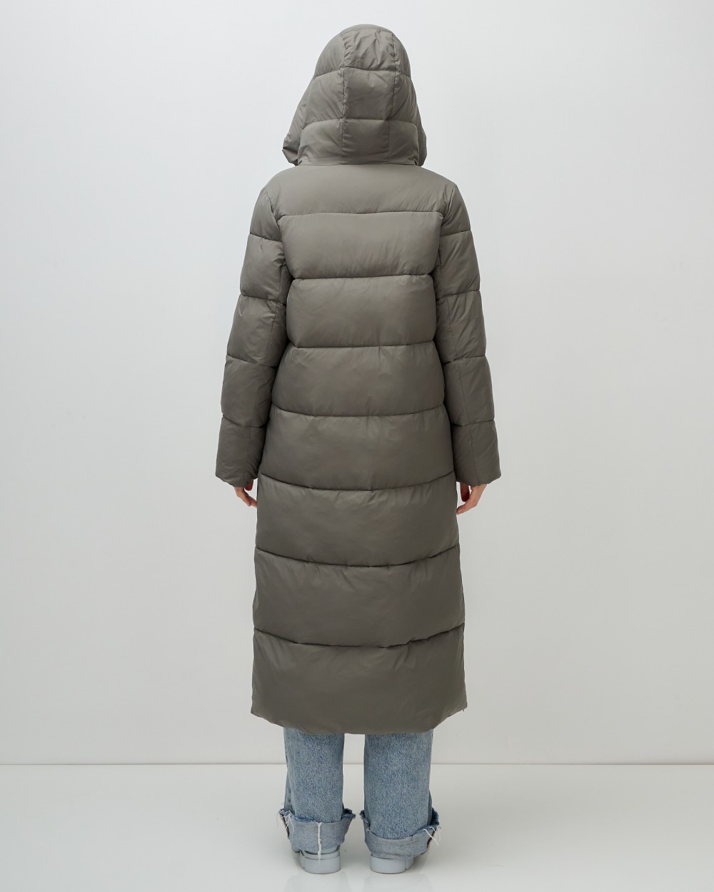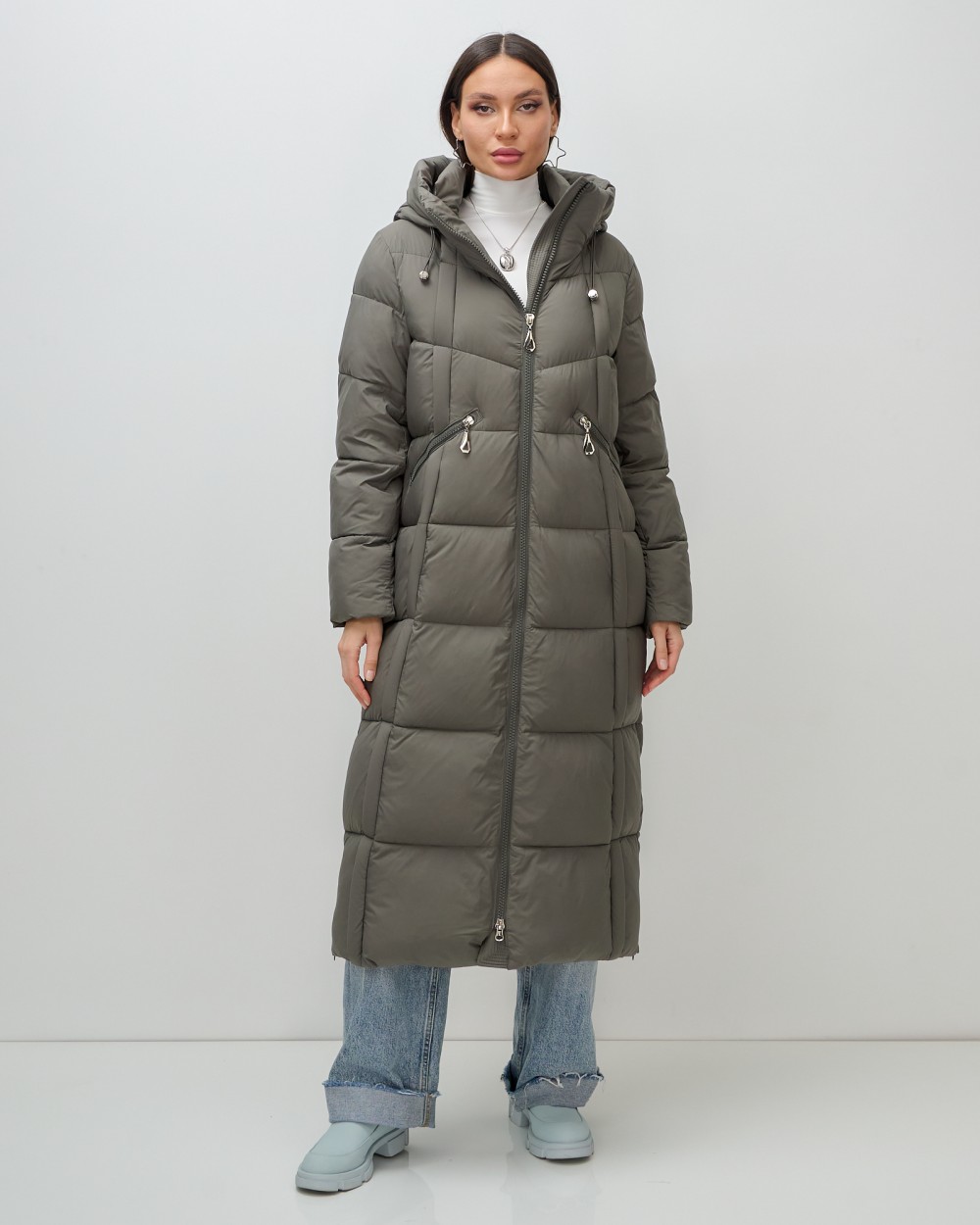 Пальто зимнее утепленное с капюшоном женское темно-серого цвета 7729TC — Visdeer
