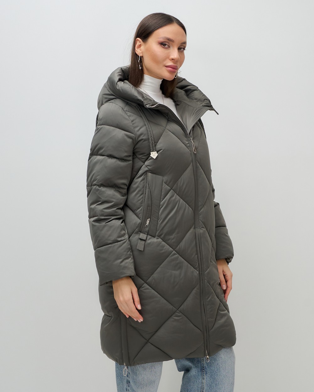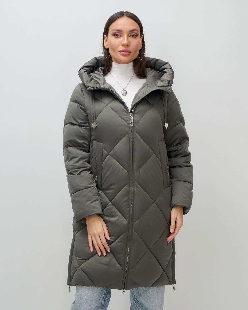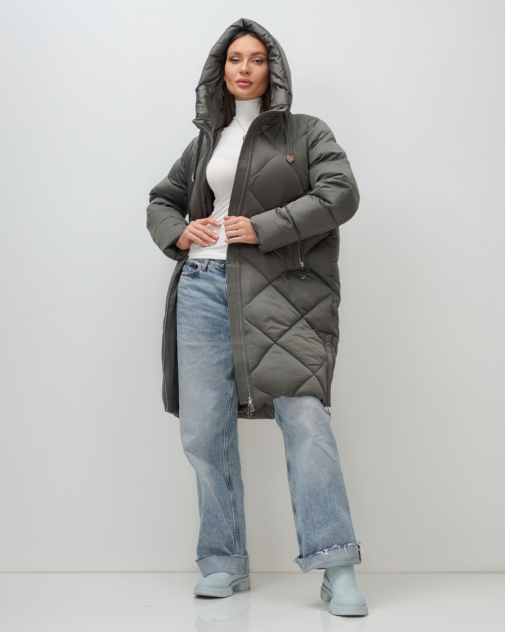 Пальто зимнее утепленное с капюшоном женское зеленого цвета 7637Z — Visdeer