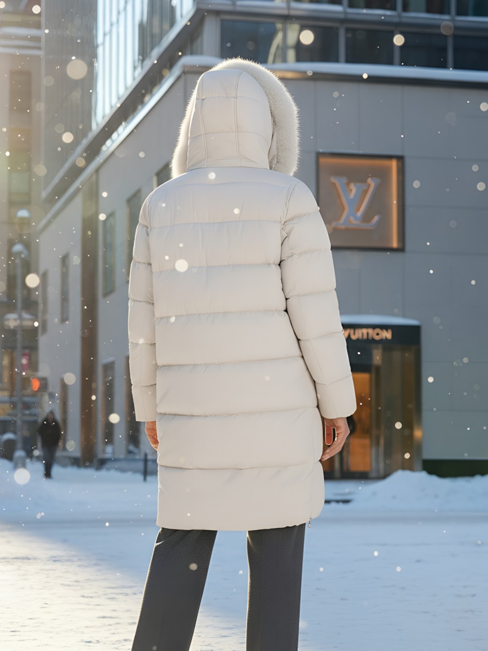 Роскошное зимнее пальто премиум-класса 2025 с натуральным мехом песца – эталон безупречного стиля! Высокотехнологичная мембрана 7000 мм гарантирует абсолютную защиту от влаги и ветра. Инновационный утеплитель плотностью 220 г/м² обеспечивает непревзойденное тепло до -22°C.