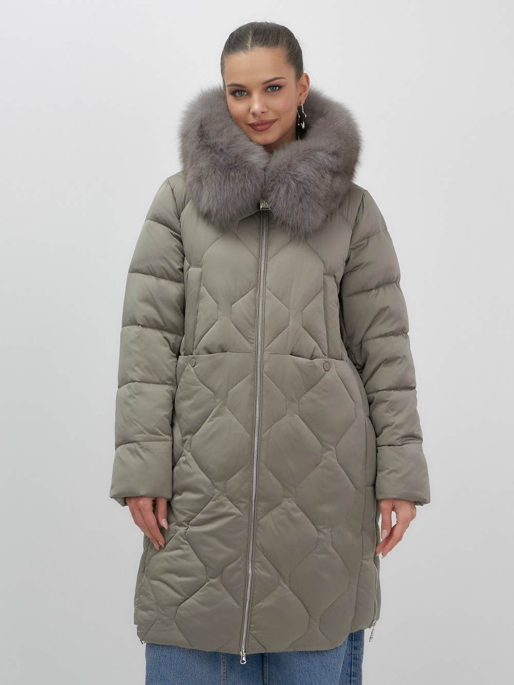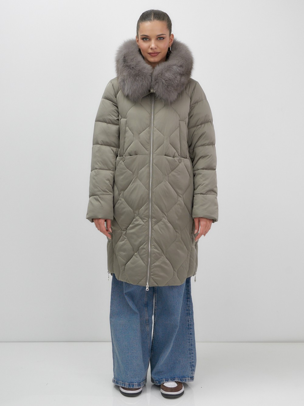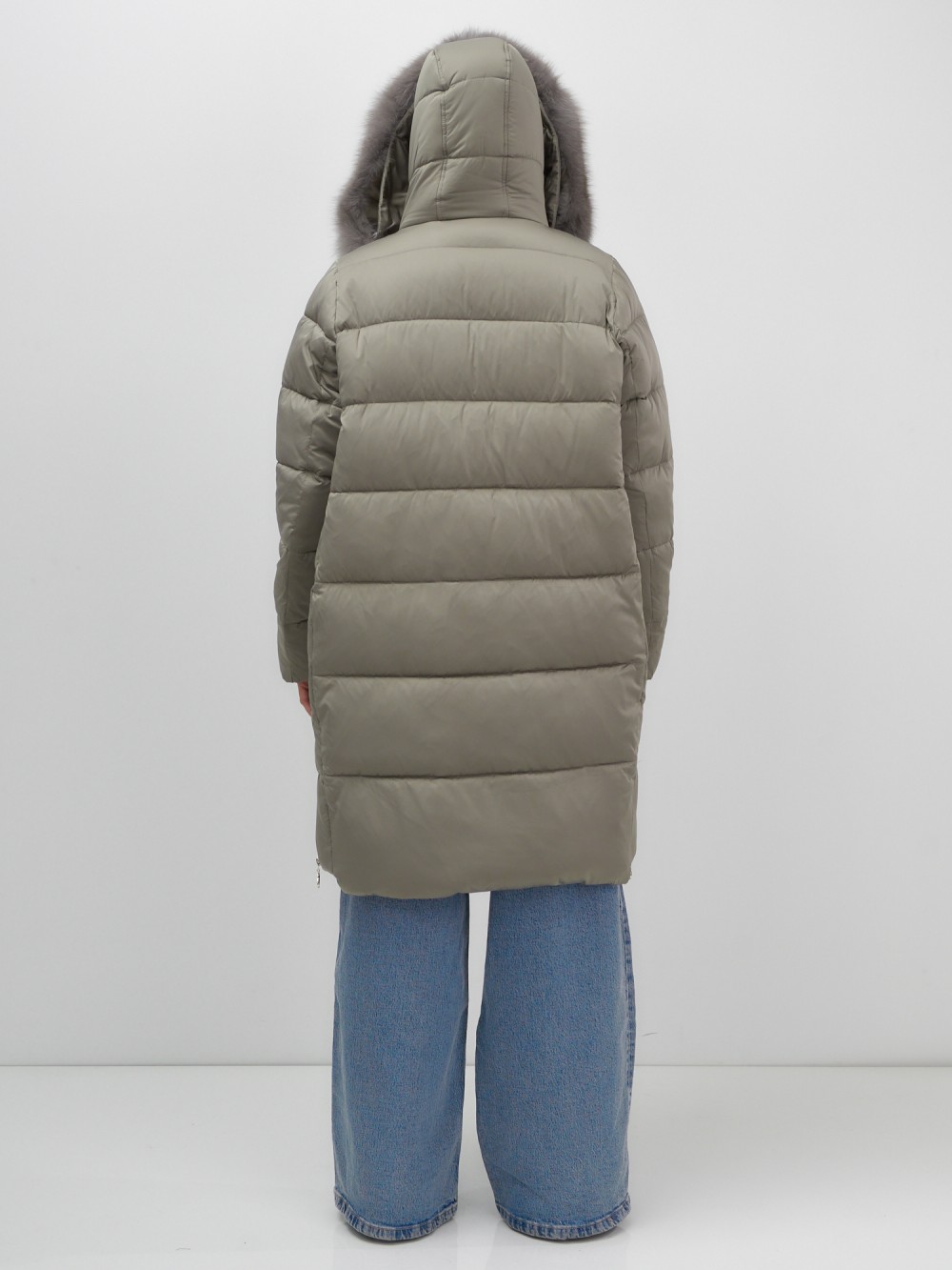 Пальто зимнее утепленное с мехом и капюшоном тренд коричневого цвета 7753K — Visdeer