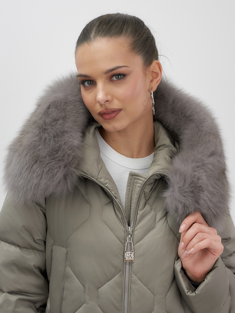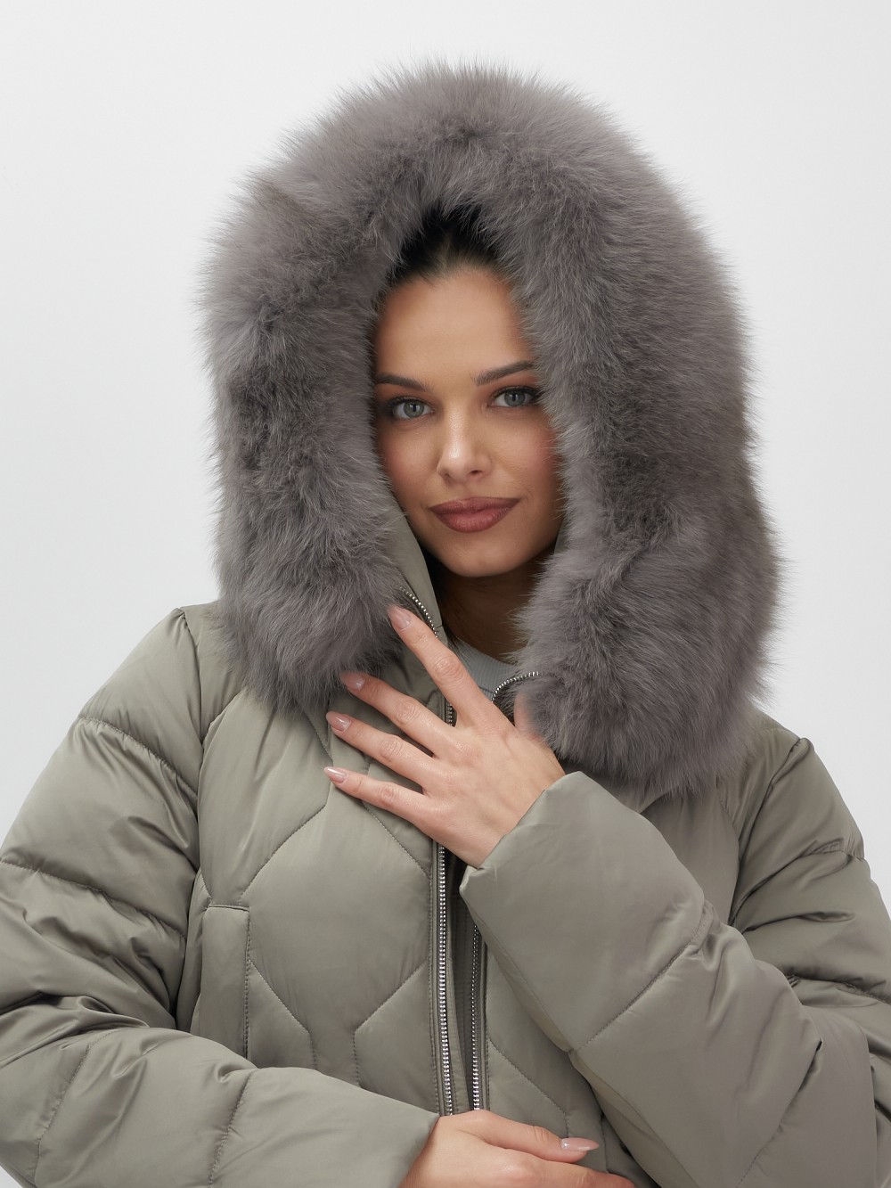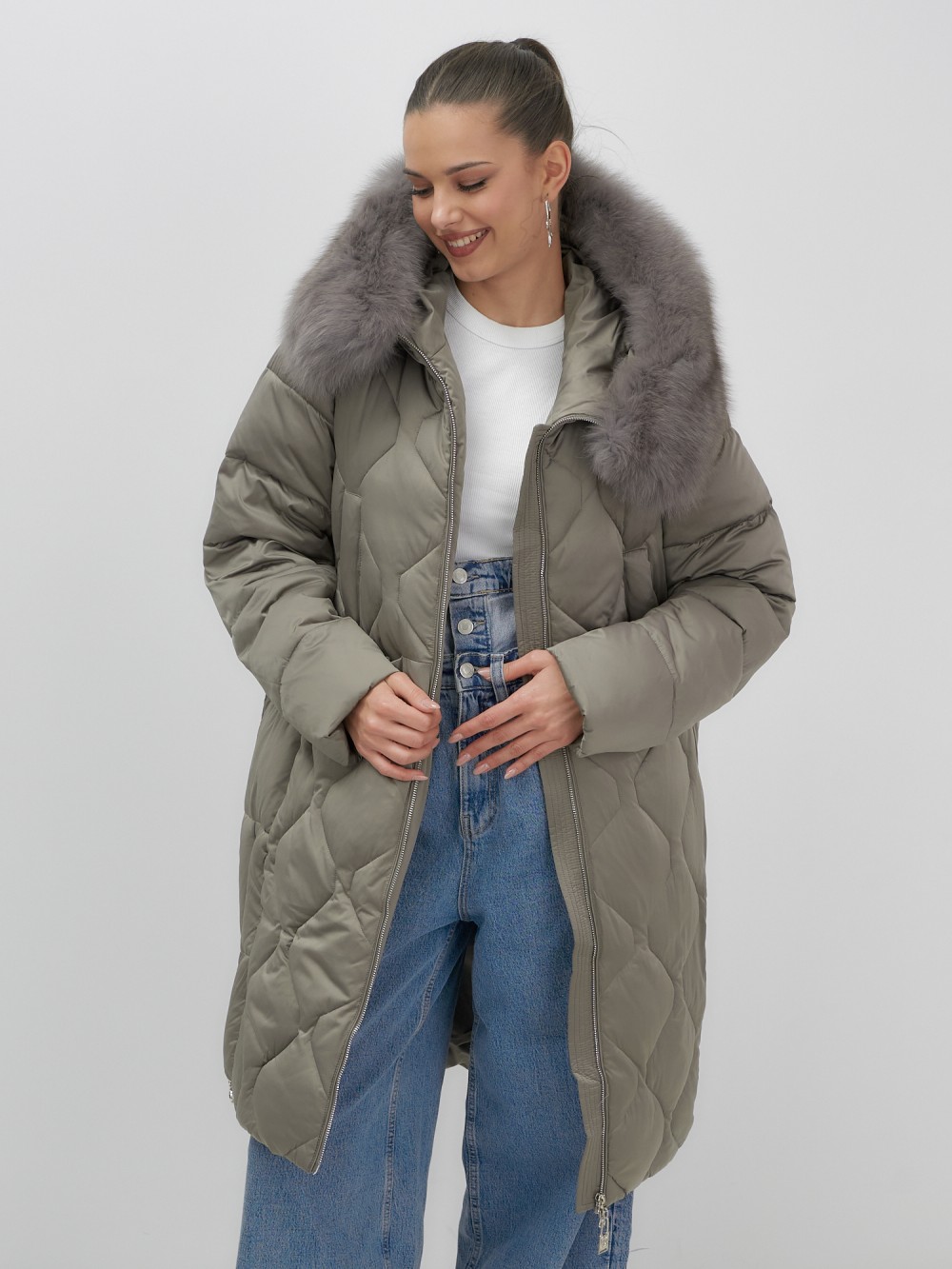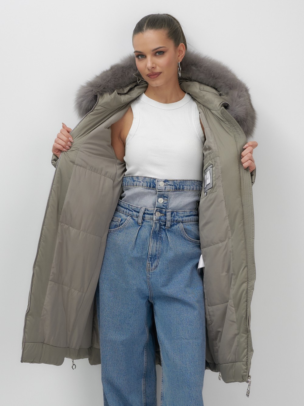 Пальто зимнее утепленное с мехом и капюшоном тренд коричневого цвета 7753K
