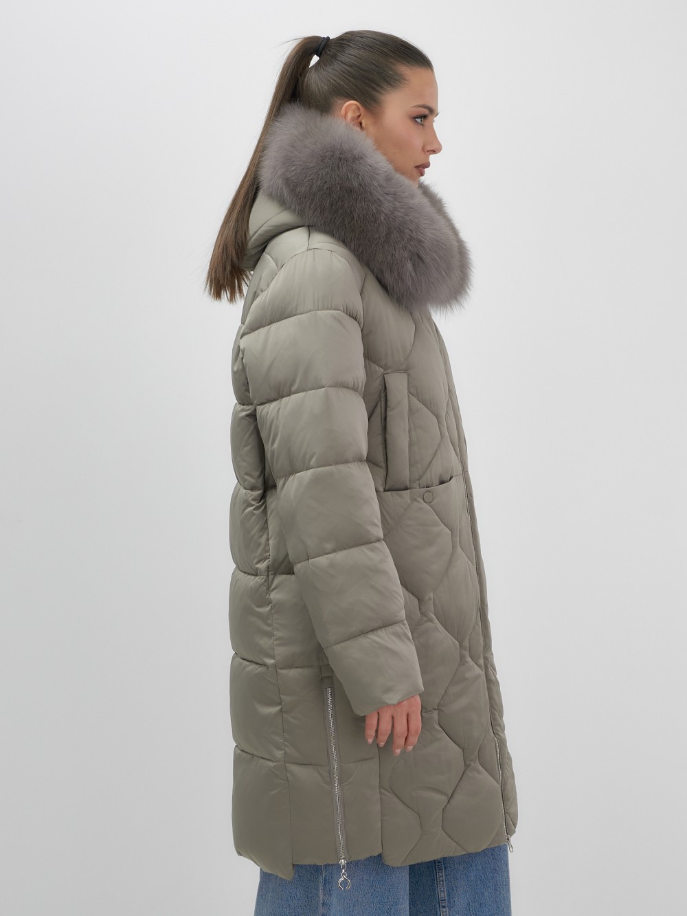 Каждая деталь воплощает премиальное качество: проклеенные швы, изысканные заклепки, эргономичный вырез для пальца на манжетах, функциональные прорезные и накладные карманы на кнопках. Съемная опушка из натурального песца создает неповторимый образ. Первоклассное качество меха подчеркивает статус владелицы.