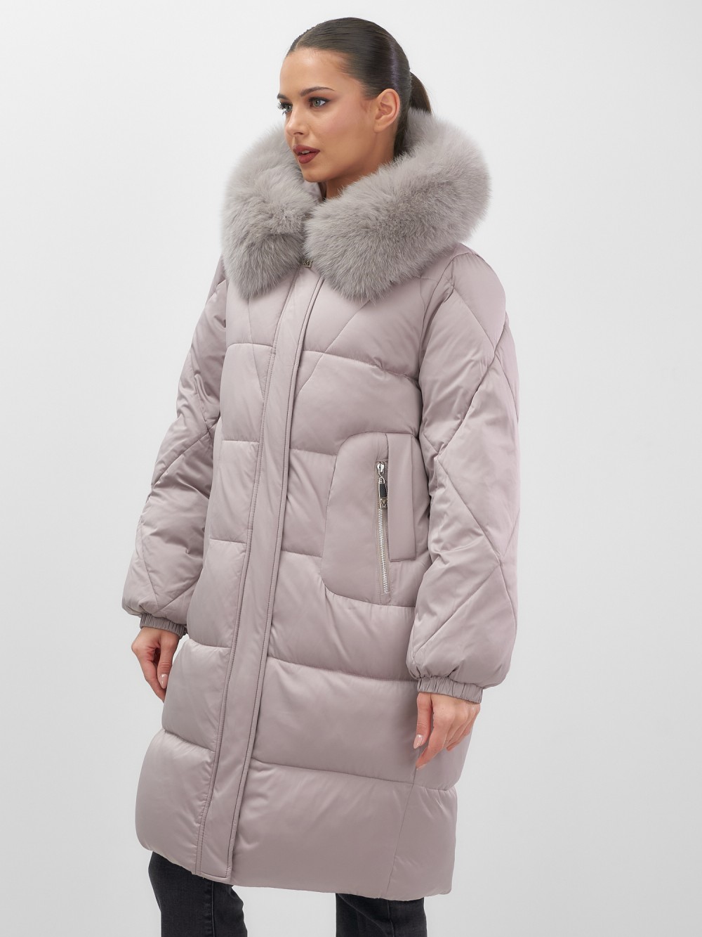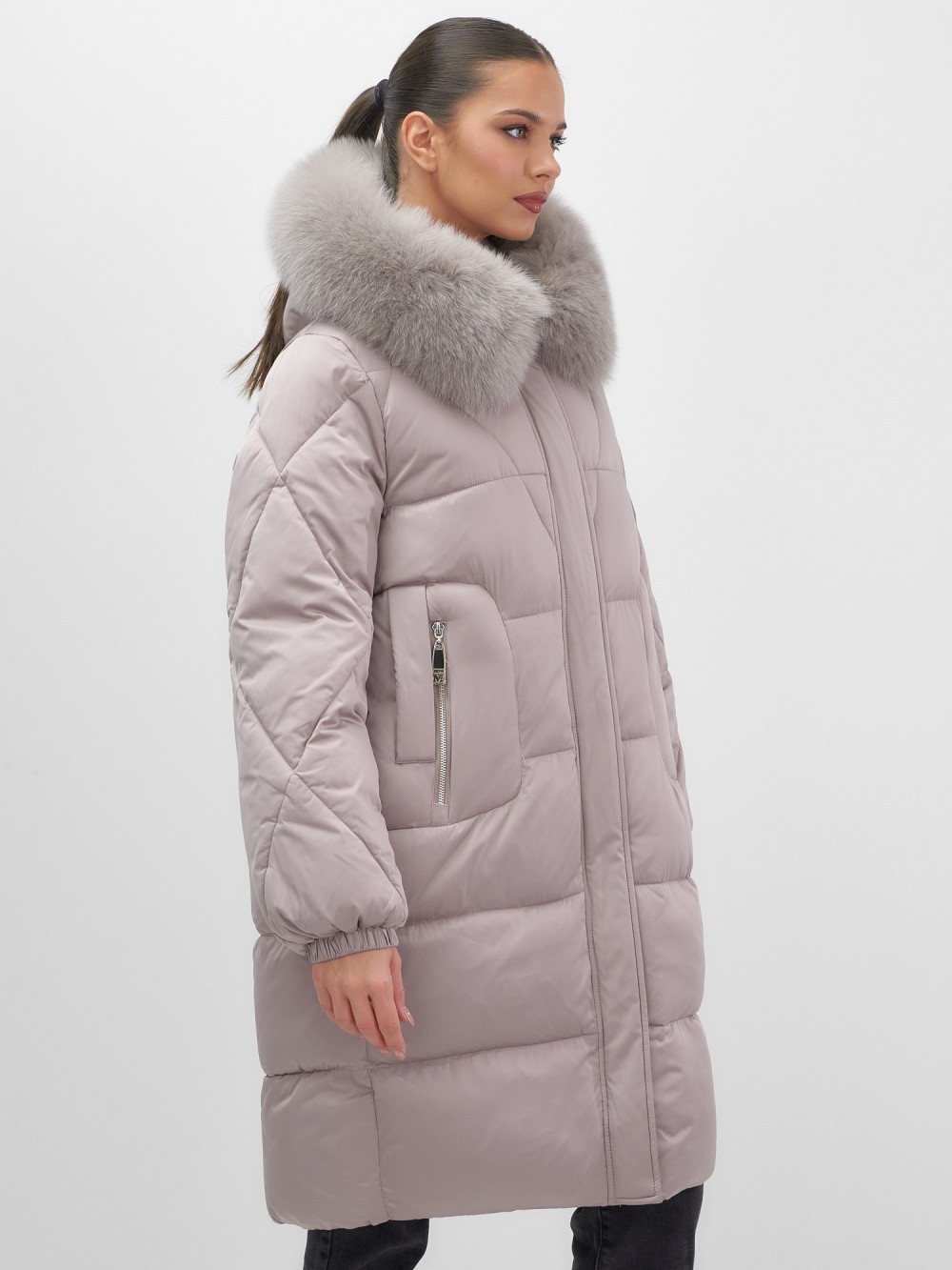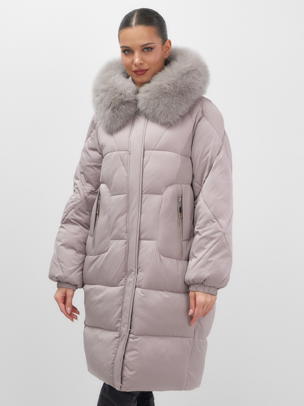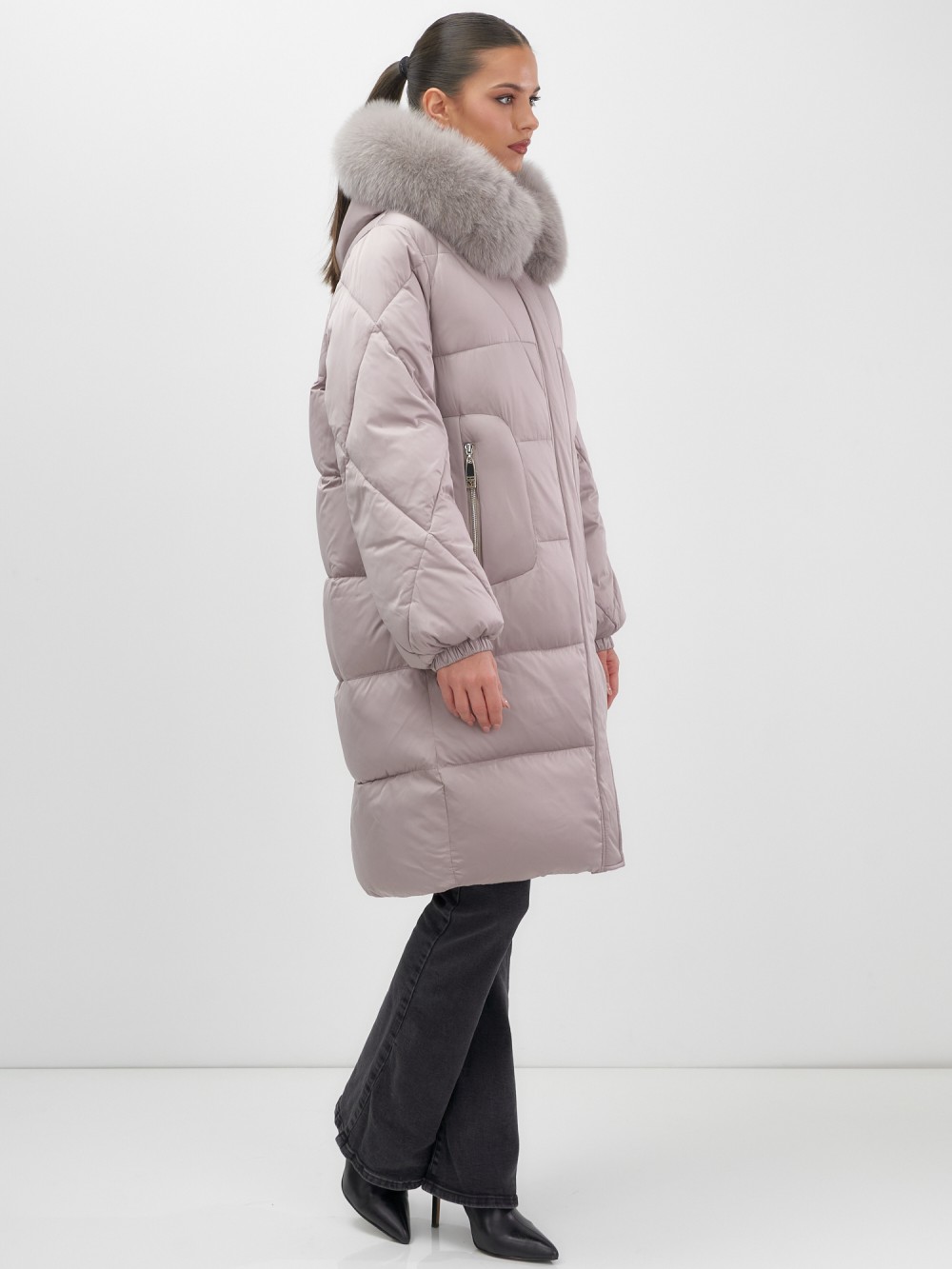 Непревзойденное качество исполнения: двойная молния с защитным клапаном на кнопках, инновационная система фиксаторов на капюшоне и по низу изделия, утягивающий силуэт для безупречной посадки. Изысканная съемная опушка из натурального песца создает роскошный образ. Первоклассное качество меха – символ престижа.