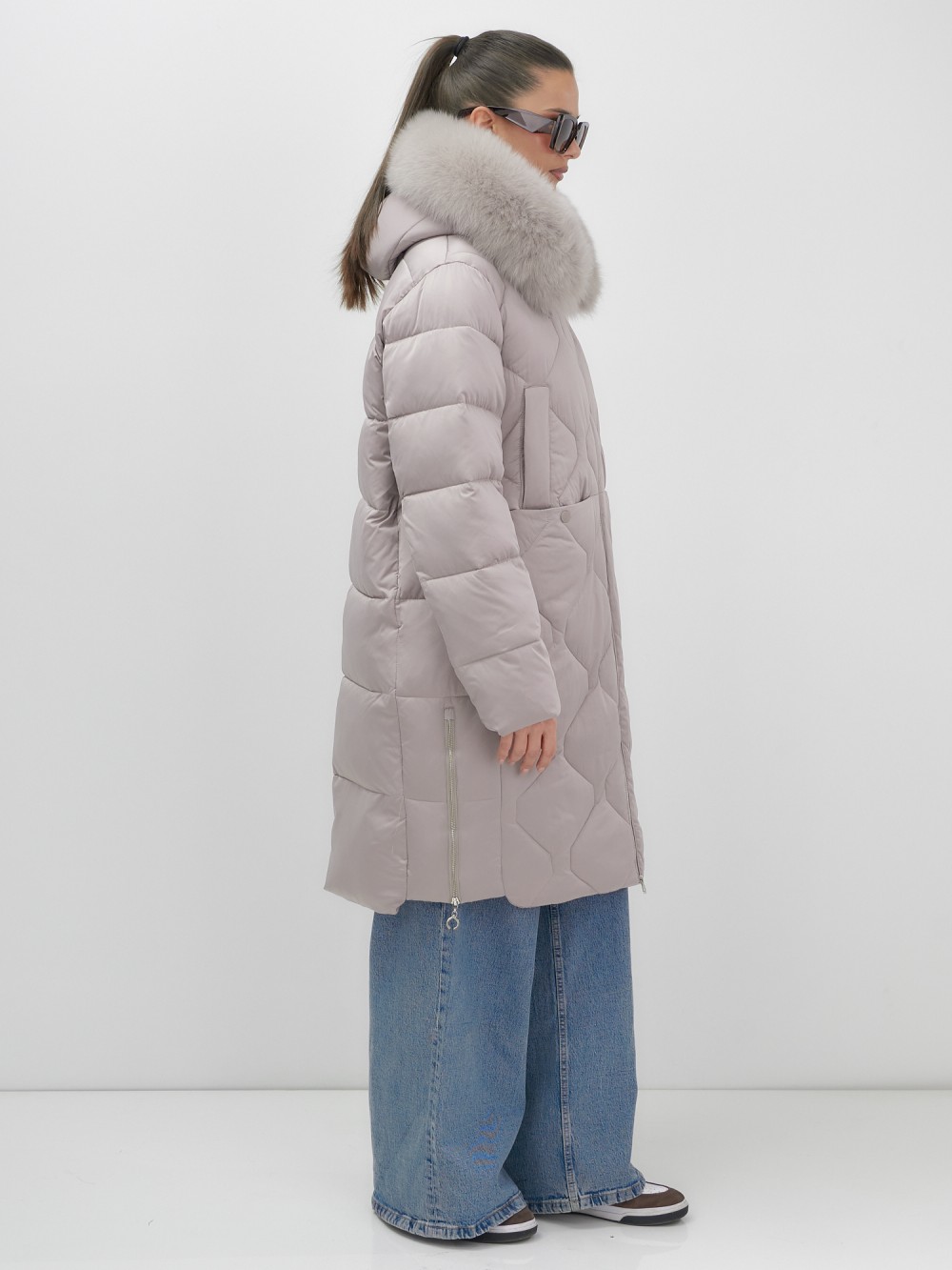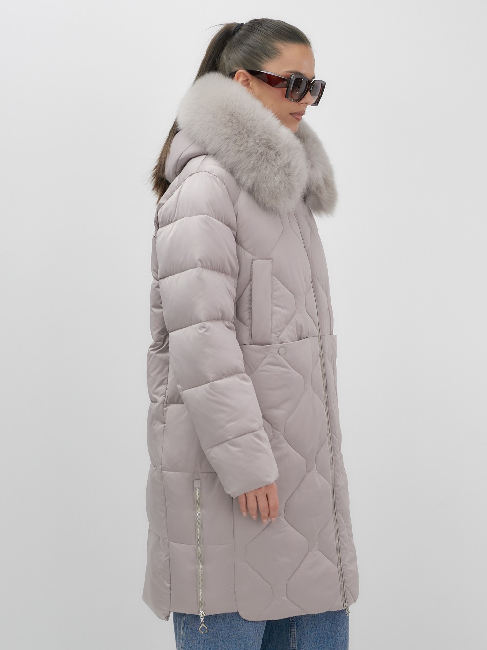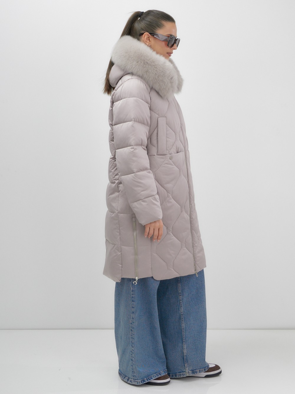 Каждая деталь воплощает премиальное качество: проклеенные швы, изысканные заклепки, эргономичный вырез для пальца на манжетах, функциональные прорезные и накладные карманы на кнопках. Съемная опушка из натурального песца создает неповторимый образ. Первоклассное качество меха подчеркивает статус владелицы.