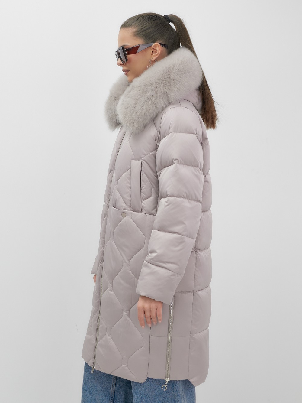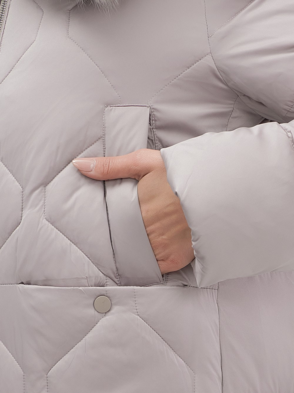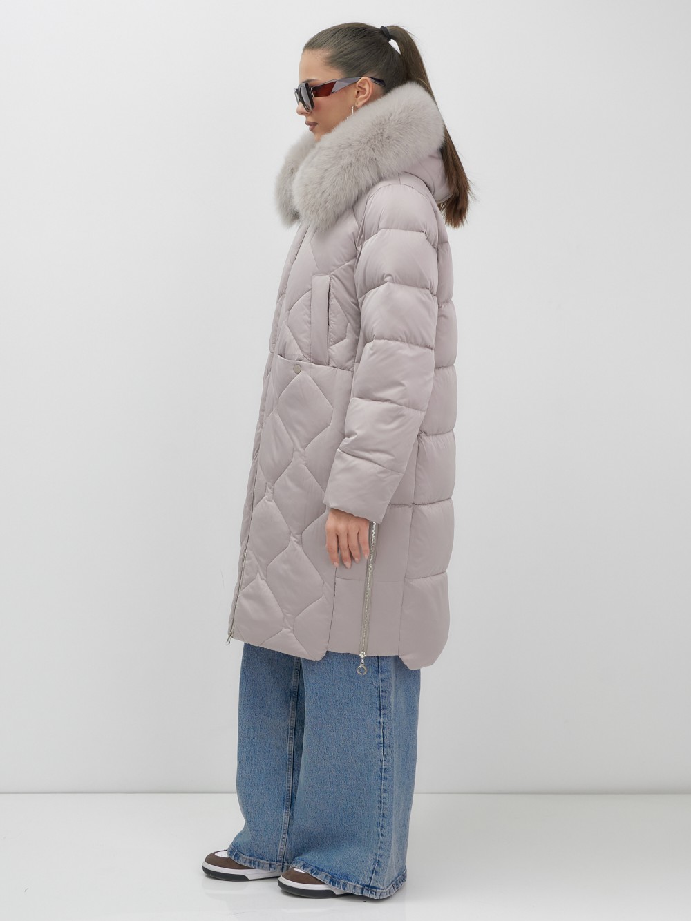 Каждая деталь воплощает премиальное качество: проклеенные швы, изысканные заклепки, эргономичный вырез для пальца на манжетах, функциональные прорезные и накладные карманы на кнопках. Съемная опушка из натурального песца создает неповторимый образ. Первоклассное качество меха подчеркивает статус владелицы.