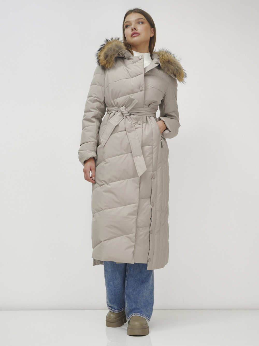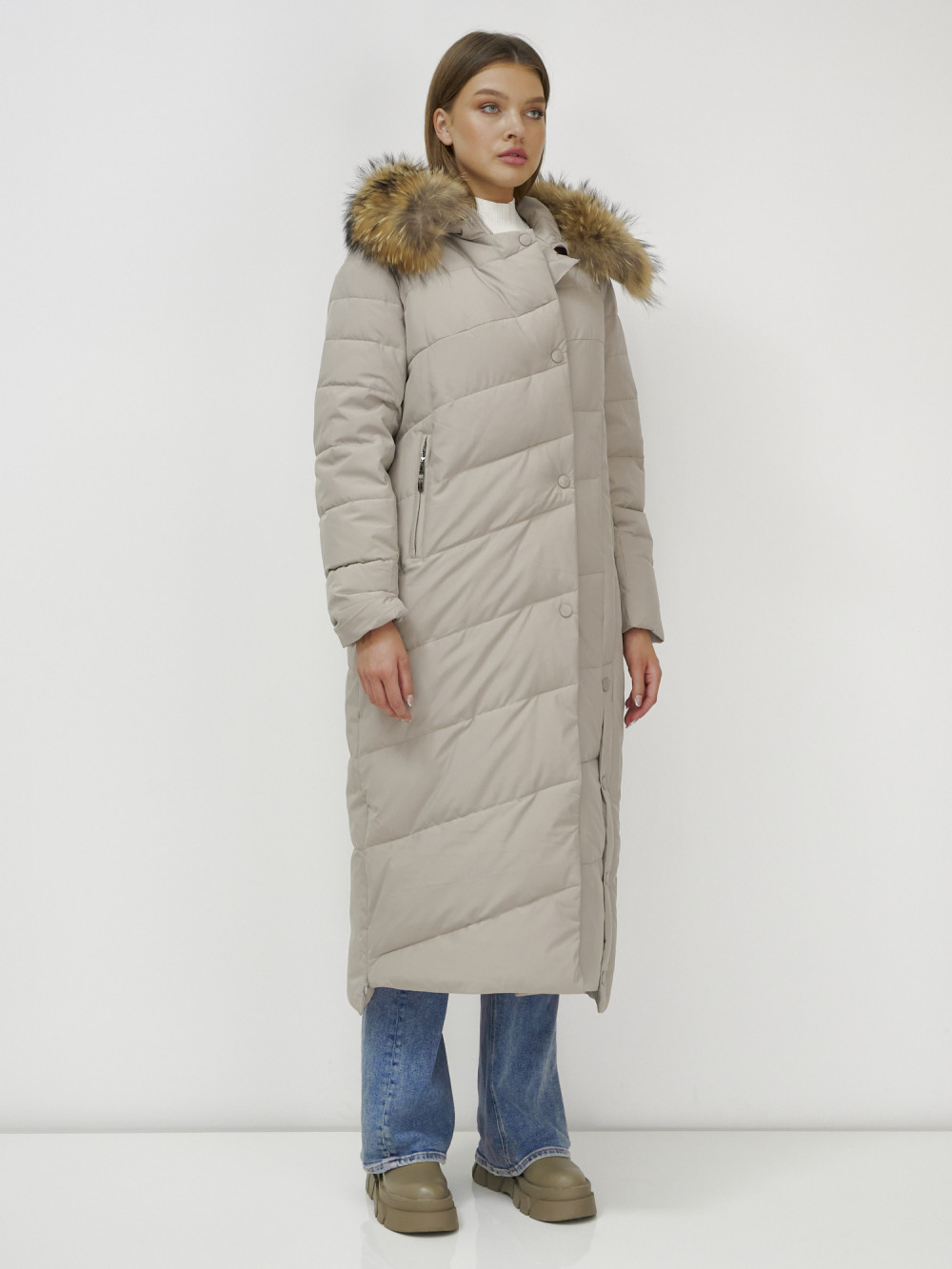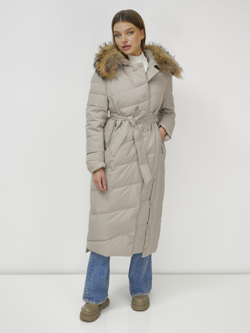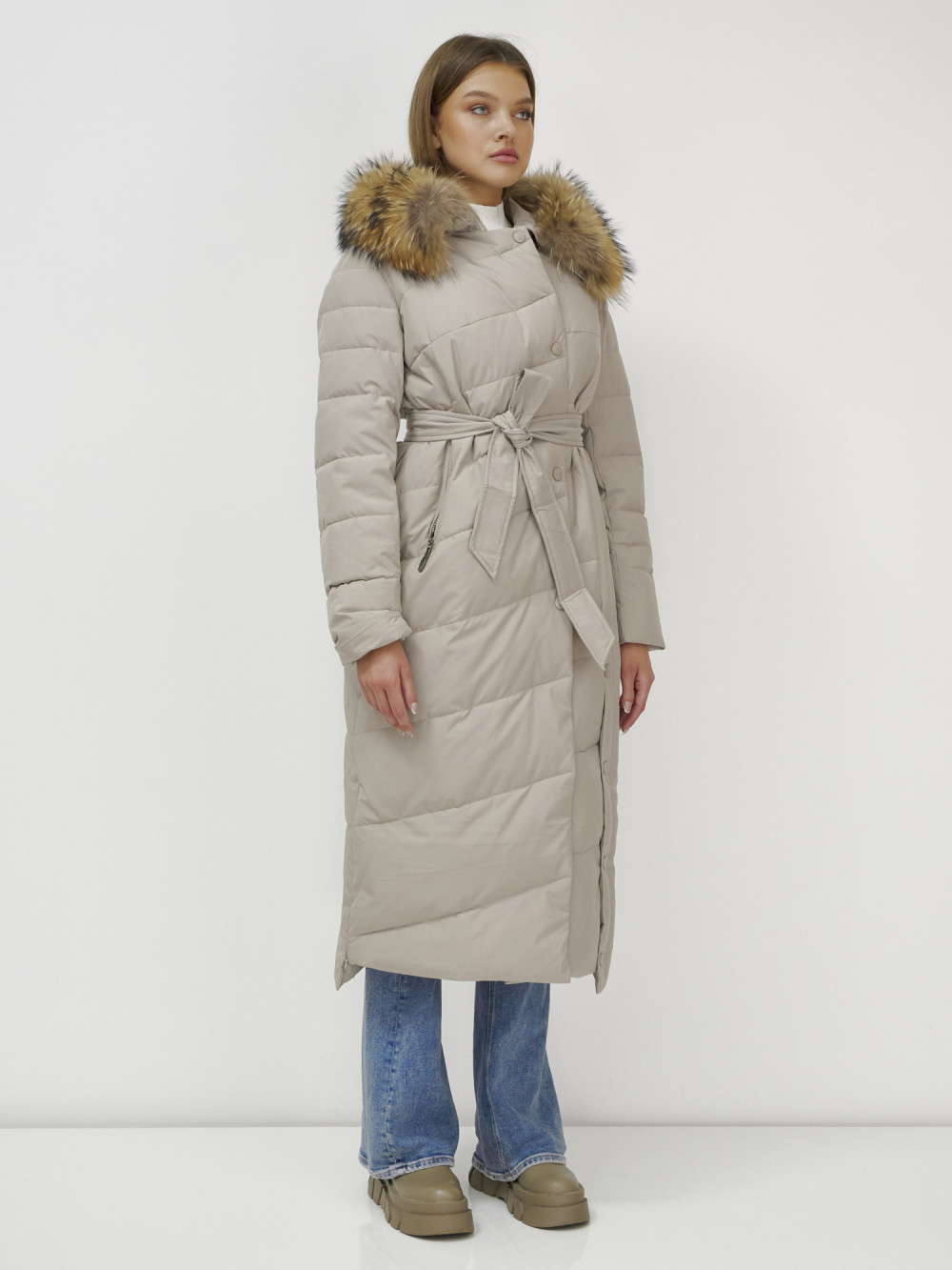 Женское зимнее пальто с натуральным мехом премиум-класса.