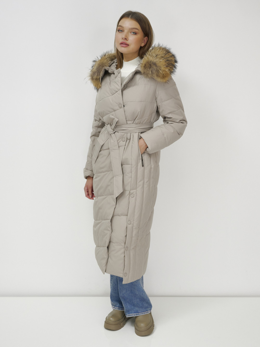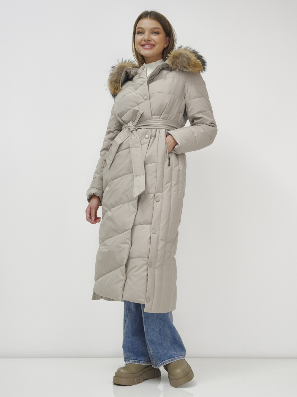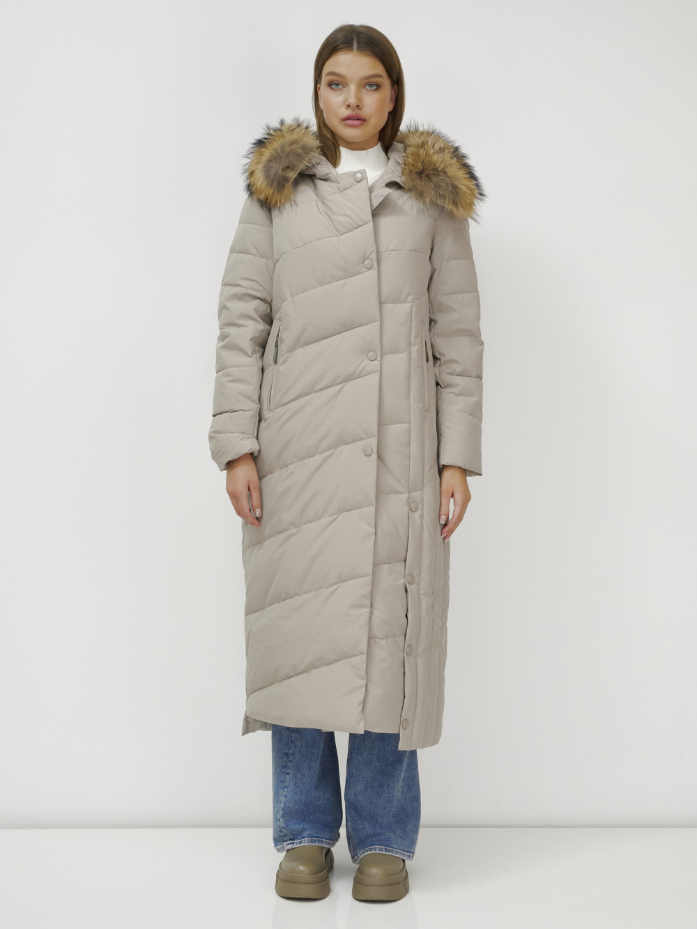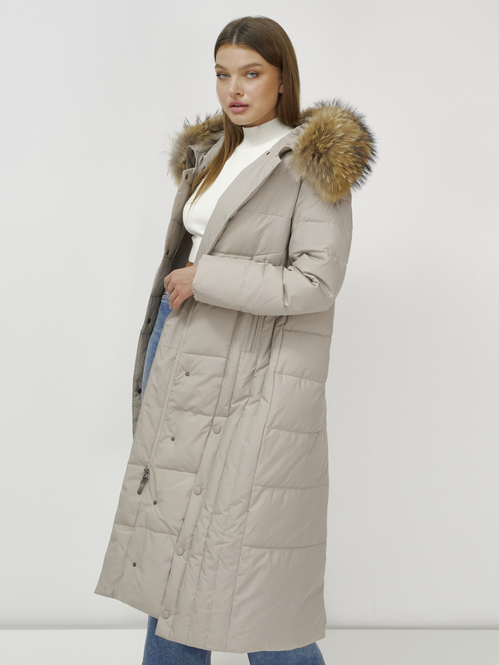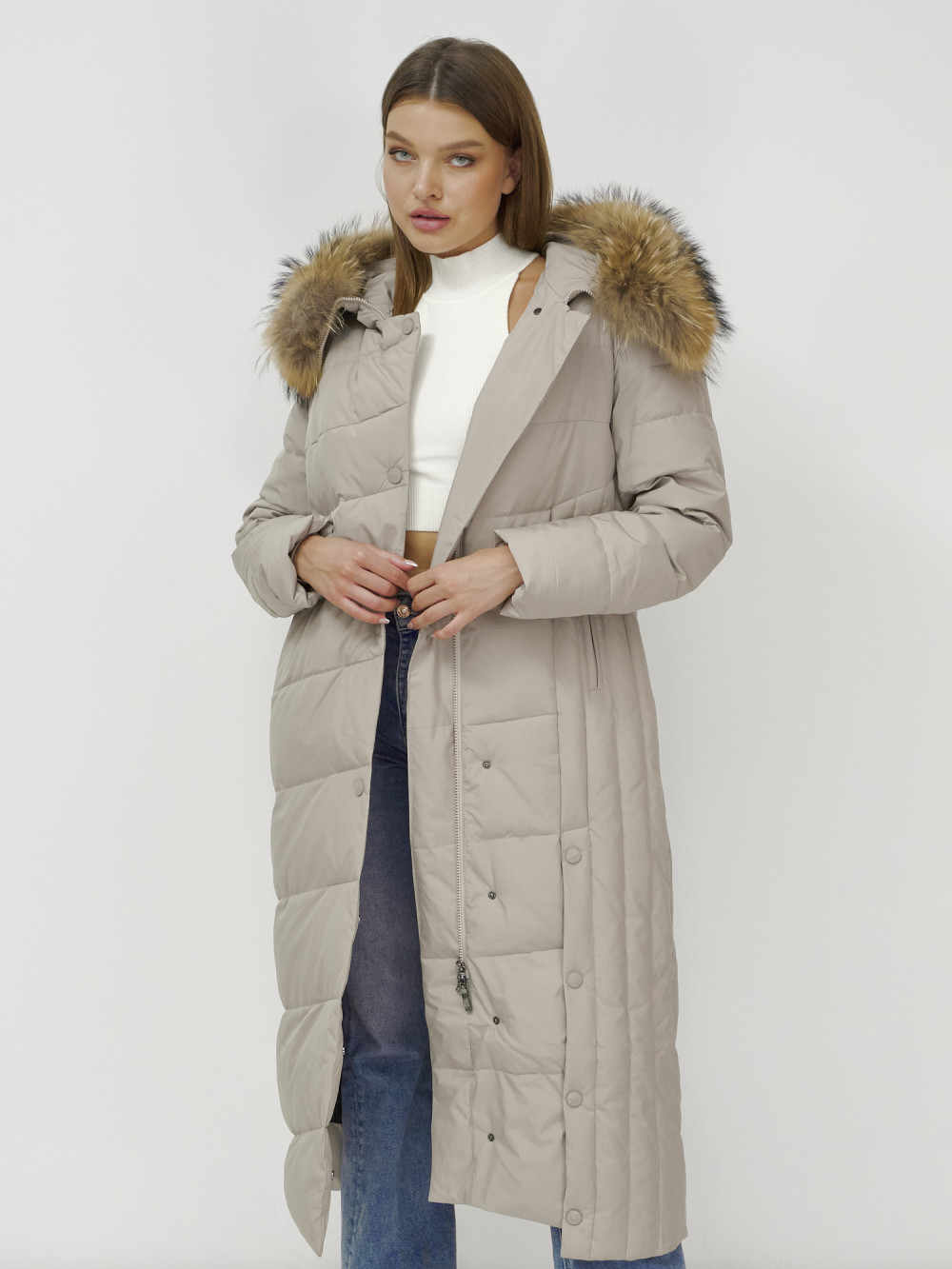 Женское зимнее пальто с натуральным мехом премиум-класса.
