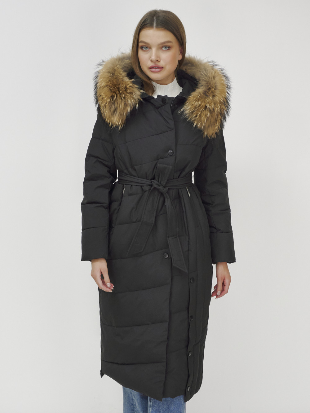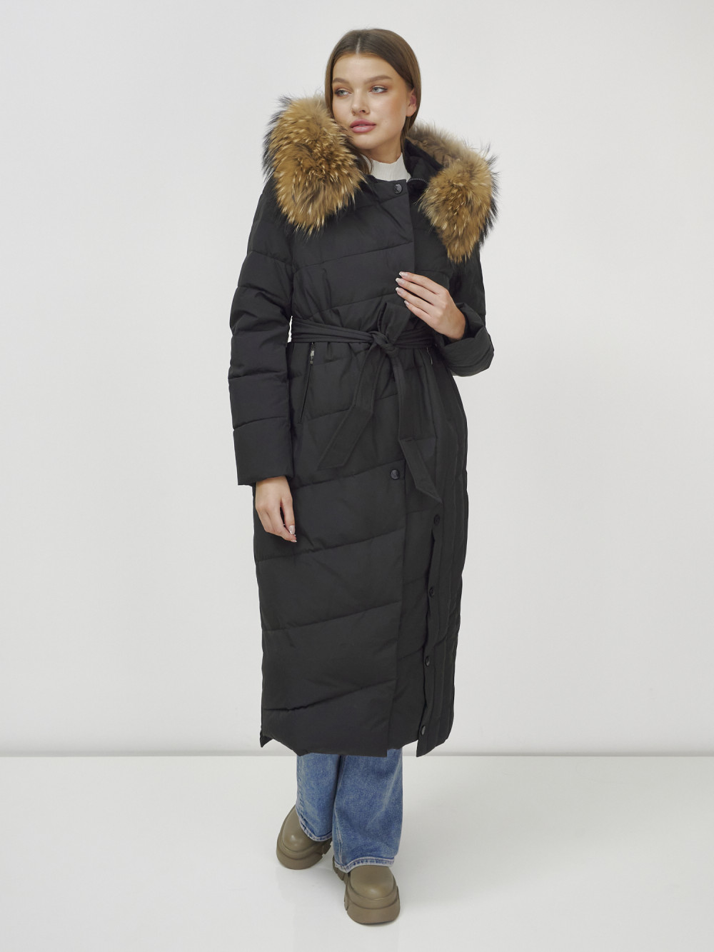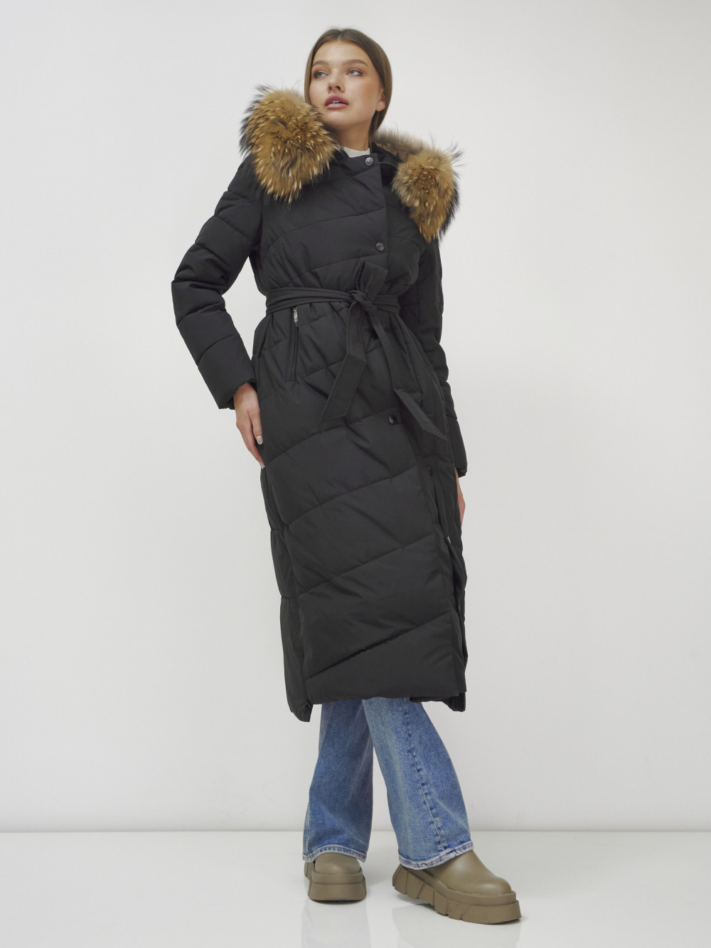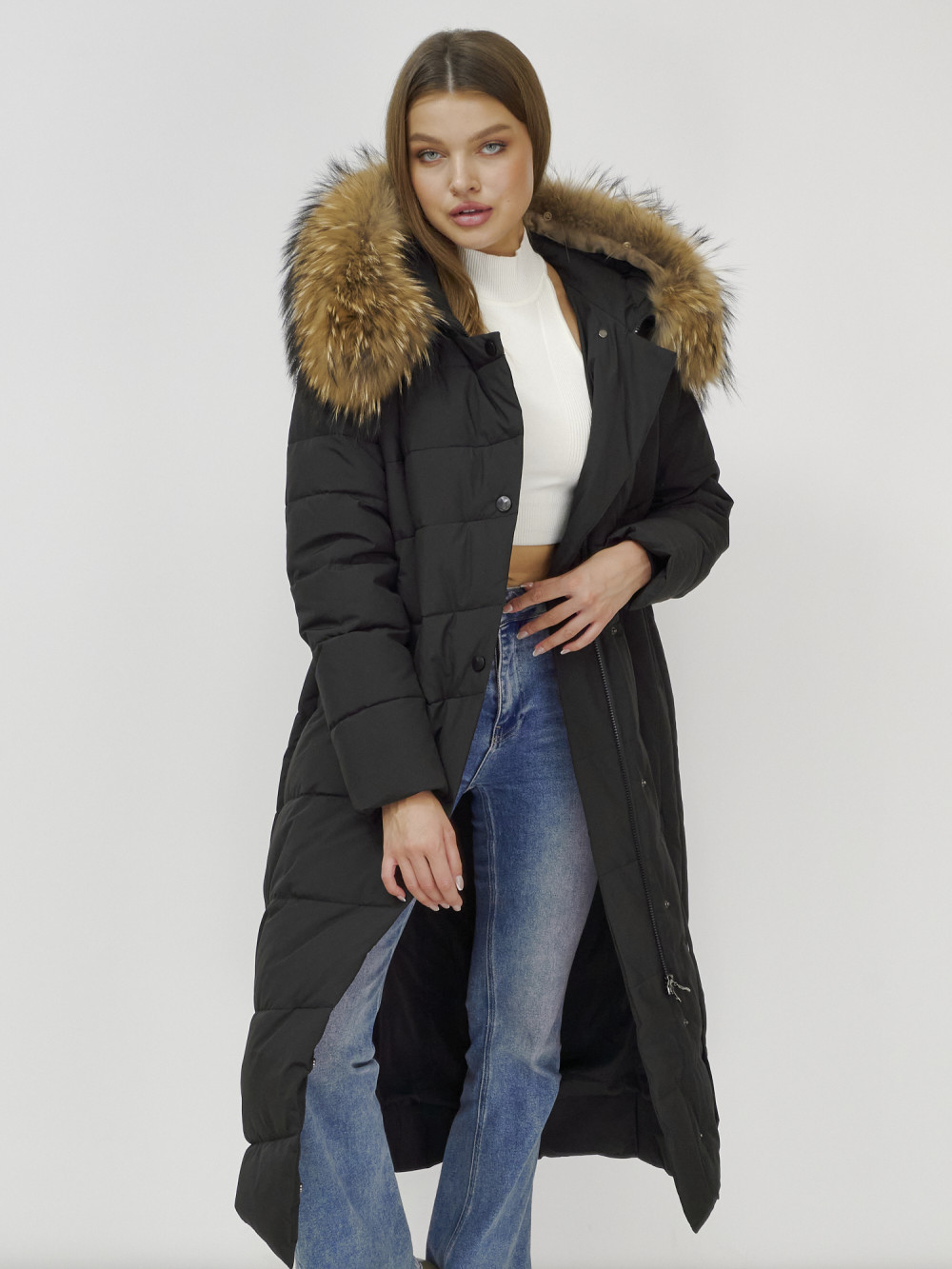 Женское зимнее пальто с натуральным мехом премиум-класса.
