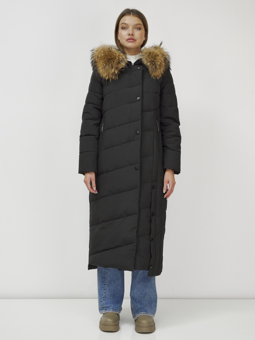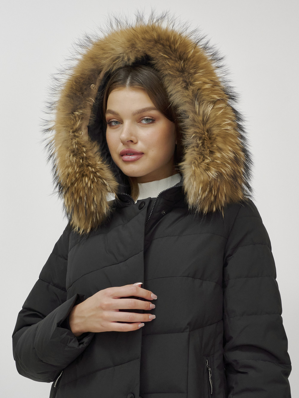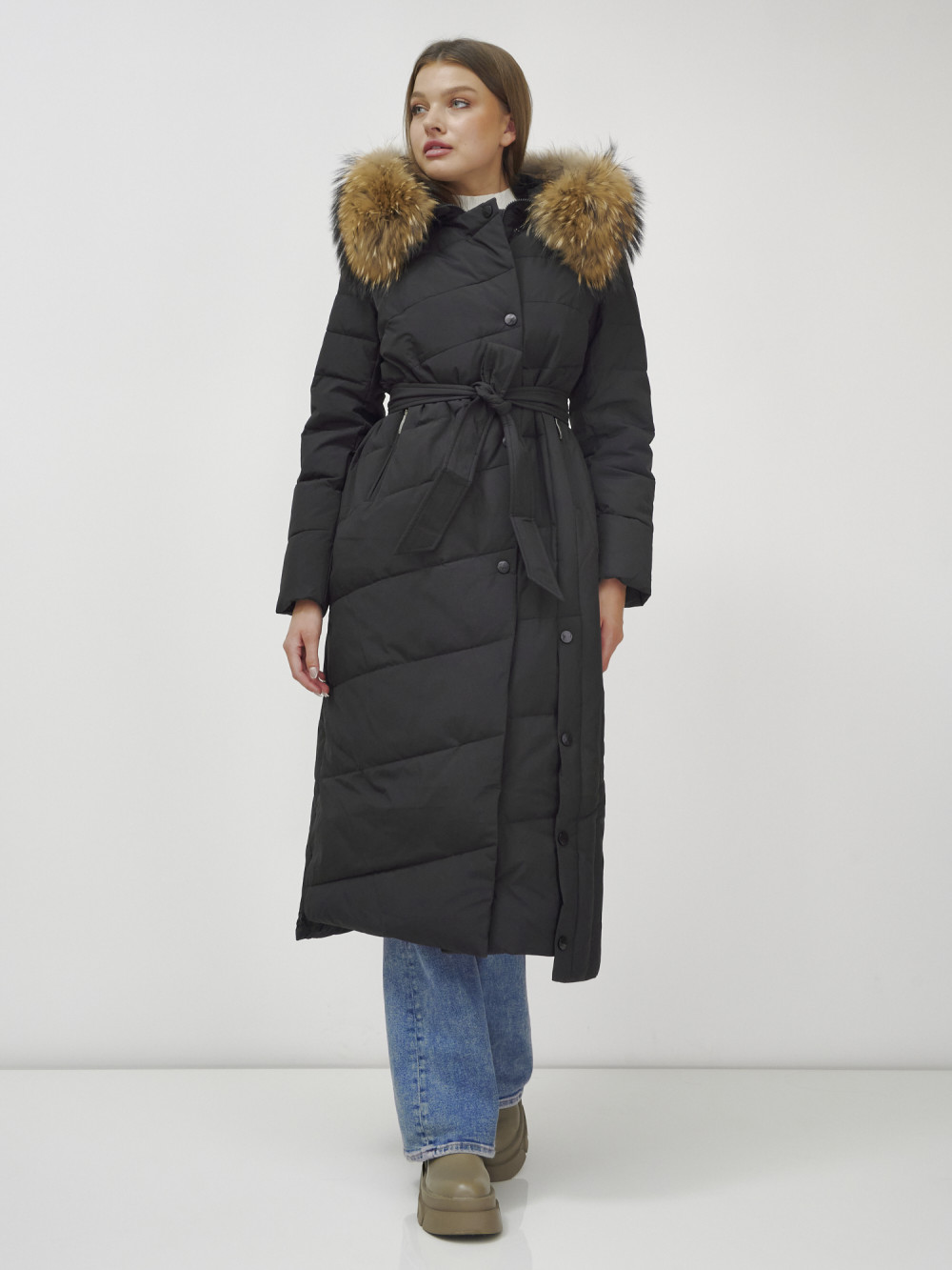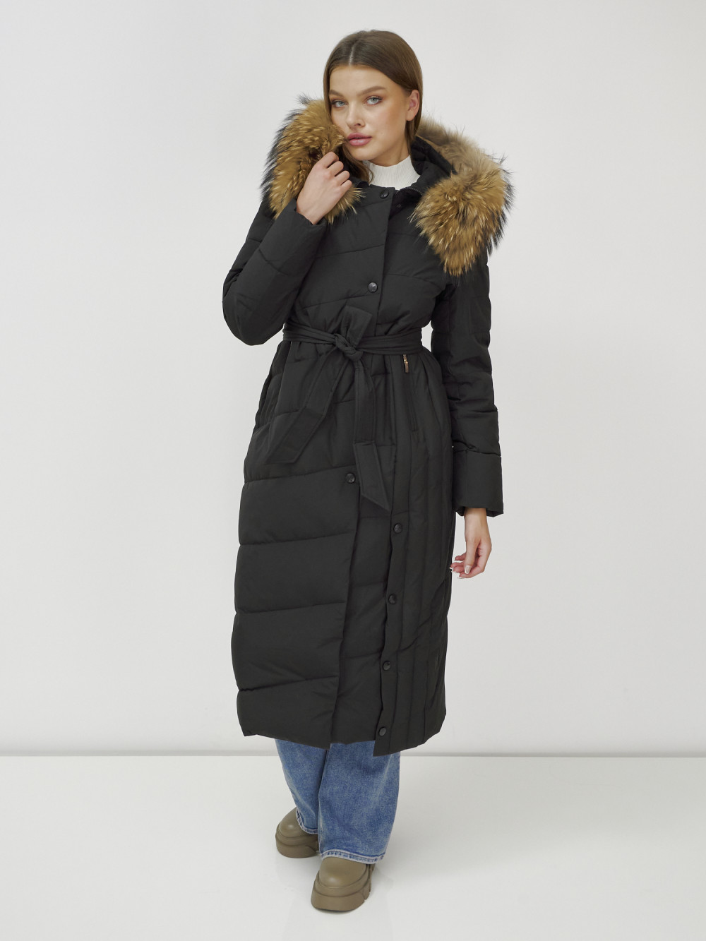 Женское зимнее пальто с натуральным мехом премиум-класса.