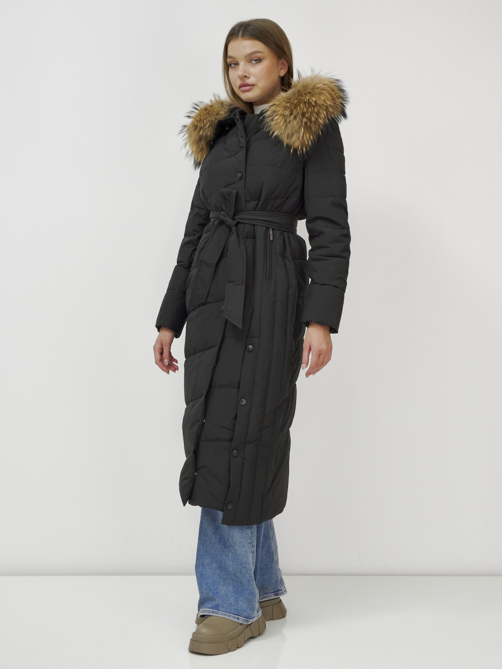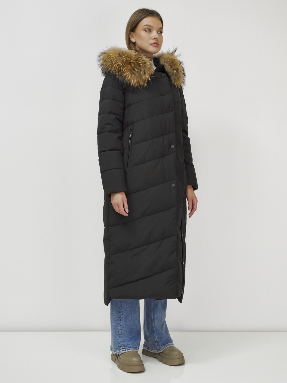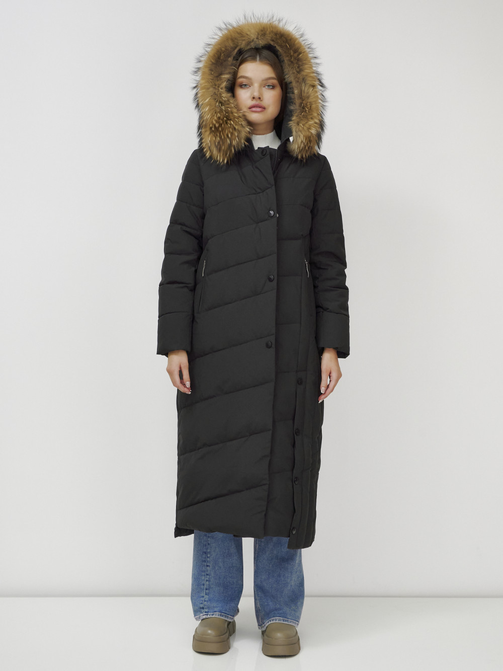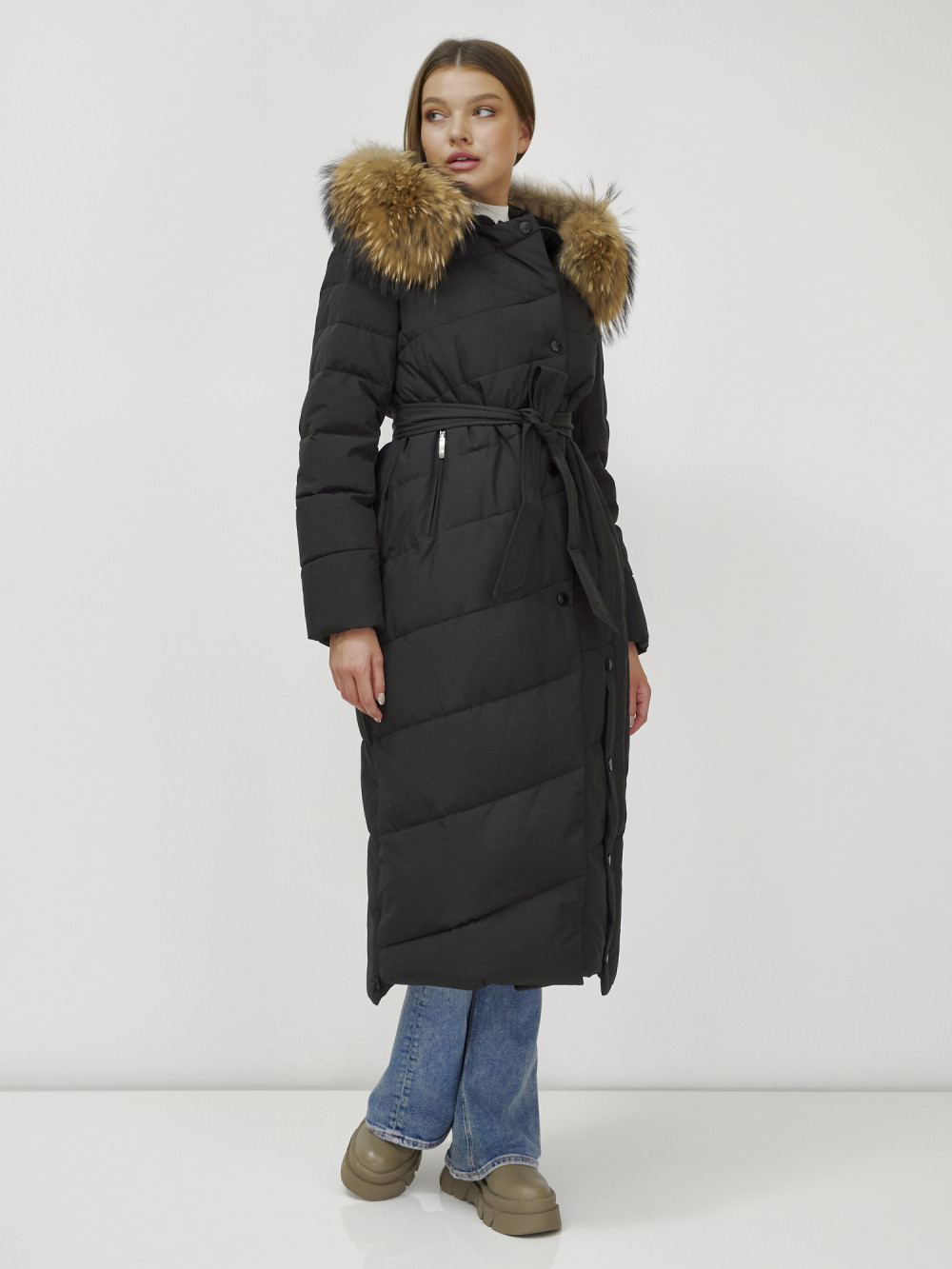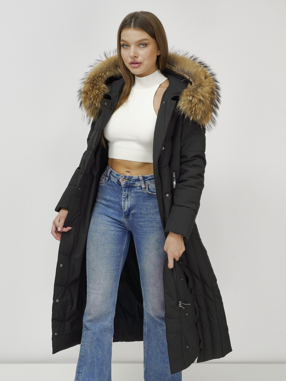 Женское зимнее пальто с натуральным мехом премиум-класса.
