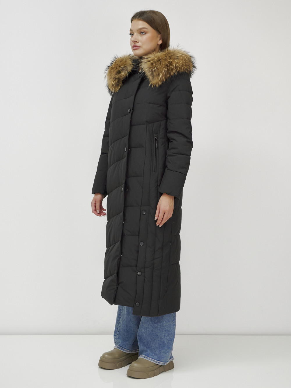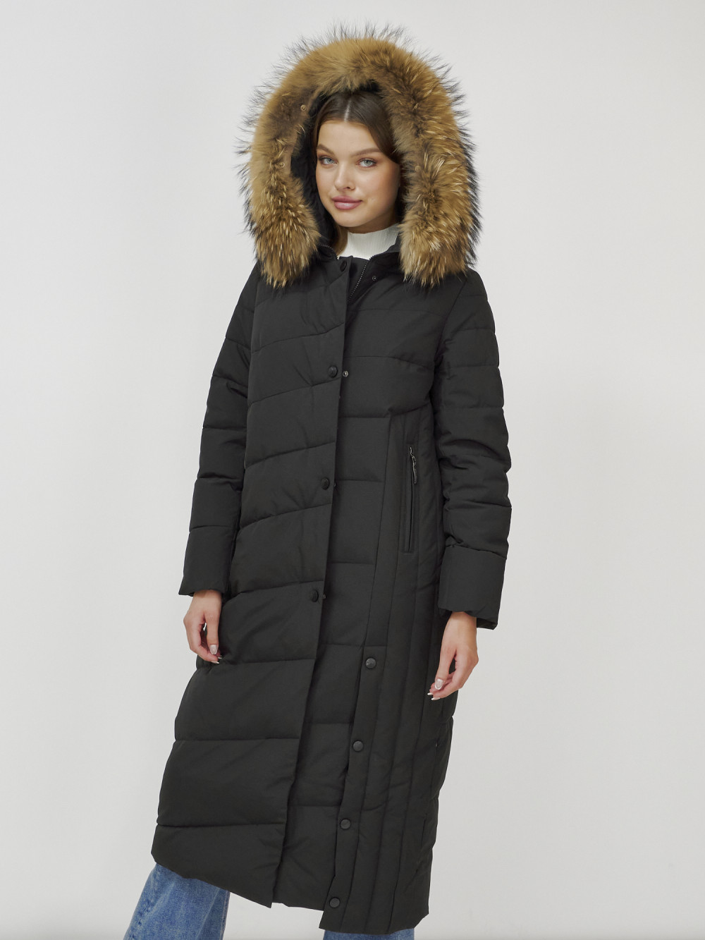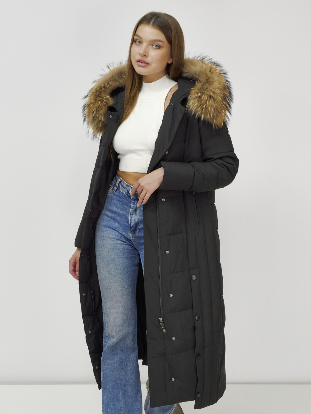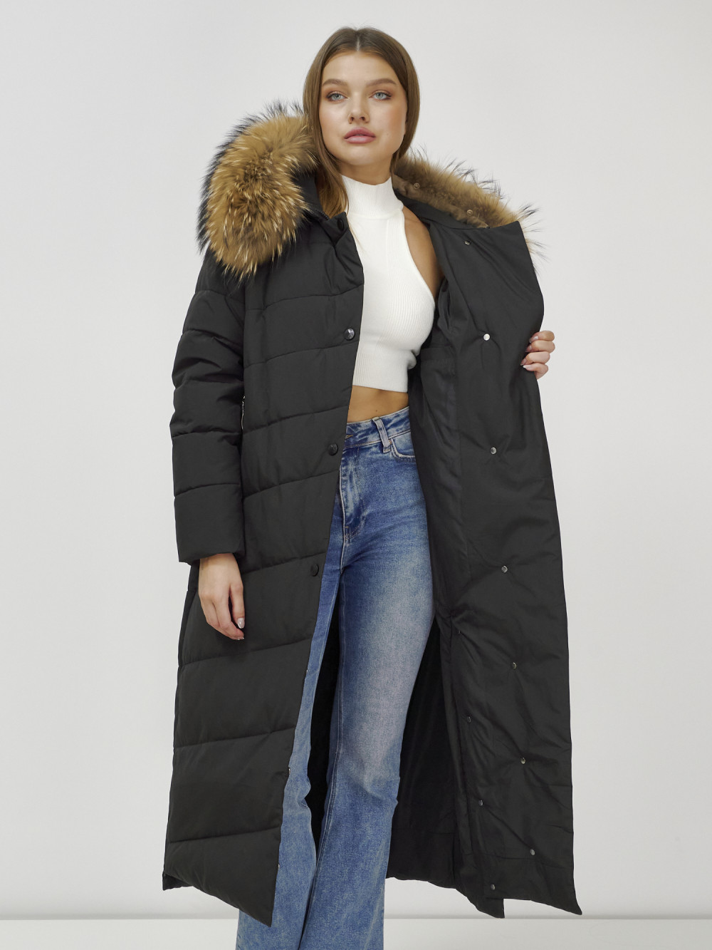 Женское зимнее пальто с натуральным мехом премиум-класса.