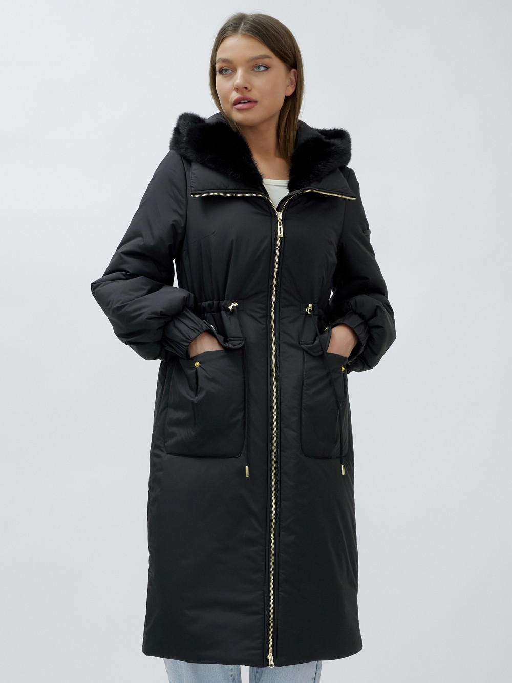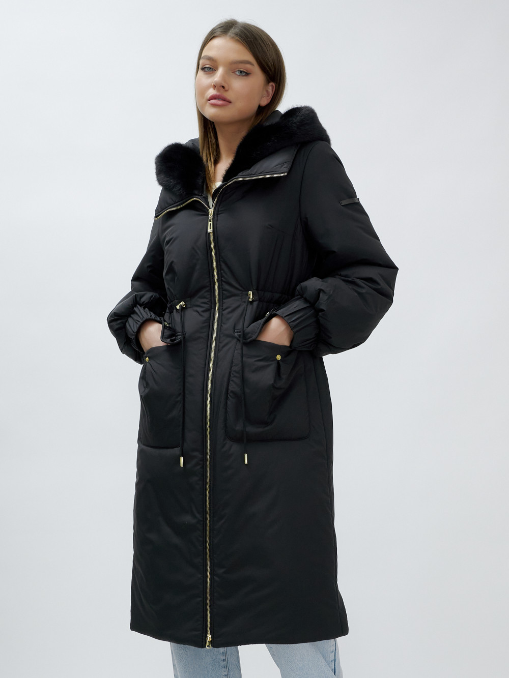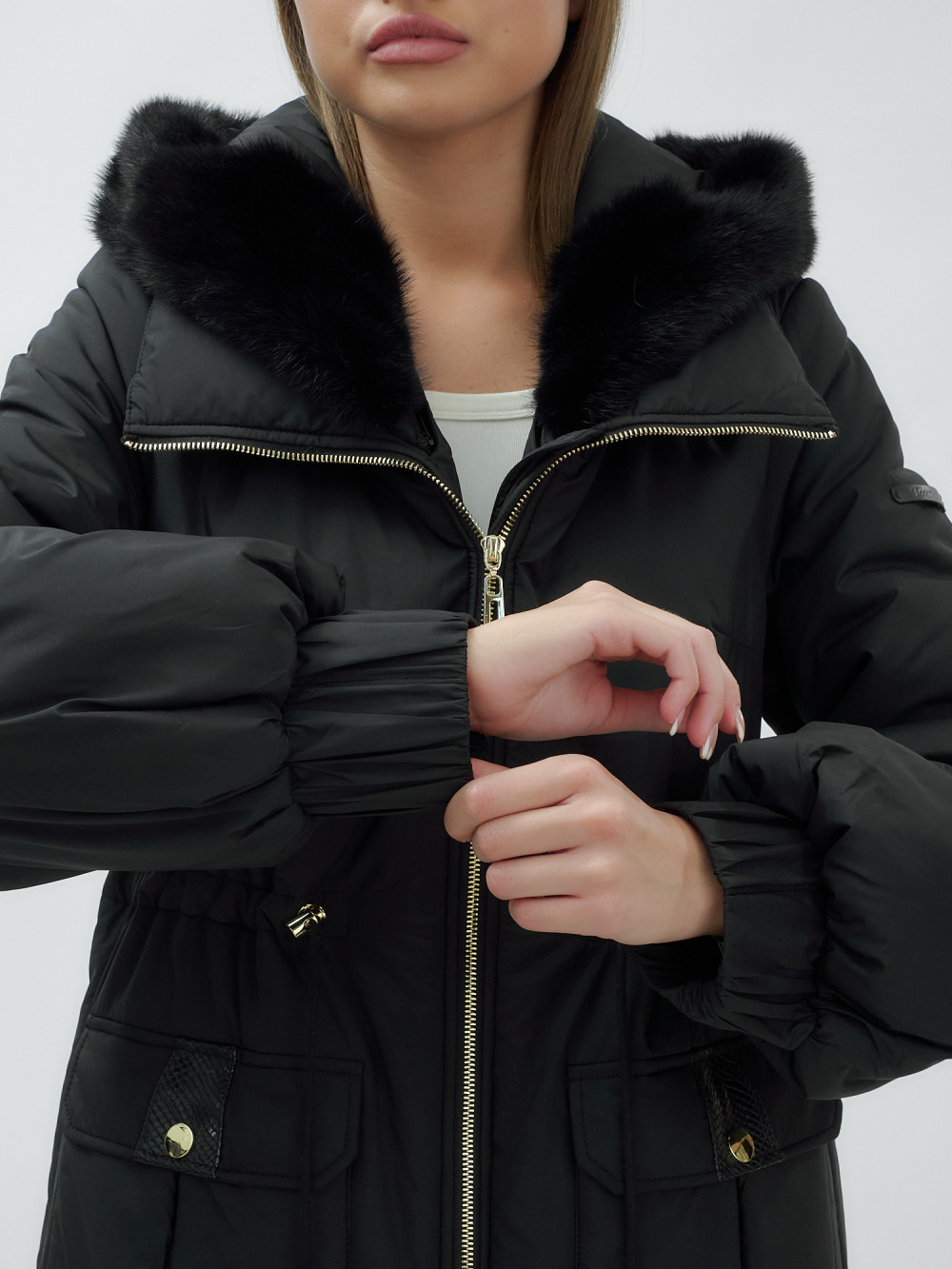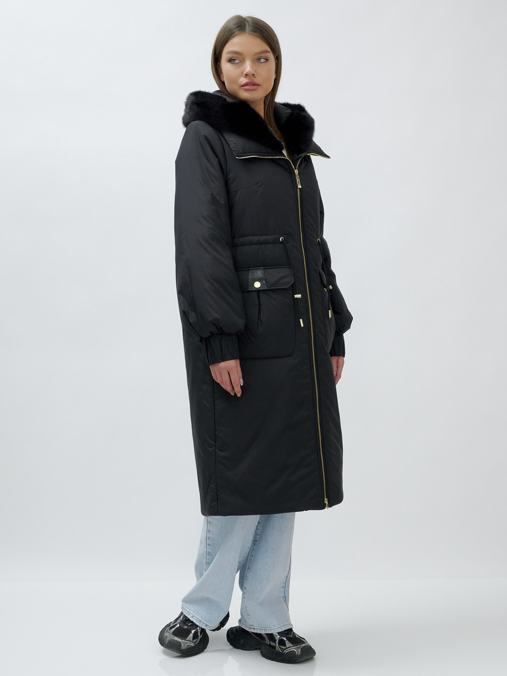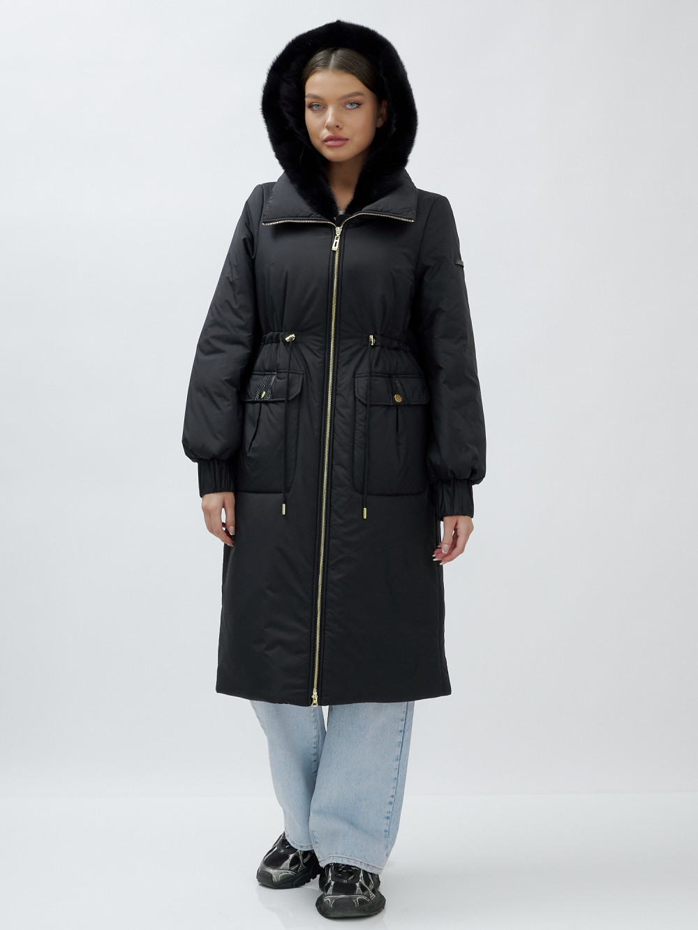 Пальто зимнее женское стильное с норкой люкс класса черного цвета 8628Ch — TORINNI