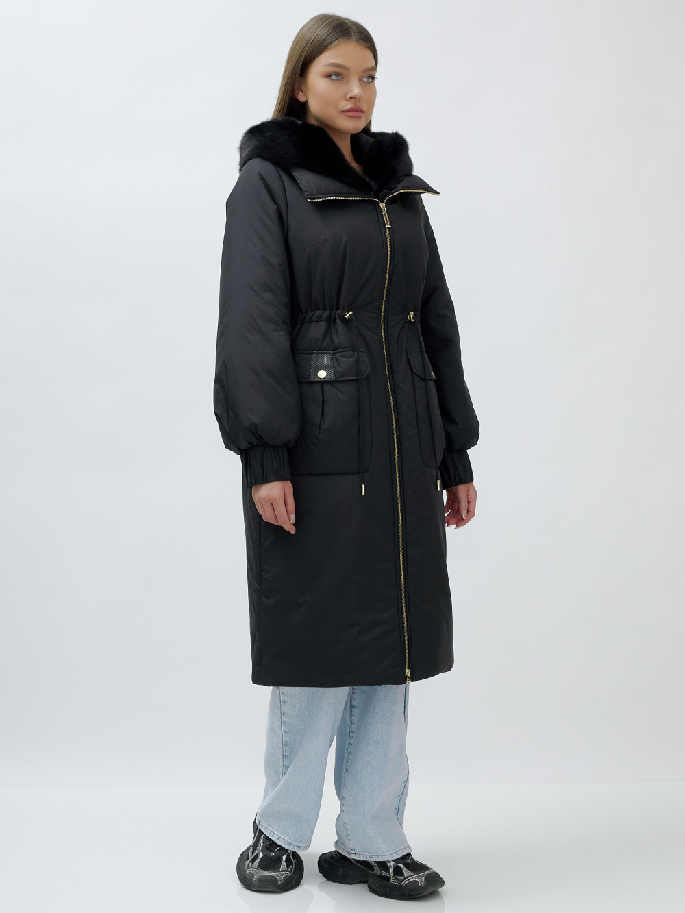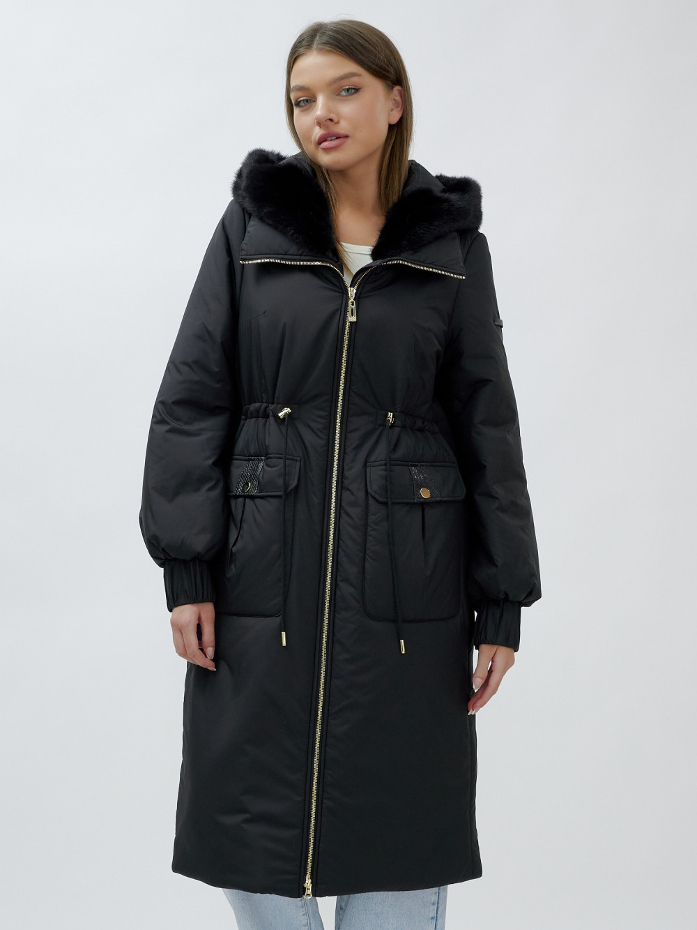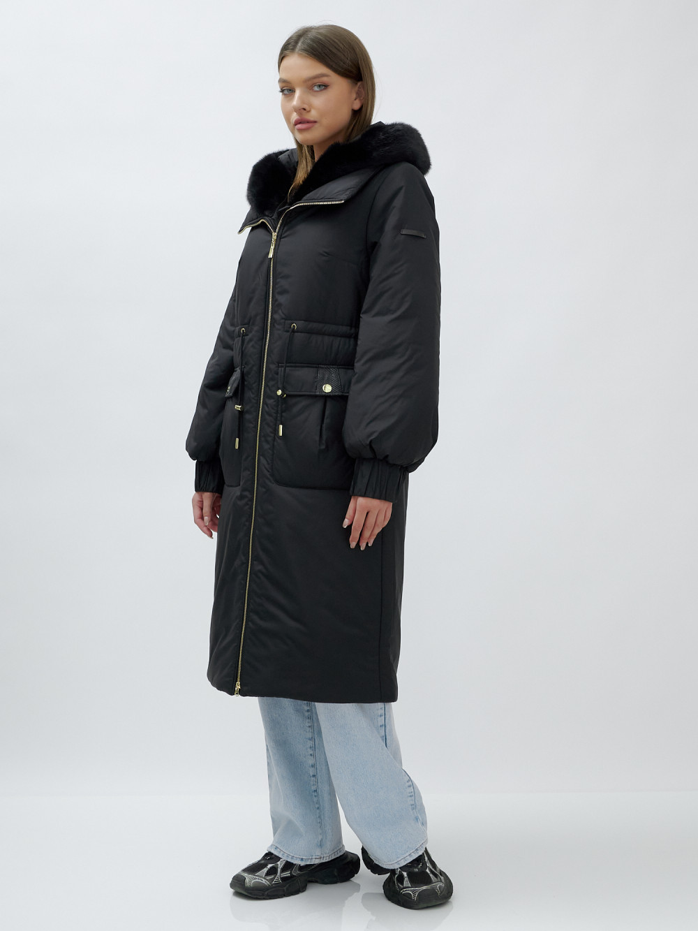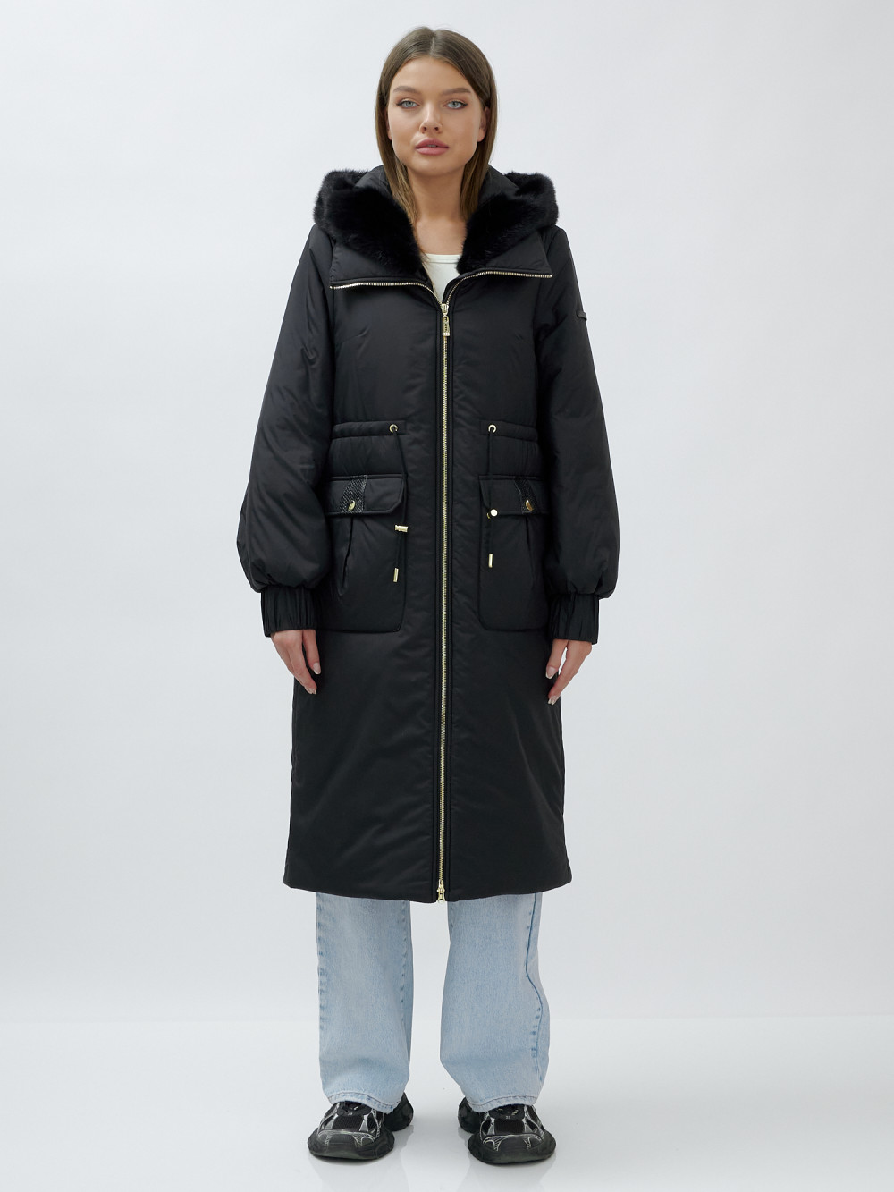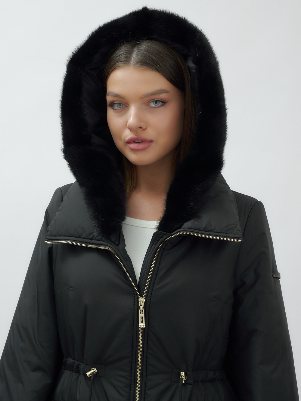 Пальто зимнее женское стильное с норкой люкс класса черного цвета 8628Ch — TORINNI