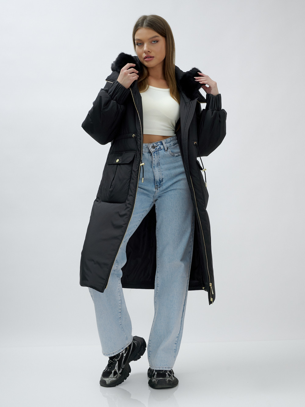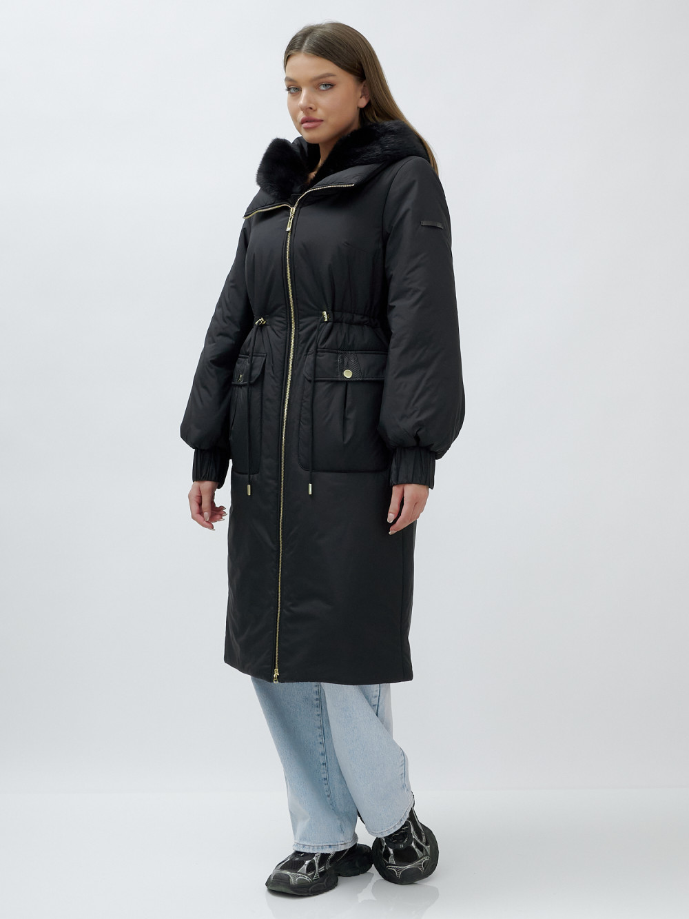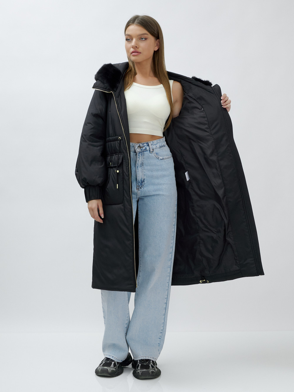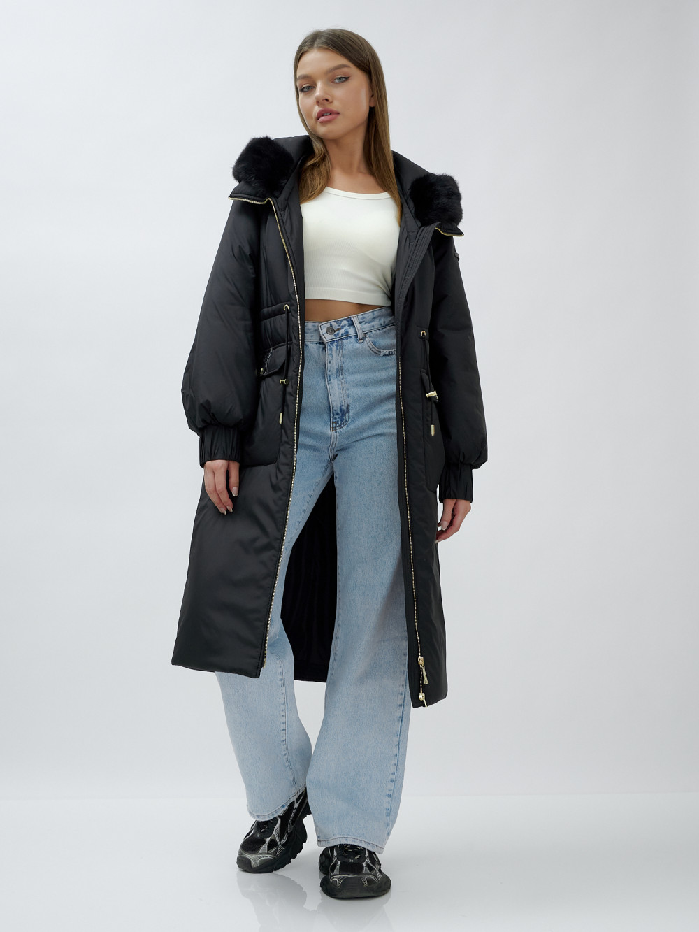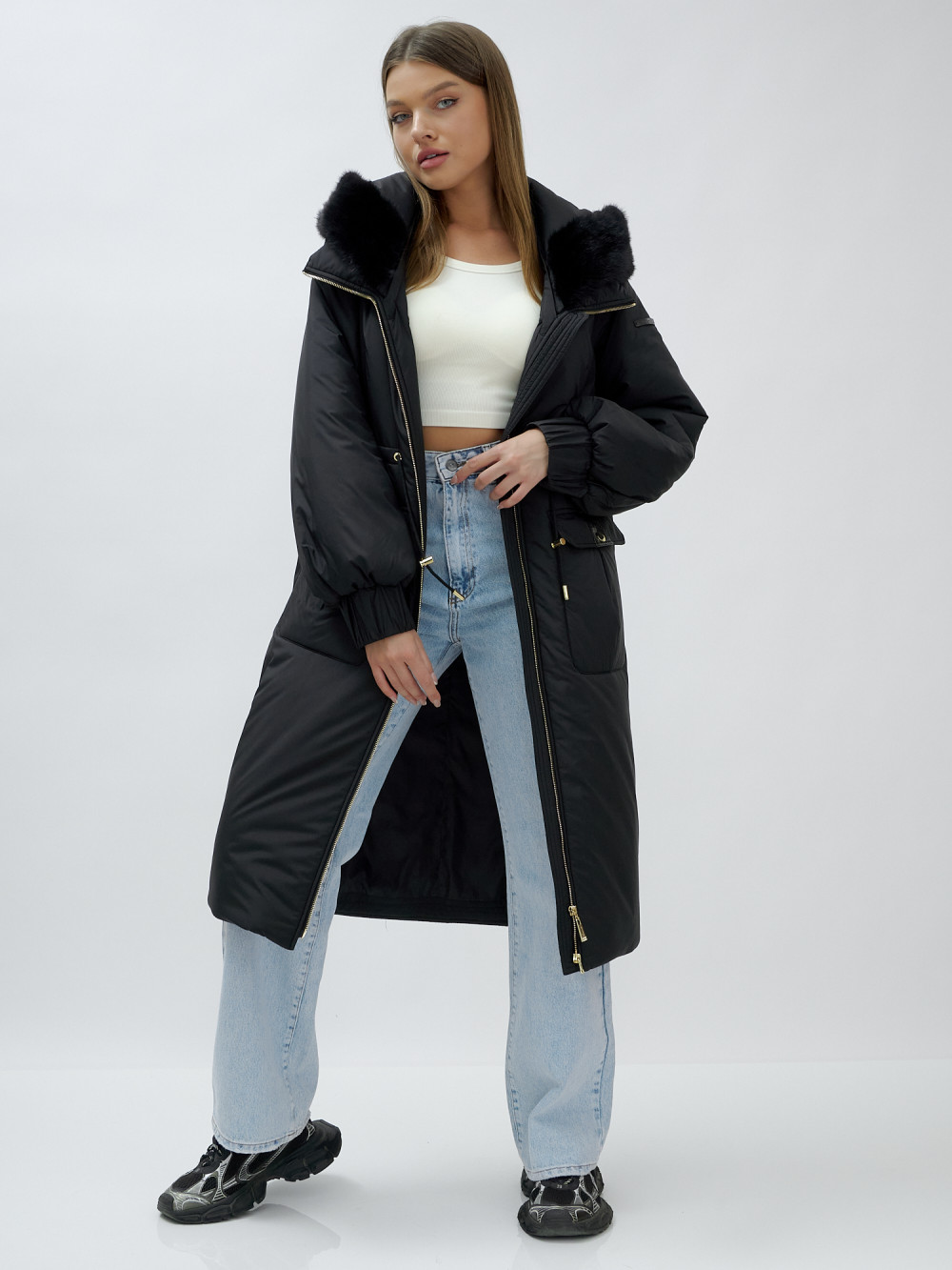 Пальто зимнее женское стильное с норкой люкс класса черного цвета 8628Ch — TORINNI