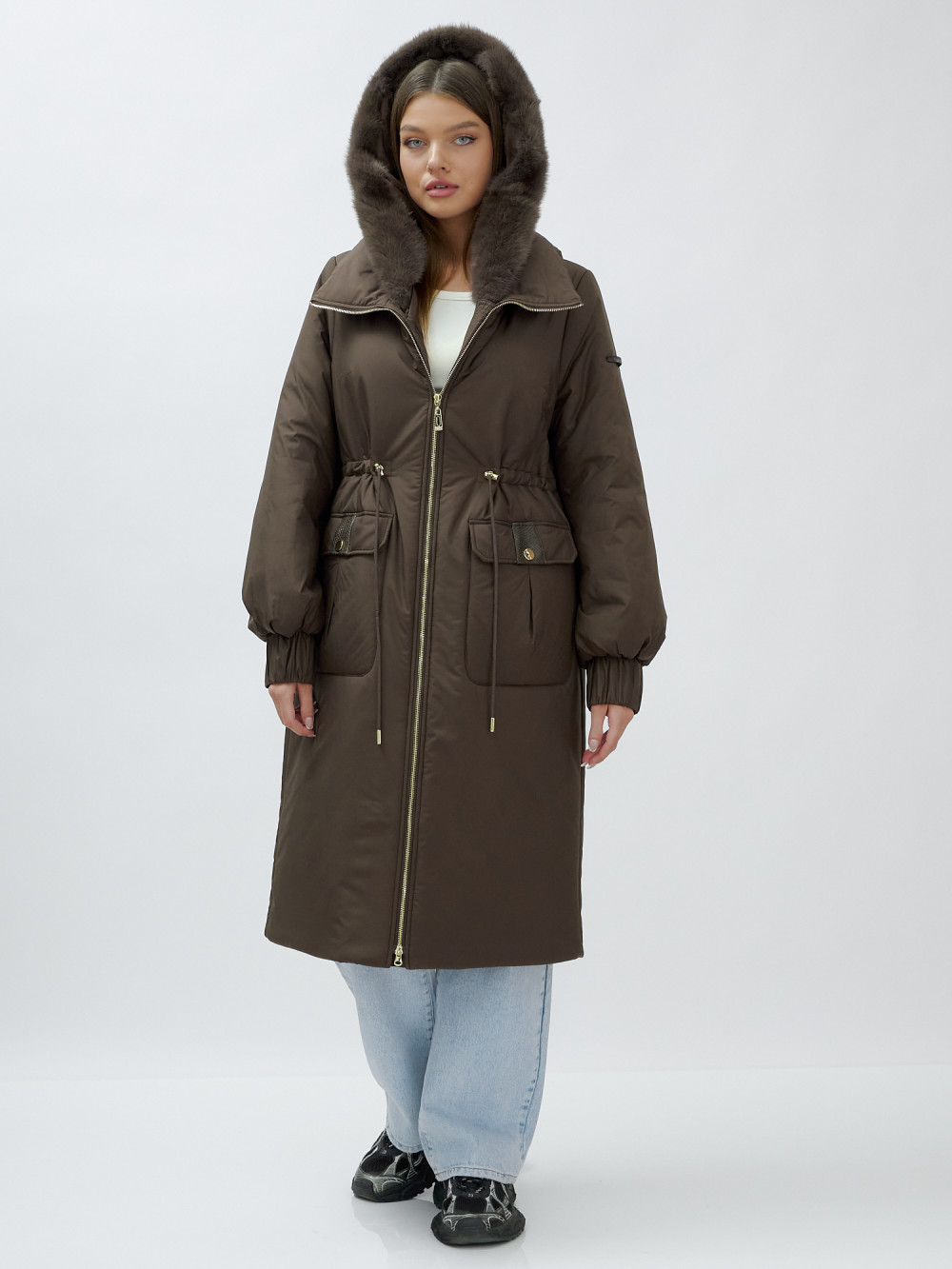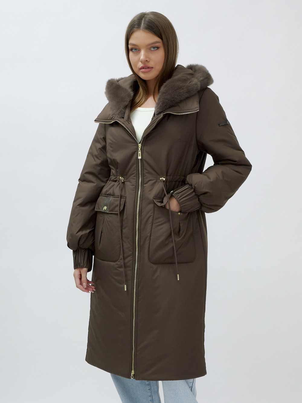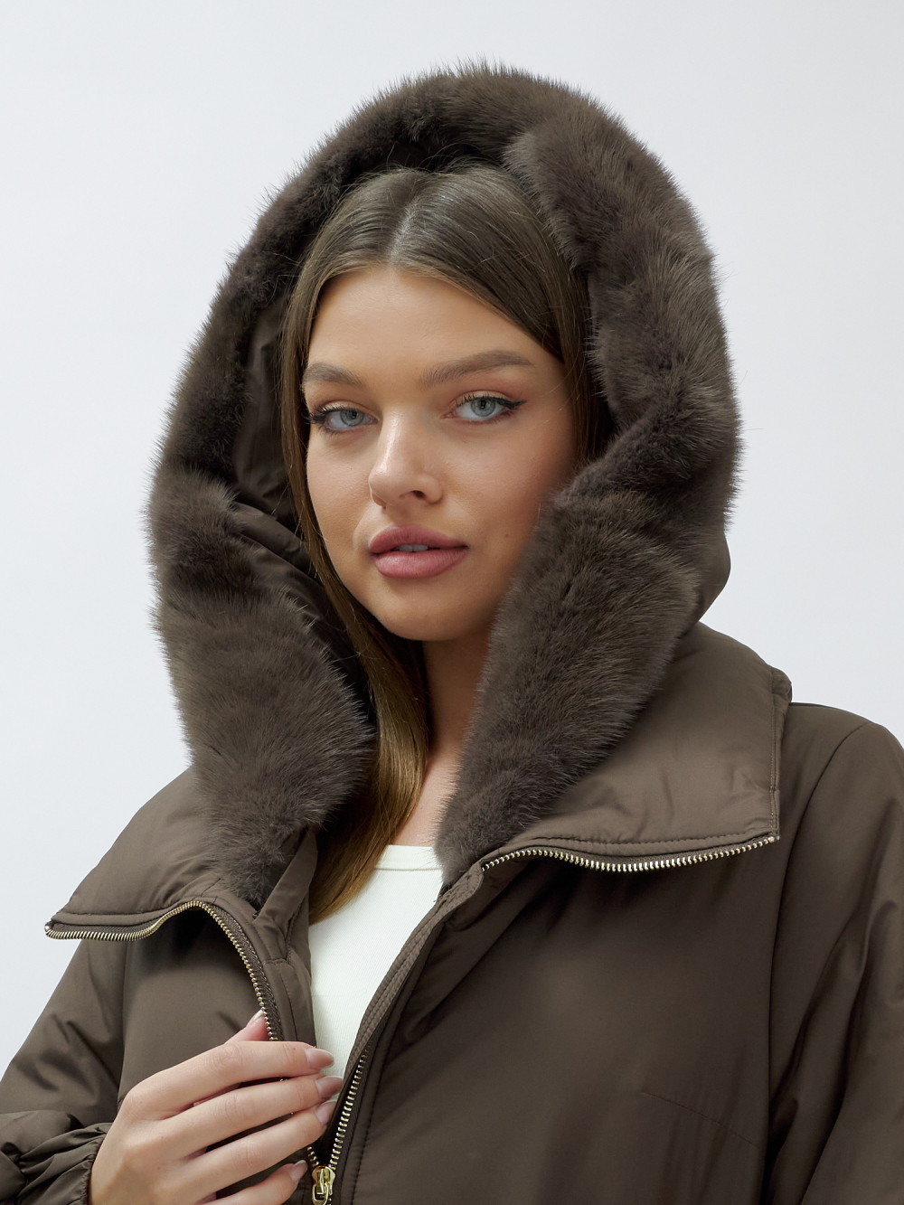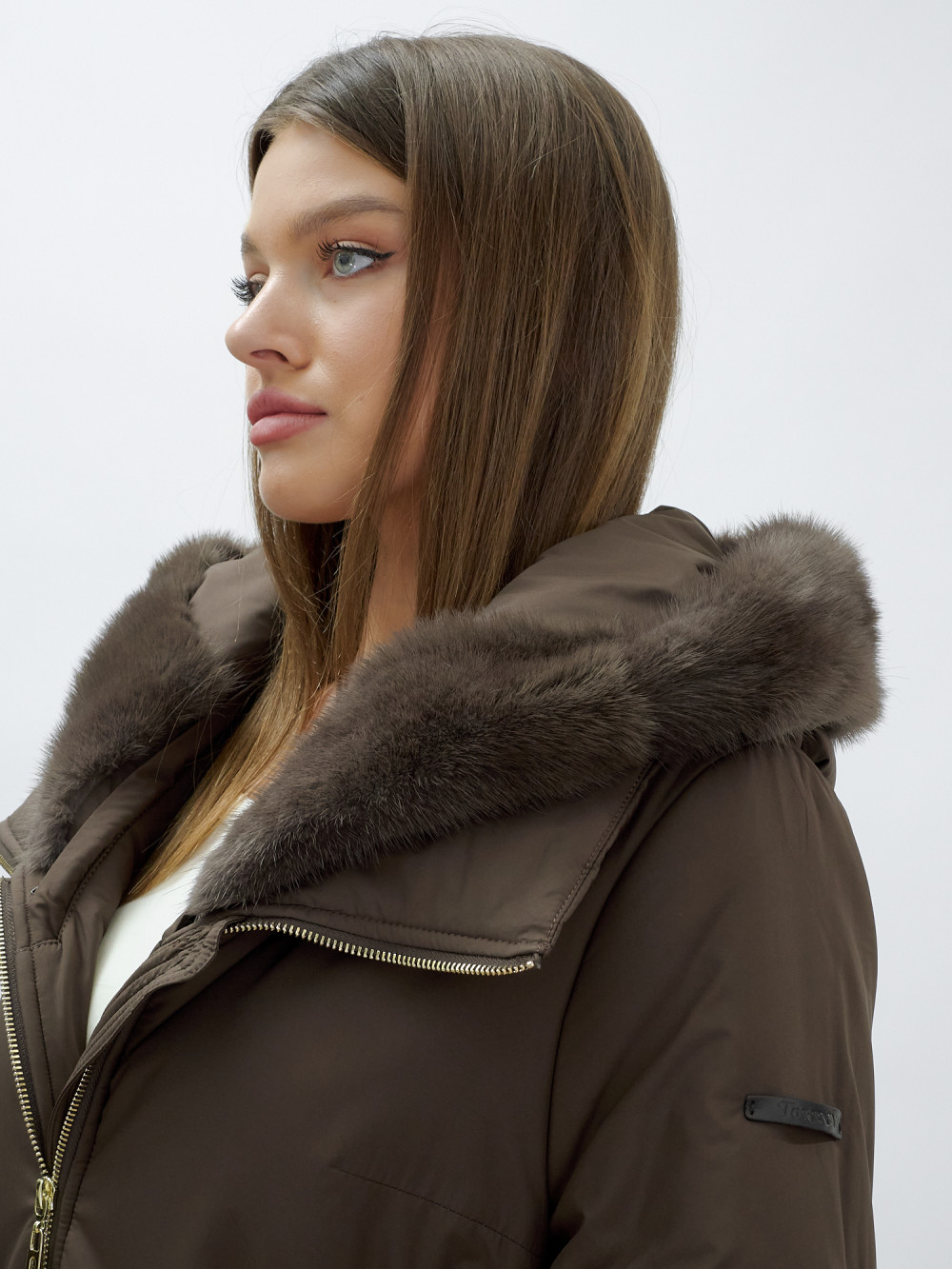 Пальто зимнее женское стильное с норкой люкс класса коричневого цвета 8628K — TORINNI