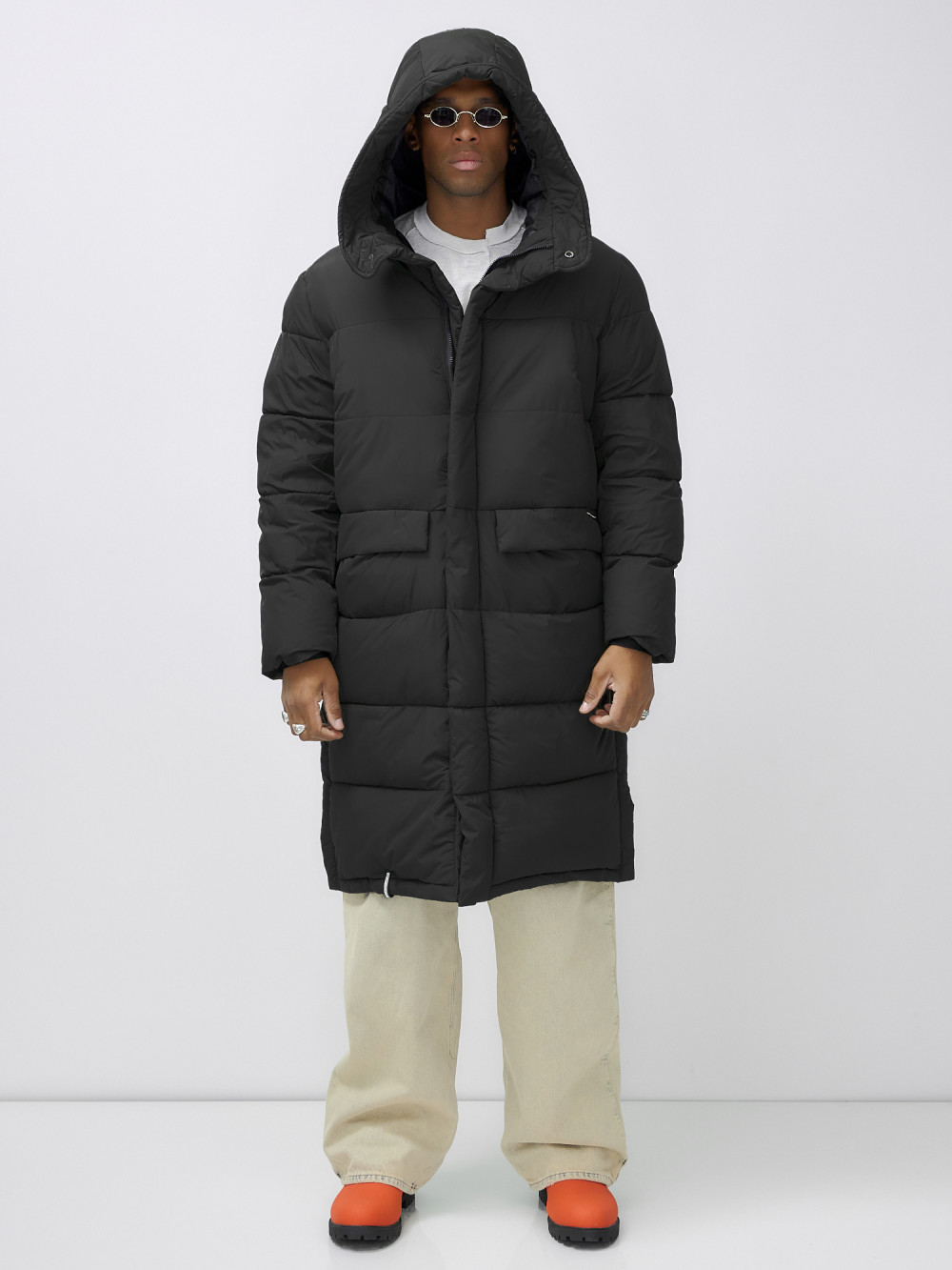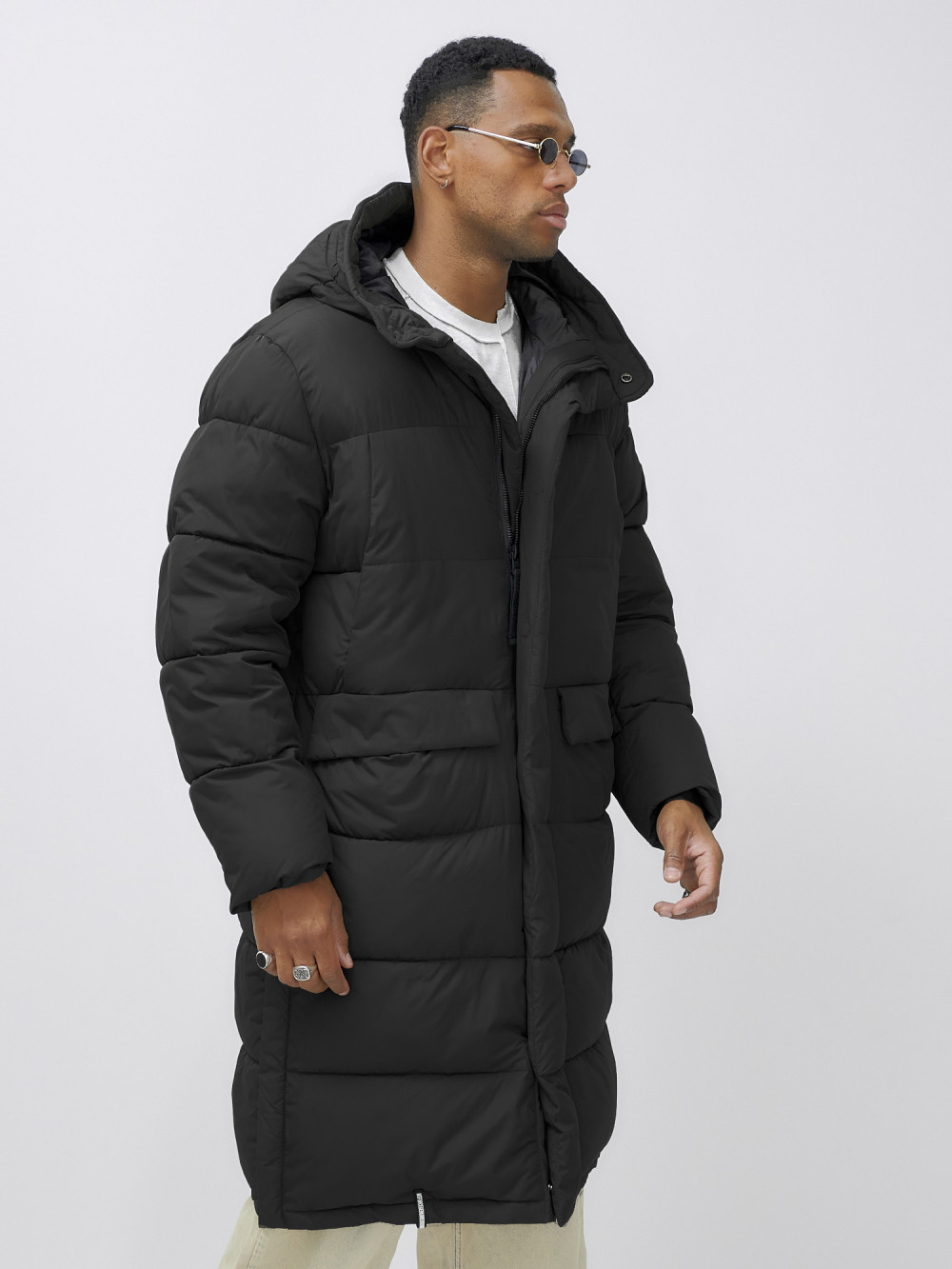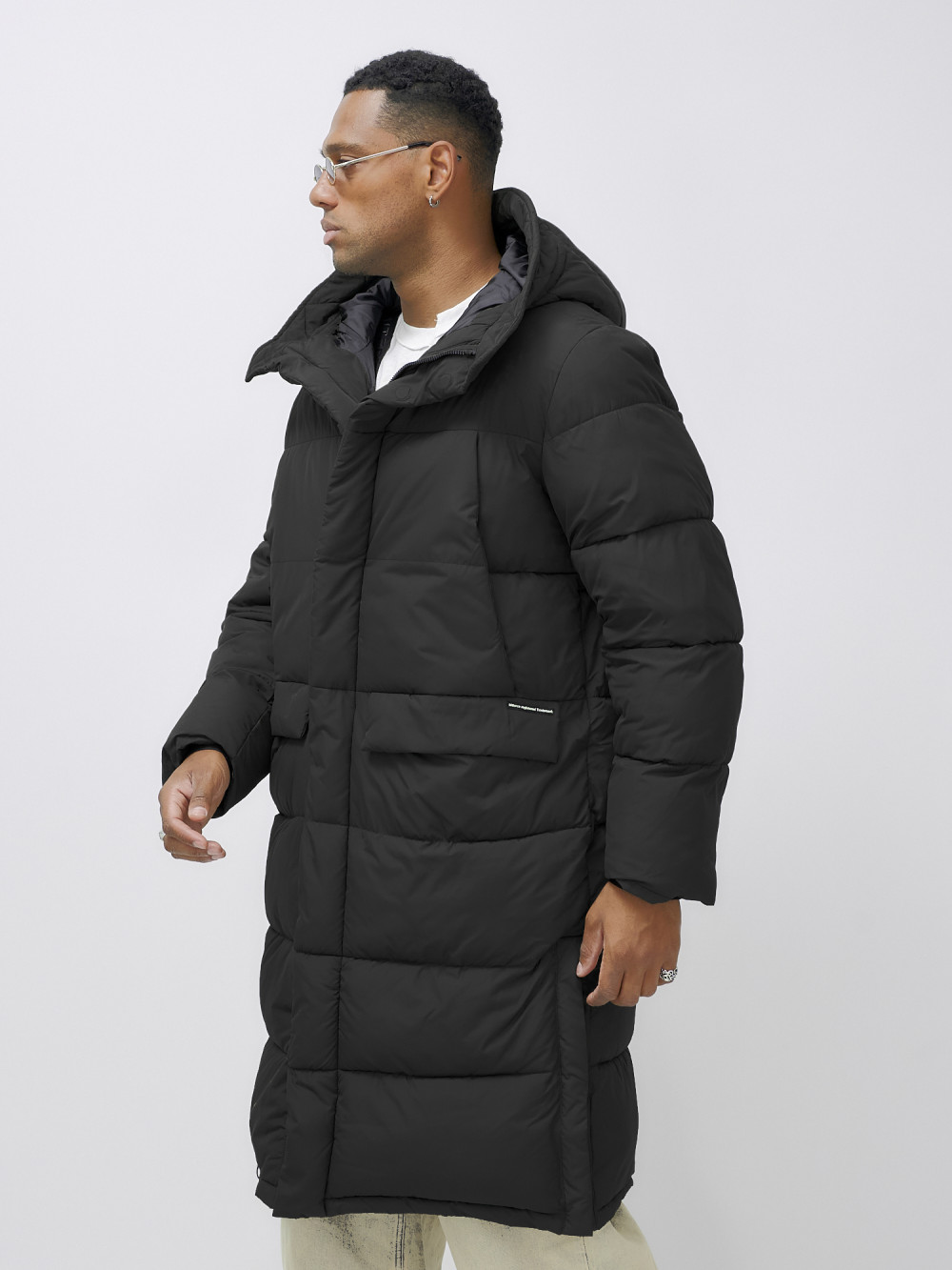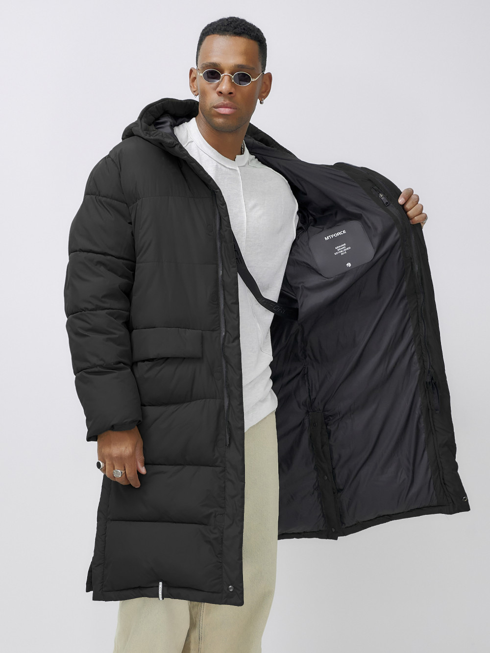Парка MTFORCE мужская зимняя модная удлиненная спортивная черного цвета 2416_1Ch