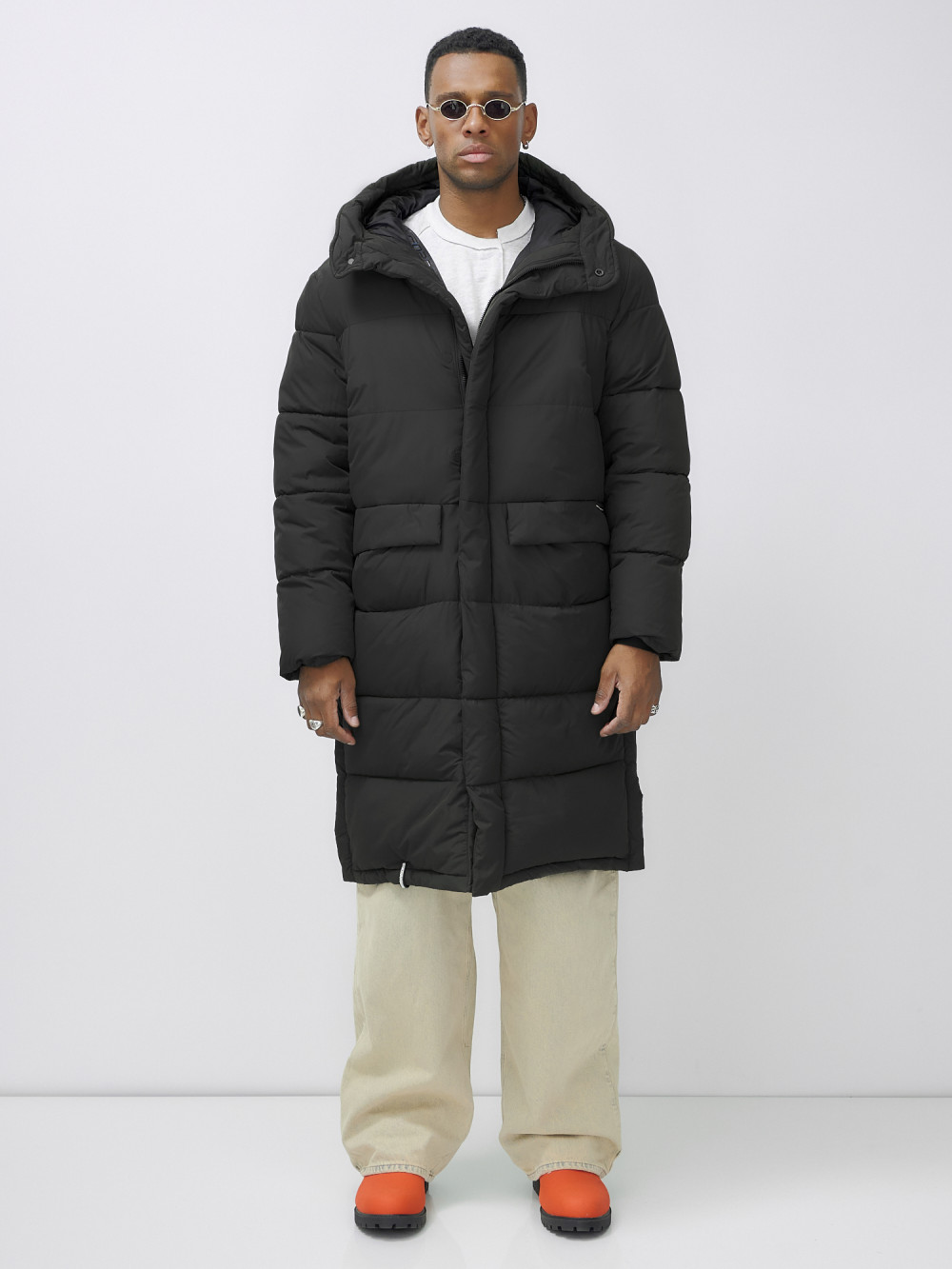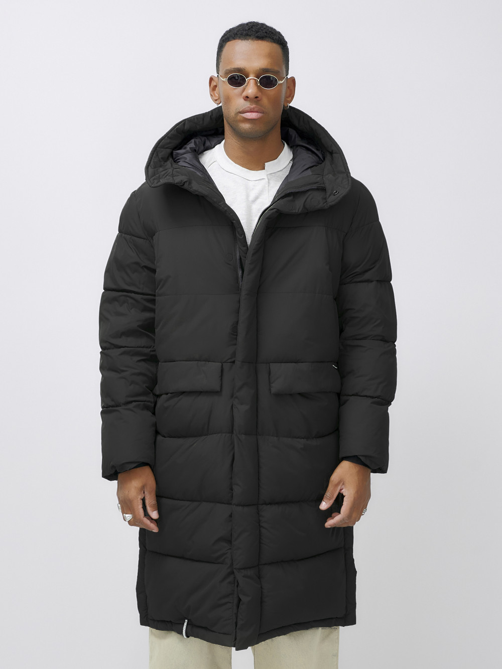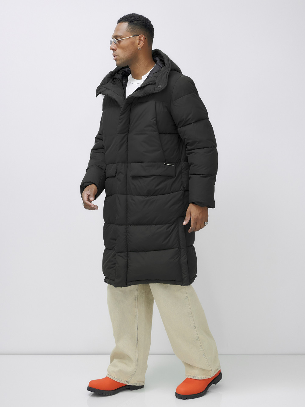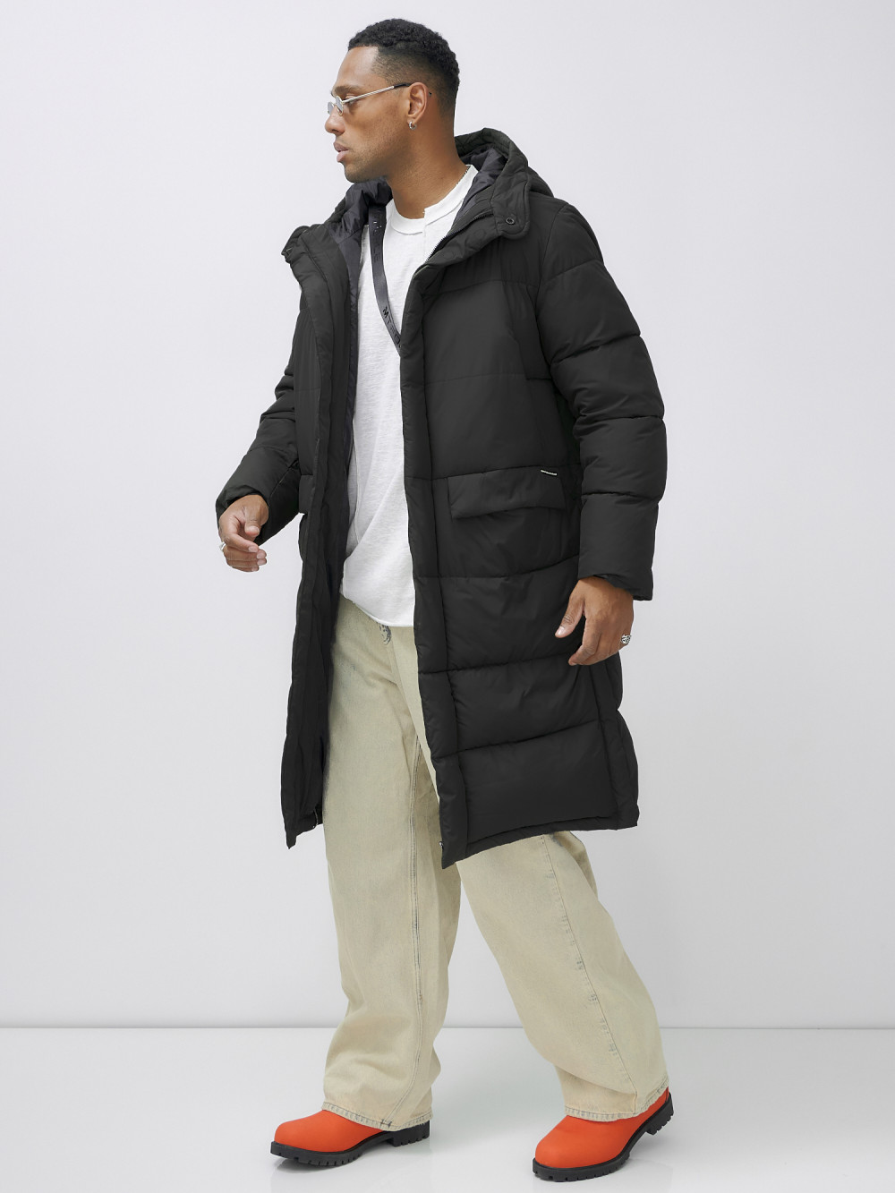 Парка MTFORCE мужская зимняя модная удлиненная спортивная черного цвета 2416_1Ch