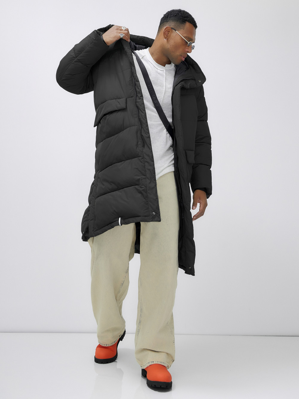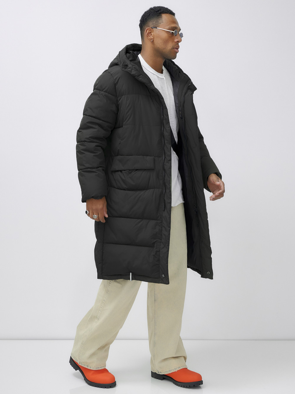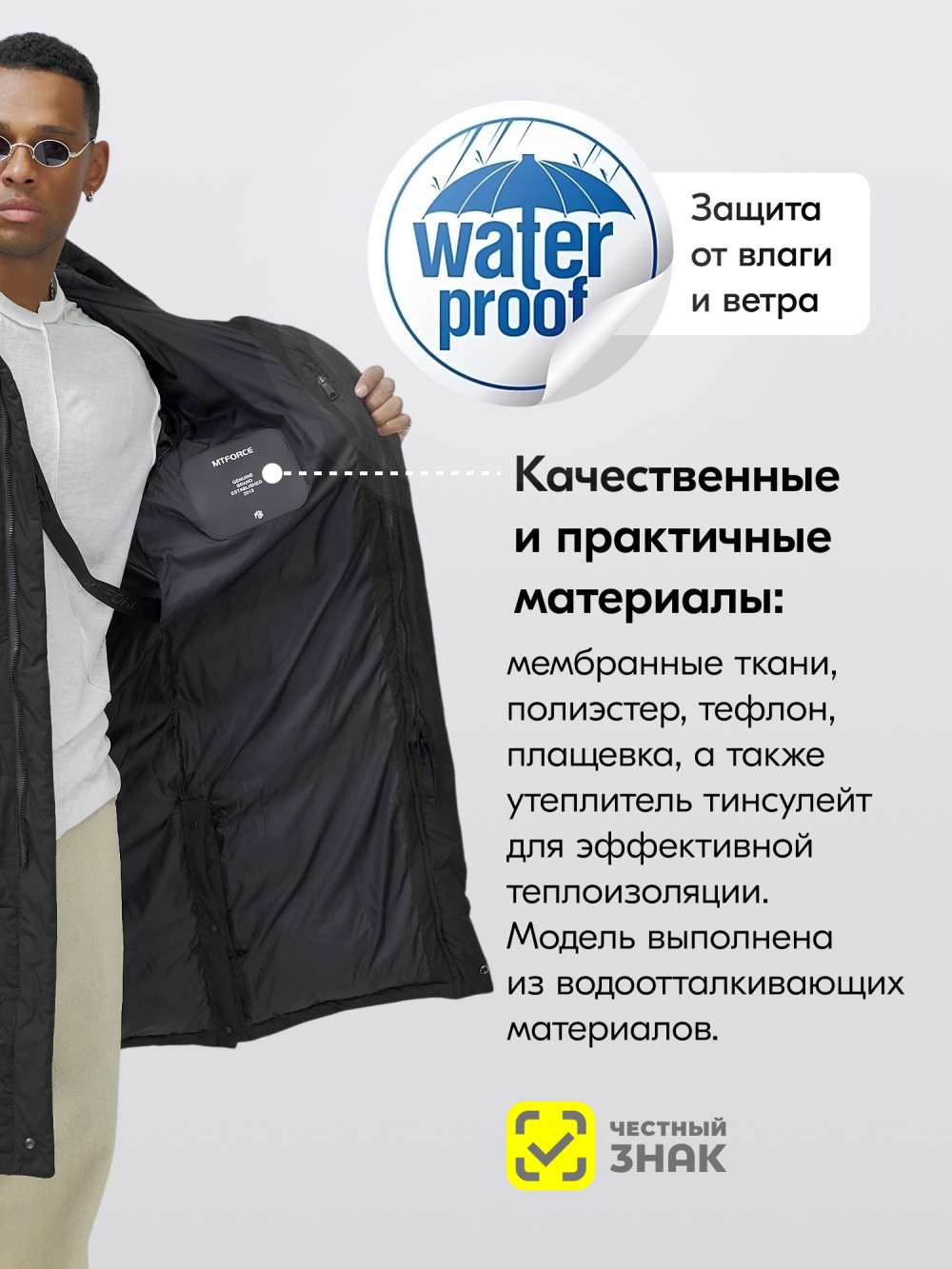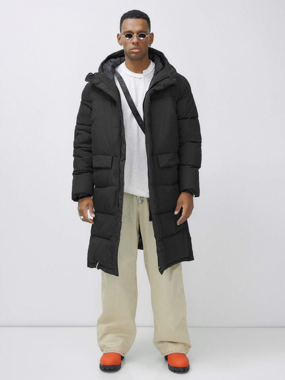Парка MTFORCE мужская зимняя модная удлиненная спортивная черного цвета 2416_1Ch