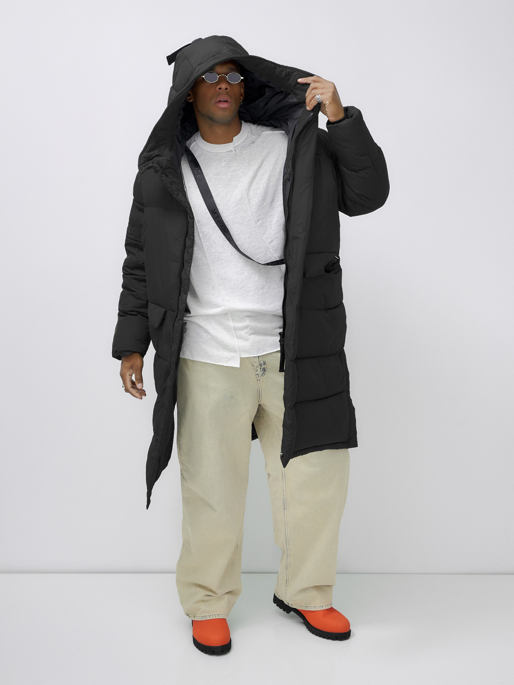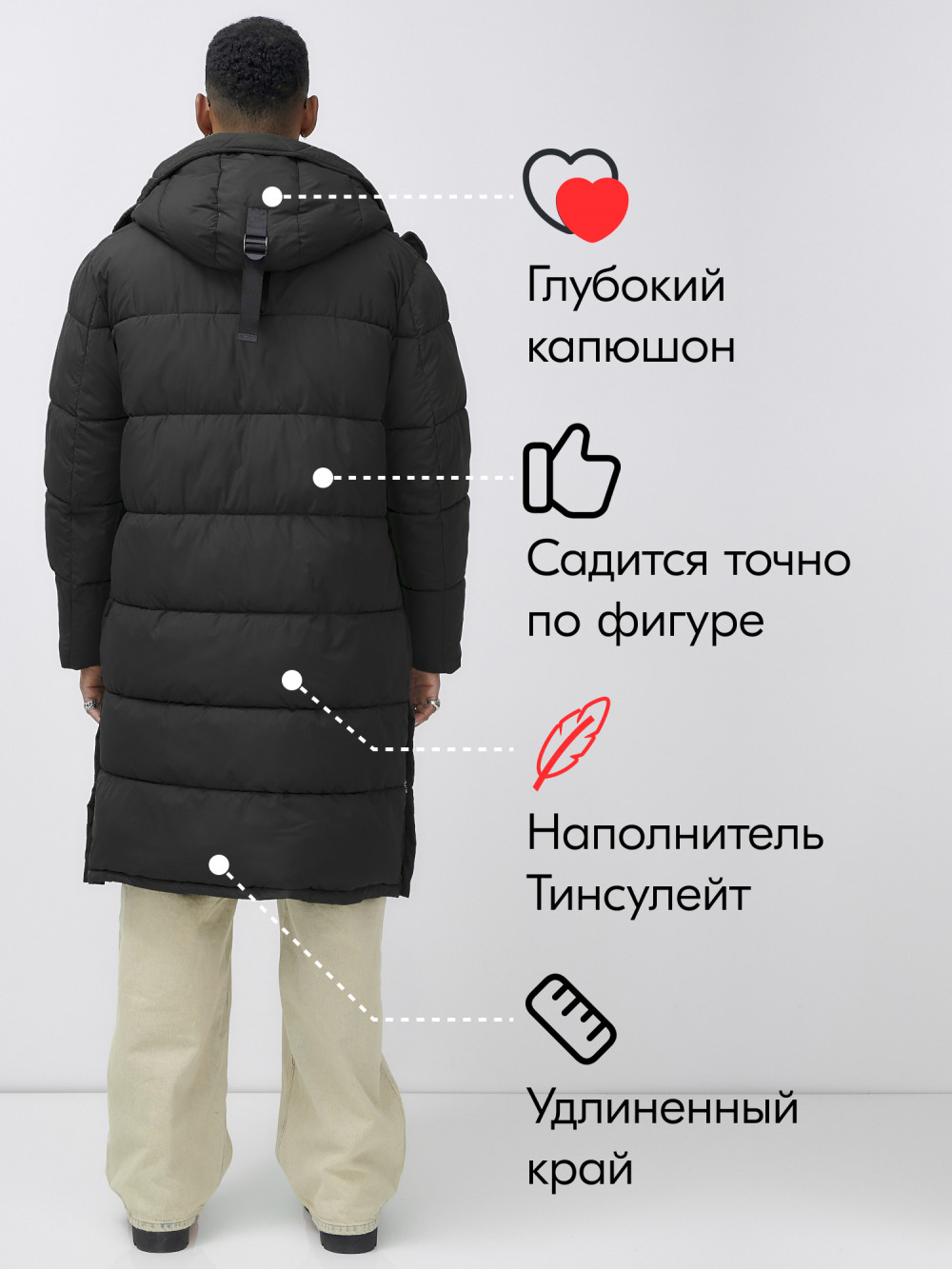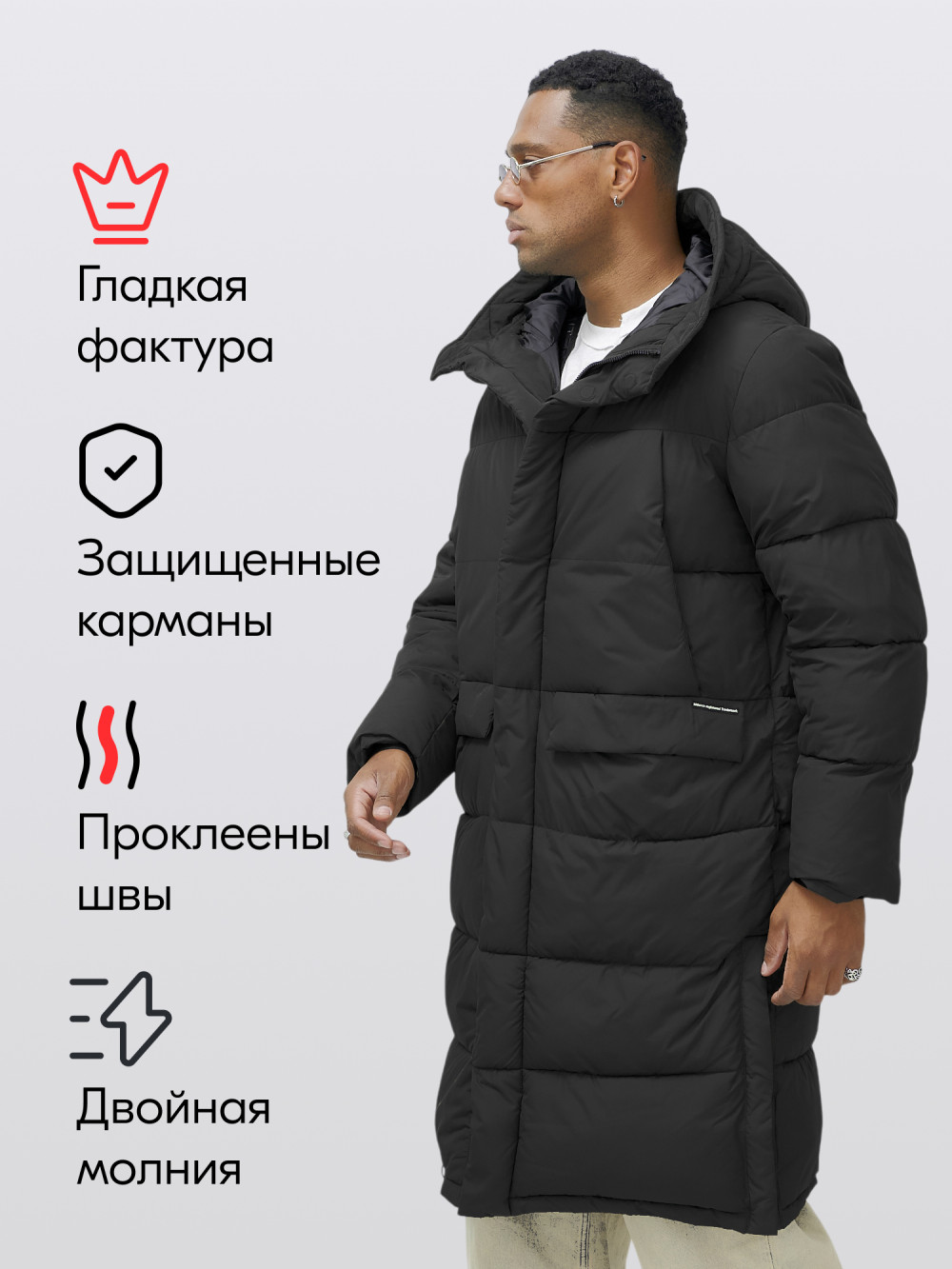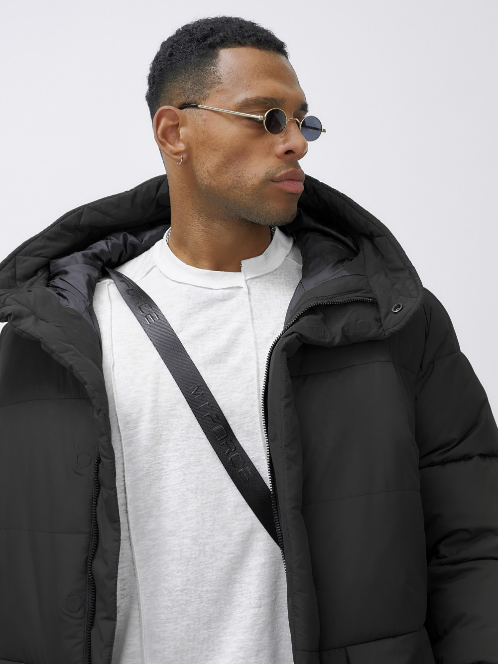 Парка MTFORCE мужская зимняя модная удлиненная спортивная черного цвета 2416_1Ch — MTFORCE